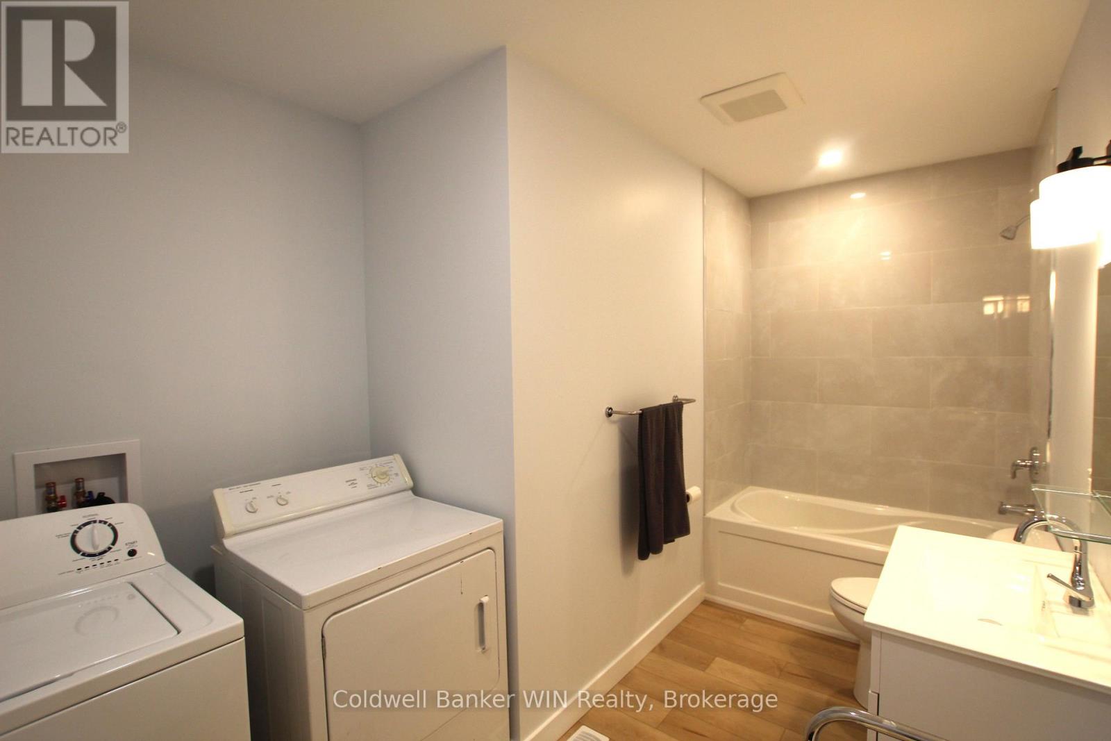 Welcome home to this beautifully finished, newly completed 2-bedroom, 2-bath main-floor rental in a Mount Forest duplex. Filled with natural light and finished with care, this space offers a bright, comfortable atmosphere you'll love coming home to. The spacious kitchen is the heart of the home, featuring a gas stove, breakfast bar island, and plenty of light-perfect for morning coffee or relaxed evenings in. The adjoining living room is open and inviting, with soft pot lighting that creates a warm, cozy feel for everyday living. Two bedrooms provide comfortable retreats, including a primary suite with a walk-in closet and private ensuite. The ensuite bath offers a tiled walk-in shower and heated ceramic floors, adding a touch of everyday comfort. A full 4-piece main bath with a deep soaker tub also includes convenient in-suite laundry. Step outside and enjoy shared access to a large backyard, ideal for relaxing outdoors. Parking for one vehicle is included, and rent covers heat, hydro, water, and sewer-so you can settle in and feel right at home. (id:51300)
