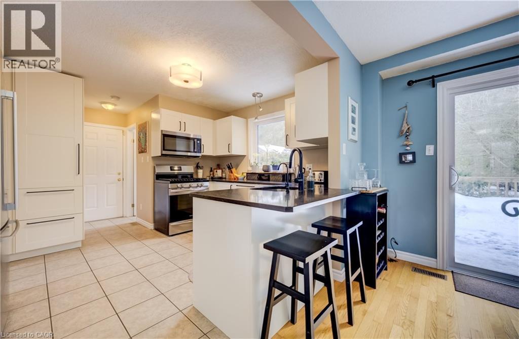 Welcome to this bright and inviting 2-storey home tucked away on a quiet, family-friendly street in the heart of Elora. Step inside to a warm and welcoming open-concept living and dining space, complemented by an updated kitchen and a sun-filled dinette with walkout to the deck — perfect for everyday living and easy entertaining. Step outside to an impressive 194-ft deep backyard offering plenty of space to relax, play, or garden. Mature trees and thoughtful landscaping create a peaceful outdoor setting that feels like your own private retreat. Upstairs features three comfortable bedrooms and a 4-piece bathroom, while the finished basement adds even more versatility with a cozy family room, dedicated office space, and a 3-piece bath — ideal for growing families or those working from home. Located just steps from nearby trails, a playground, and a soccer field, this home offers a fantastic setting for active families and outdoor enthusiasts. Turn-key and ready for its next owners by the end of March. Contact today to book your private showing. (id:51300)