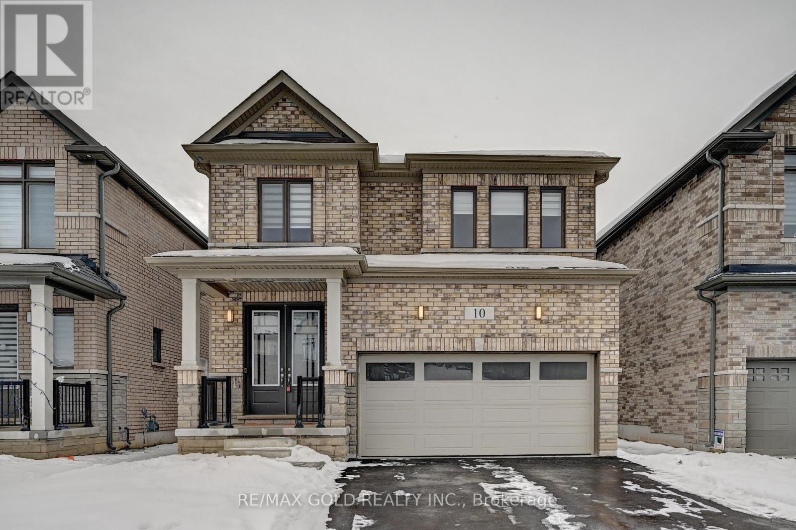 Welcome to 10 John Carpenter Rd, a beautifully built in 2023 home featuring a brick and stone exterior, double-car garage, and covered porch. Inside, enjoy 9-ft ceilings, hardwood floors, and an open-concept great room leading to a modern kitchen with stainless steel appliances. The primary suite offers a walk-in closet and 4-piece ensuite, while three additional bedrooms share a full bath. Main-floor laundry with garage access adds convenience. Located near schools, parks, shops, and with easy Hwy 401 access, this home blends style, comfort, and convenience perfectly. (id:51300)
