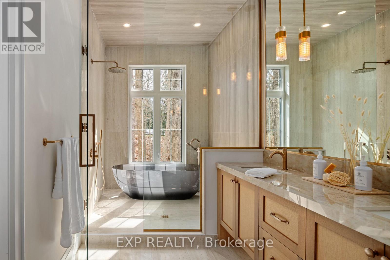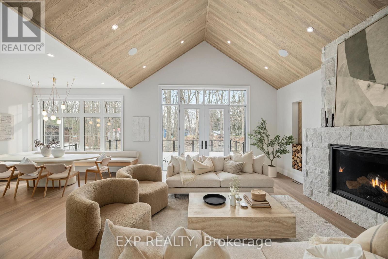 ***Family Christmas Photos with Santa on Saturday Nov 15 from 1pm-5pm!!! Whether you're looking for a full-time residence or a year-round escape, this one-of-a-kind home is the perfect fusion of luxury, sustainability, and lifestyle. Welcome home to Magnus Homes 2025 Spring Lottery Dream Home located in prestigious Pinery Bluffs. Spanning 2,870 sqft, this luxury residence combines elegant design with natural serenity of the wooded surroundings. Set on a mature, tree-lined lot, this home delivers in one of Ontario's most desirable beachside communities just minutes from the shores of Lake Huron south of Grand Bend, and a trail connecting Pinery Provincial Park to the street. This home showcases timeless style, thoughtful planning, and superior craftsmanship. Certified Net Zero Ready, it features triple-pane windows for optimal energy efficiency and year-round comfort. Inside, a warm earthy palette and rich wood textures set a calming tone. The home offers three spacious bedrooms and two and a half bathrooms, designed with comfort and effortless entertaining in mind. The 2,350 sqft main floor with soaring 10-foot ceilings, vaulted living spaces, and oversized windows that bathe the home in natural light. Designer lighting and fixtures enhance the refined aesthetic. A chefs kitchen anchors the heart of the home, featuring custom cabinetry, high-end appliances, and generous counter space & artistic hood. A versatile 520 sqft loft above the garage offers endless uses: home office, yoga studio, or private retreat with a separate entry. The fabulous wide open space with 10-foot basement height, oversized lookout windows presents incredible potential for future expansion. (id:51300)