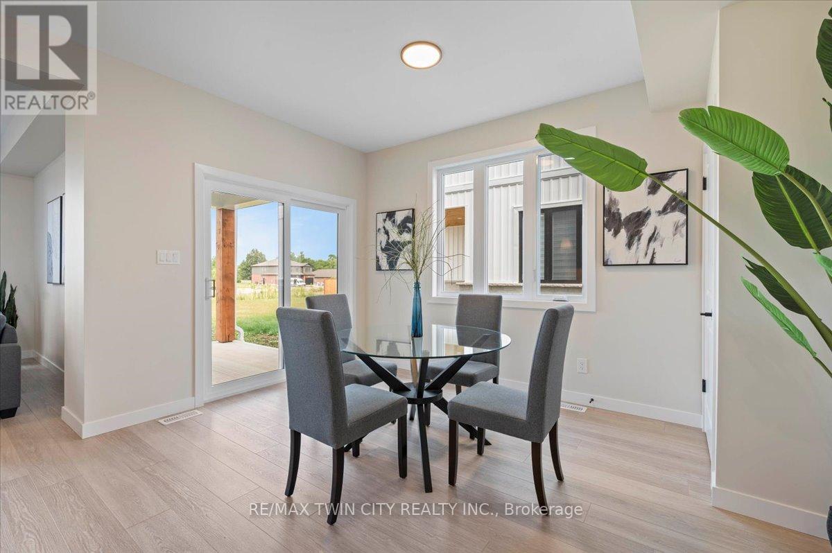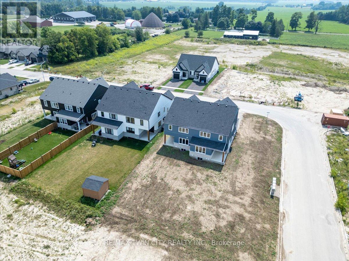 Opportunity Knocks! Step into home ownership! Beautiful curb appeal for an equally beautiful Mitchell countryside setting. The Graydon semi detached model combines successful design layout elements to achieve a configuration to fit the corner lot. Modern farmhouse taken even further to enhance the entrances of the units and maintain privacy. Large windows and 9 ceilings combine perfectly to provide a bright open space. A beautiful two-tone quality-built kitchen with center island, walk in pantry, quartz countertops, and soft close mechanism sits adjacent to the dining room from where you can conveniently access the covered backyard patio accessible through the sliding doors. The family room also shares the open concept of the dining room and kitchen making for the perfect entertaining area. The second floor features 3 bedrooms and central media room, laundry, and 2 full bathrooms. The main bathroom is a 4 piece, and the primary suite has a walk in closet with a four piece ensuite featuring an oversized 7 x 4 shower. The idea of a separate basement living space has already been built on with large basement windows and a side door entry to the landing leading down for ease of future conversion. Surrounding the North Thames river, with a historic downtown, rich in heritage, architecture and amenities, and an 18 hole golf course. Its no wonder so many families have chosen to live in Mitchell; make it your home! (id:51300)