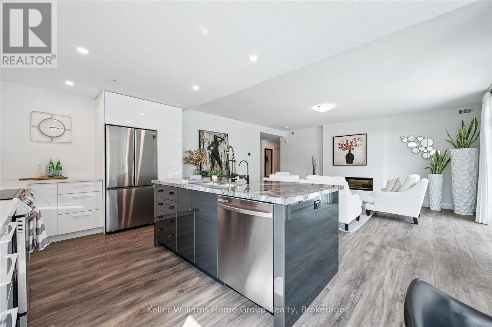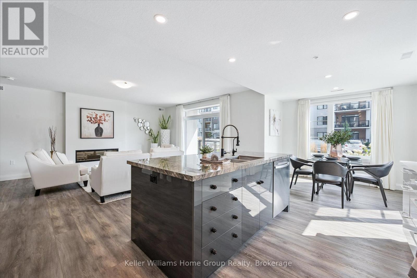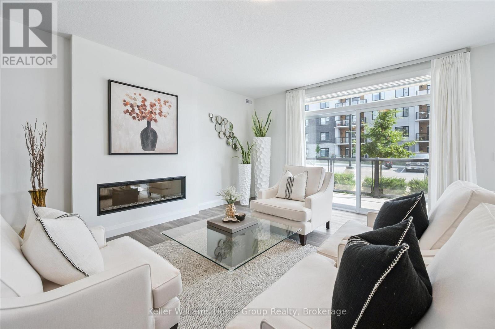 $542 MonthlyWelcome to elevated living in this stunning corner unit condo, offering over 1,300 square feet of thoughtfully designed space. Built in 2022 by Keating Construction, this 2-bedroom, 2-bathroom ground-floor home combines upscale finishes with everyday comfort in a layout that's both functional and elegant. Natural light floods the open-concept living area, where a striking modern electric fireplace creates a cozy yet contemporary focal point. The designer kitchen is a true show stopper featuring upgraded cabinetry, sleek surfaces, and premium fixtures that make cooking and entertaining a pleasure. Enjoy the added luxury of automatic blinds and custom drapery throughout, bringing style and ease to every room. The spacious primary suite includes a well-appointed en-suite and generous closet space, while the second bedroom offers flexible use for guests or a home office. With direct ground-floor access and a private balcony perfect for your morning coffee, this condo is ideal for those seeking low-maintenance, high-quality living. Whether you're downsizing, investing, or purchasing your first home, this exceptional unit offers modern flair, convenience, and lasting value in a vibrant community. (id:51300)