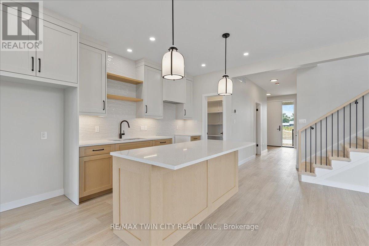 Opportunity knocks! Beautiful curb appeal for an equally beautiful Mitchell countryside setting. The Graydon semi detached model is our best layout yet!! It combines successful design elements from previous models to achieve a configuration that fits the corner lot. Modern farmhouse taken even further to enhance the entrances of the units and maintain privacy. Large windows and 9 ceilings combine perfectly to provide a bright open space. A beautiful two-tone quality-built kitchen with center island, walk in pantry, quartz countertops, and soft close mechanism sits adjacent to the dining room from where you can conveniently access the covered backyard patio accessible through the sliding doors. The family room also shares the open concept of the dining room and kitchen making for the perfect entertaining area. The second floor features 3 bedrooms and a work space niche, laundry, and 2 full bathrooms. The main bathroom is a 4 piece and the primary suite has a walk in closet with a four piece ensuite featuring an oversized 7 x 4 shower. The idea of a separate basement living space has already been built on with large basement windows and a side door entry to the landing leading down for ease of future conversion. Surrounding the North Thames river, with a historic downtown, rich in heritage, architecture and amenities, and an 18 hole golf course. Its no wonder so many families have chosen to live in Mitchell; make it your home! (id:51300)