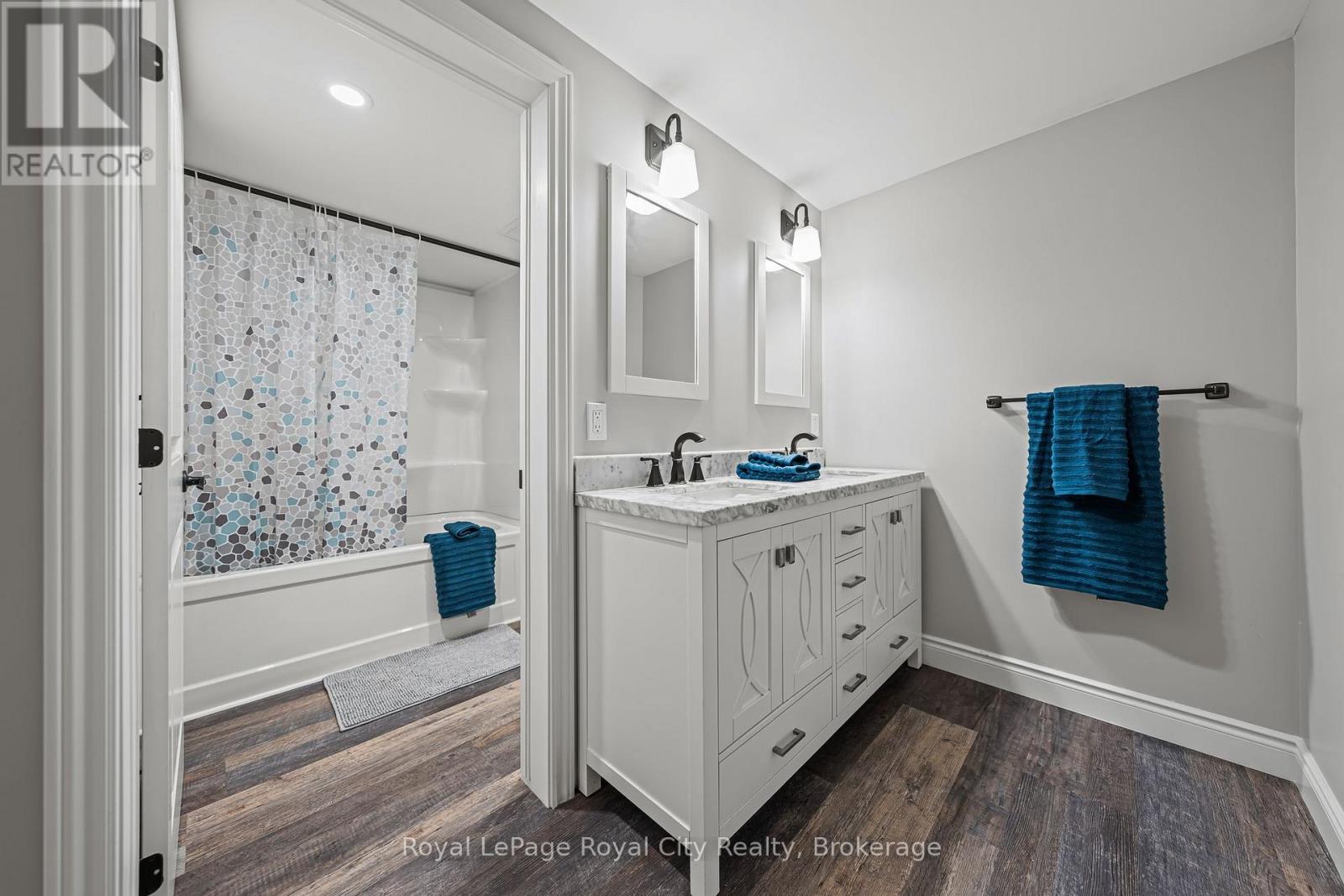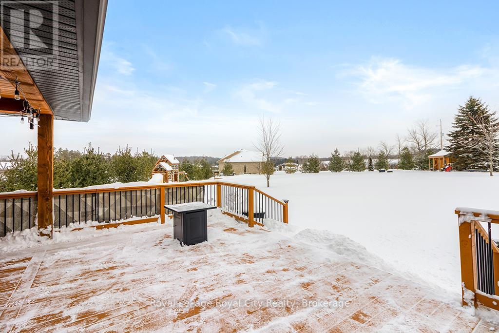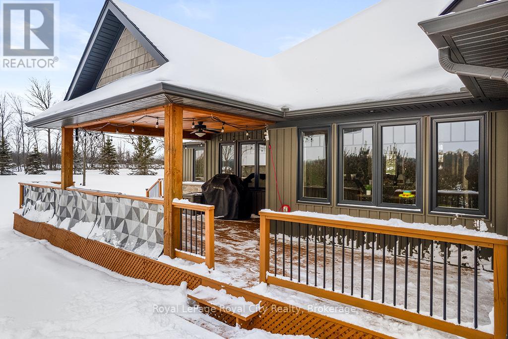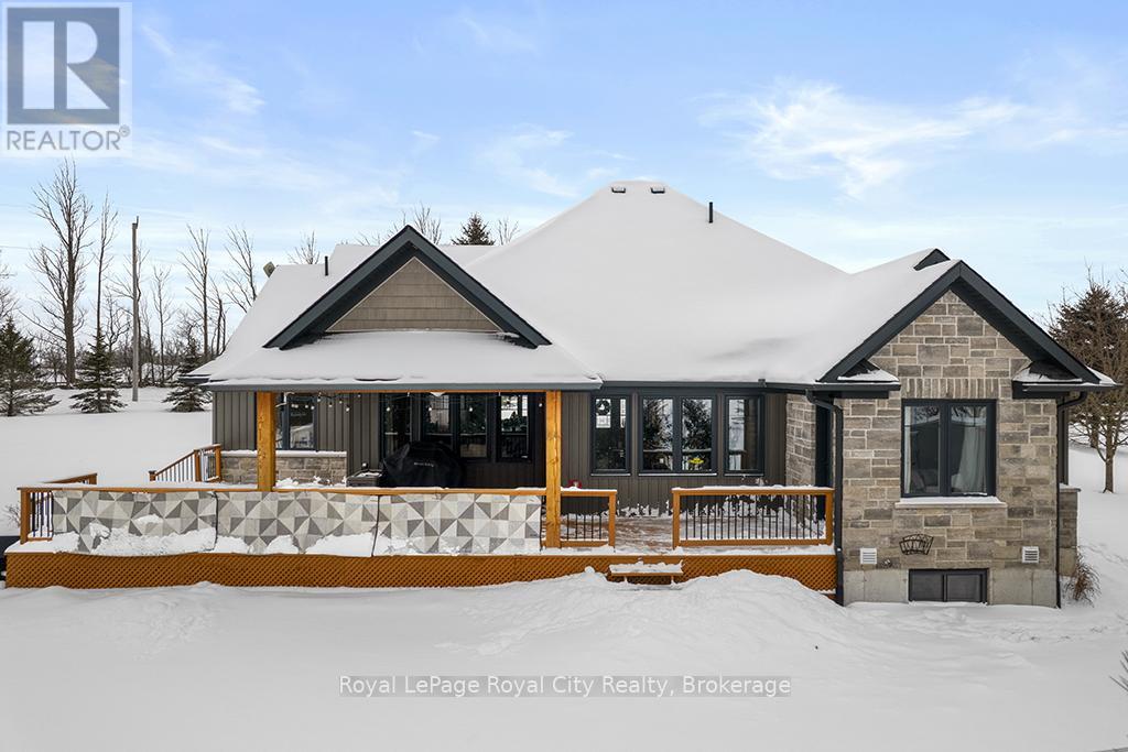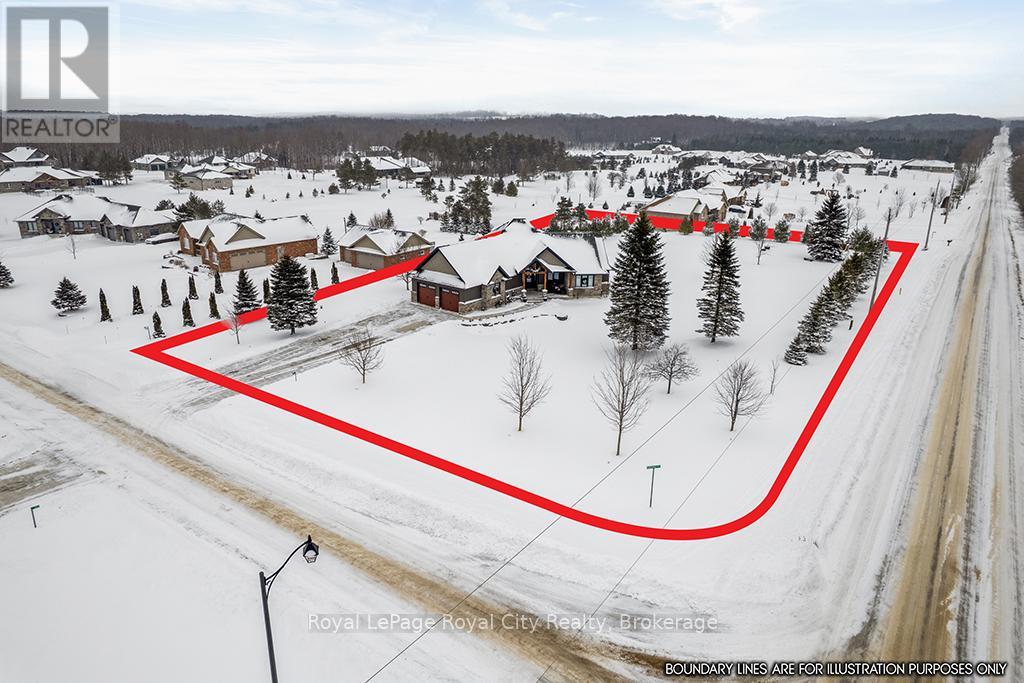 Rustic Lodge Charm Meets Modern Living. Welcome to this striking custom-built bungalow, set on a picturesque 1.15-acre lot in the sought-after Marshall Heights subdivision, where peaceful country living blends seamlessly with a welcoming sense of community. Timber beams frame the inviting front porch and lead into a spacious foyer, setting the tone for a home designed for both everyday comfort and effortless entertaining. The great room is the heart of the home, anchored by a spectacular stone fireplace that creates the perfect backdrop for cozy evenings and memorable gatherings. The chef-inspired kitchen is a true showpiece, featuring an oversized island, beautifully crafted cabinetry and thoughtful details that make everything from casual breakfasts to holiday hosting a joy. Entertain with ease in the formal dining room or take the celebration outdoors to the expansive deck, complete with a partially covered area ideal for dining, relaxing, or watching sporting events. The private primary suite is tucked into its own wing offering a walk-in closet, spa-like ensuite and direct access to the deck. Two additional bedrooms and a full bath are thoughtfully placed in the opposite wing, providing comfort and privacy for family or guests. Practicality meets style with a powder room, main-floor laundry, and an oversized double garage with inside entry. The fully finished lower level expands your living space with three more generous bedrooms, a family room, full bathroom, ample storage and a cold cellar. Outside, the expansive beautifully landscaped yard offers endless possibilities. A large shed, RV/boat parking and plenty of room for a pool or future workshop make it ideal for hobbyists and outdoor enthusiasts alike. Perfectly located between Durham and Mount Forest, you'll enjoy easy access to year-round recreation including hiking, ATVing, skiing, and snowmobiling, all just minutes away. This is more than a home, iIt's the lifestyle you've been dreaming of. (id:51300)