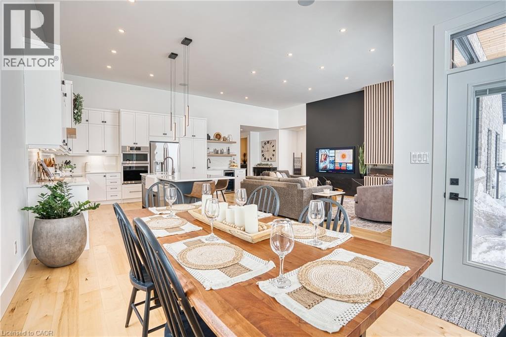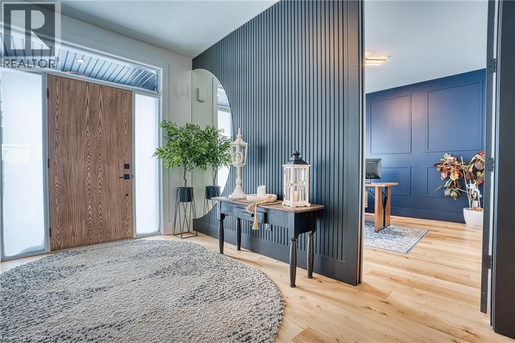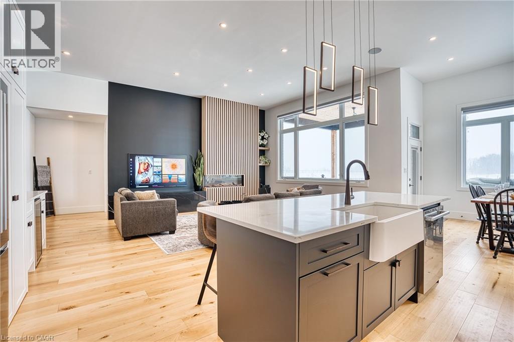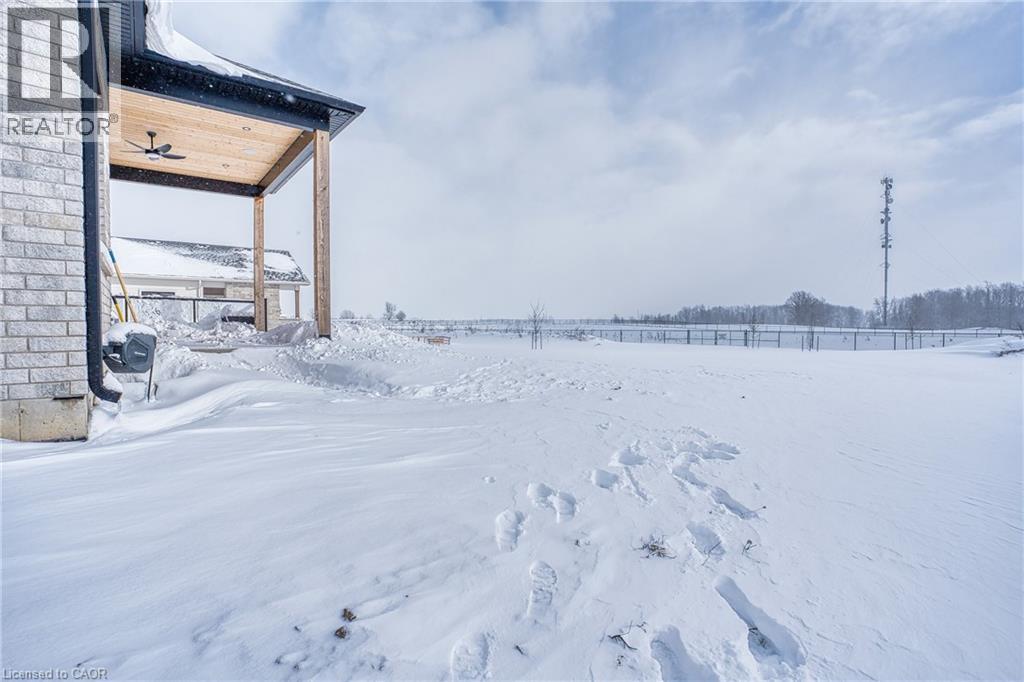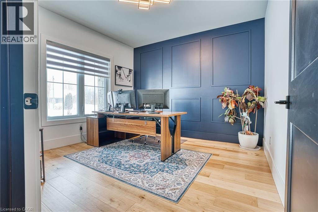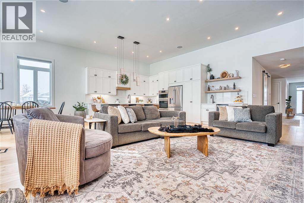 Beautifully custom constructed 3300 sqft, 2 storey home just a year old and located on 61 ft x 262 ft lot in Listowel. Nothing was spared throughout this family home which has a main level Primary bedroom and 5 piece ensuite which continues to the walk-in closet. Another 3 bedrooms upstairs, 1 has ensuite bath and another walk-in closet and the 3rd and 4th bedrooms shared yet another full bath. Great room shines with natural light and consists of 12 foot ceilings, full wall fireplace, spacious kitchen with island and hidden full walk-in pantry, dining area and door leading to the covered porch overlooking this huge backyard. This home has it all, from home office, mudroom with built-in cabinetry, main floor laundry, double car garage, cement drive with parking for all, built-in bluetooth speakers, landscaping and cement driveway. Built in 2025, no detail has been missed, 9ft ceilings on the main and 8 ft upstairs, hardwood floors and steps, built-in appliances. Just pack your things and move right in, you won't believe the space for your family!! (id:51300)