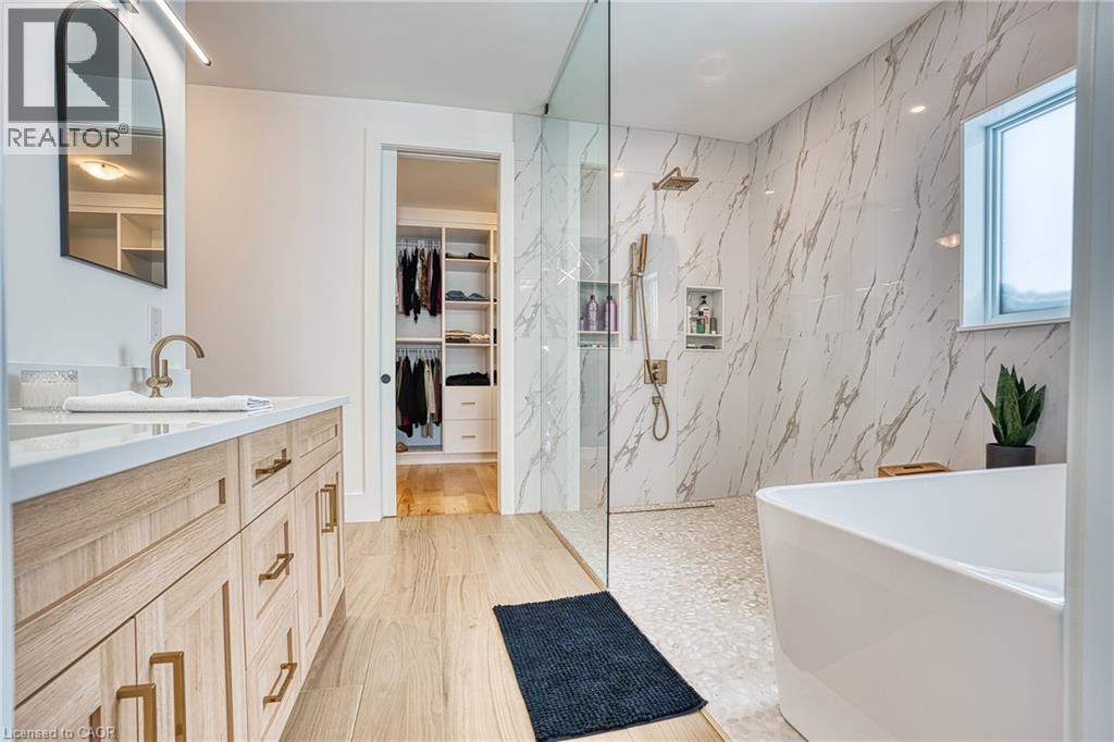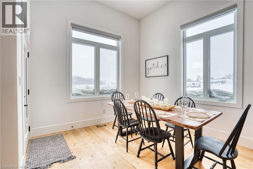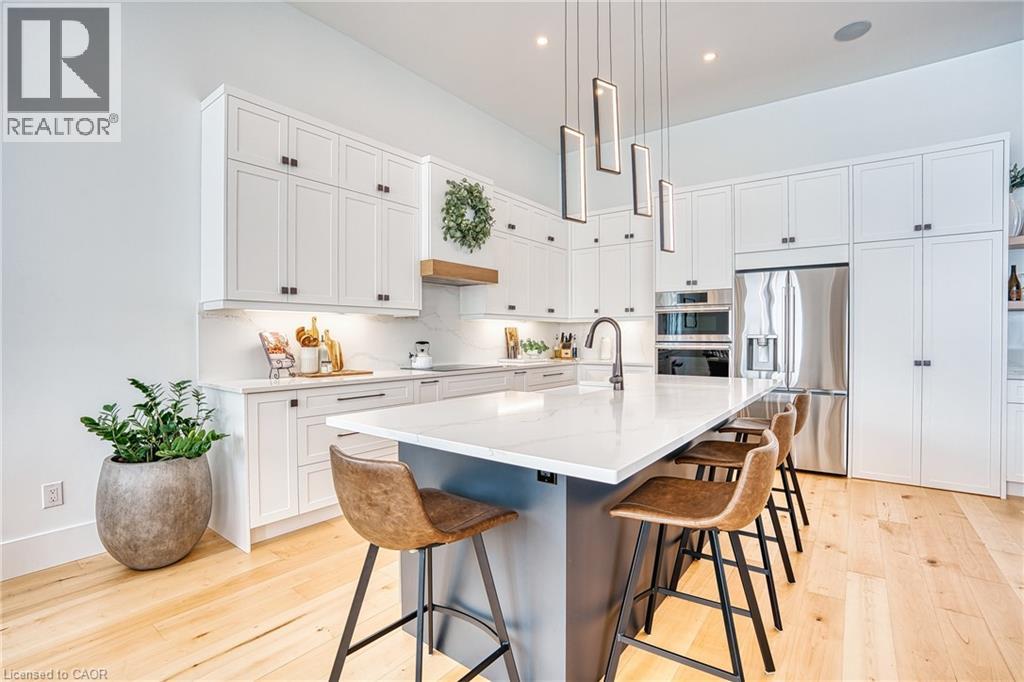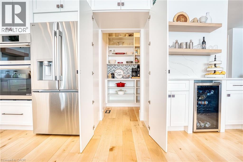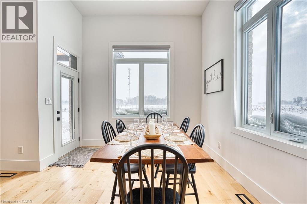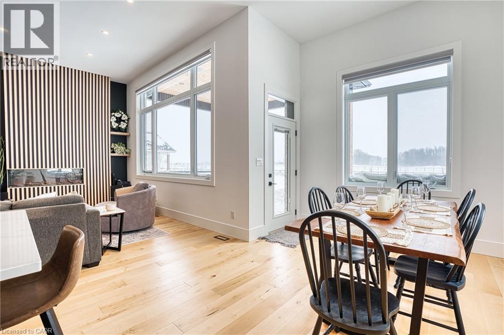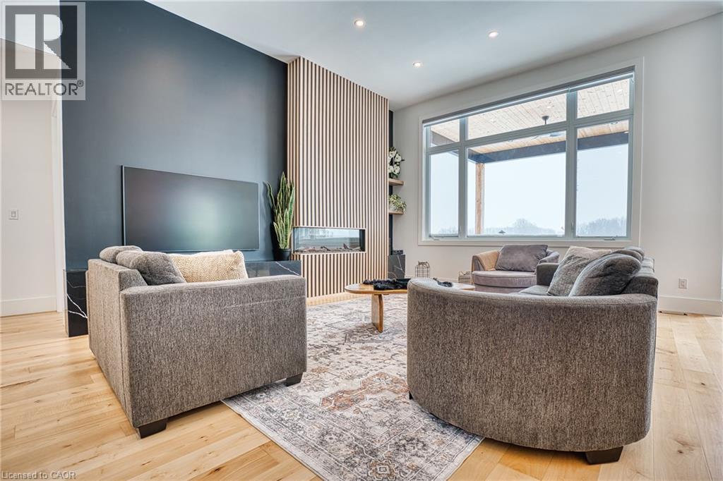 Beautifully custom constructed 3300 sqft, 2 storey home just a year old and located on 61 ft x 262 ft lot in Listowel. Nothing was spared throughout this family home which has a main level Primary bedroom and 5 piece ensuite which continues to the walk-in closet. Another 3 bedrooms upstairs, 1 has ensuite bath and another walk-in closet and the 3rd and 4th bedrooms shared yet another full bath. Great room shines with natural light and consists of 12 foot ceilings, full wall fireplace, spacious kitchen with island and hidden full walk-in pantry, dining area and door leading to the covered porch overlooking this huge backyard. This home has it all, from home office, mudroom with built-in cabinetry, main floor laundry, double car garage, cement drive with parking for all, built-in bluetooth speakers, landscaping and cement driveway. Built in 2025, no detail has been missed, 9ft ceilings on the main and 8 ft upstairs, hardwood floors and steps, built-in appliances. Just pack your things and move right in, you won't believe the space for your family!! (id:51300)