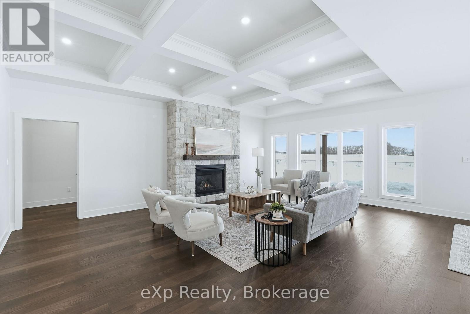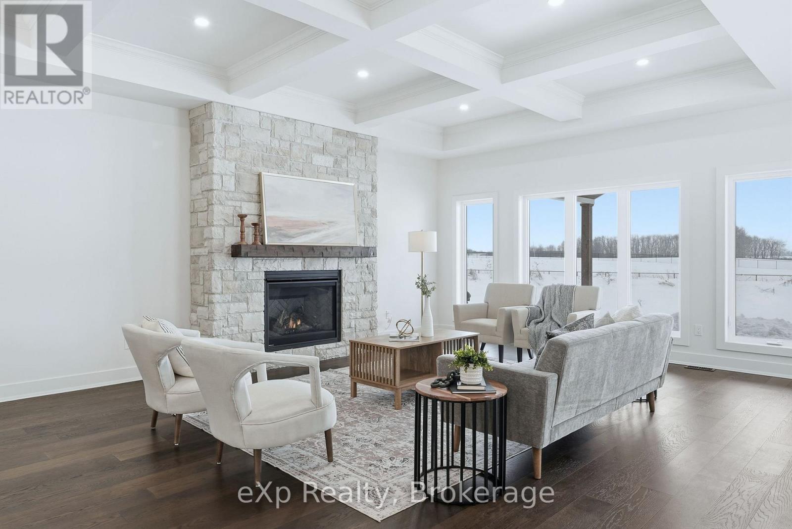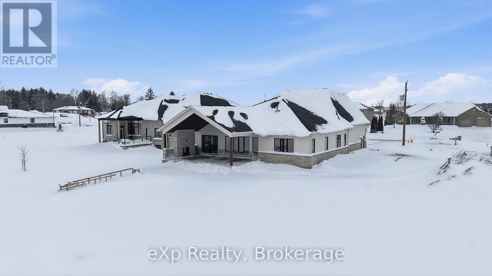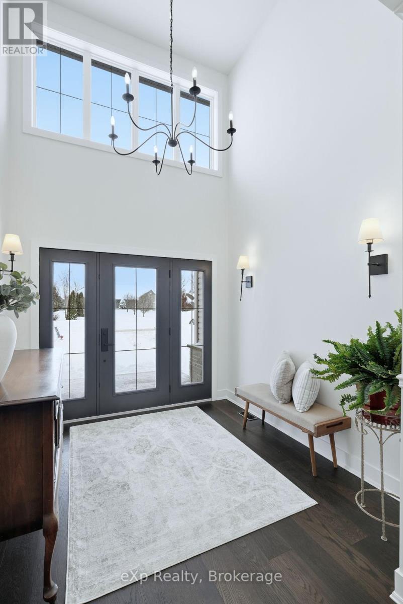 Tucked away in one of Listowel's most sought-after neighbourhoods, on the edge of town, this custom-built estate home offers an exceptional blend of privacy, prestige, and contemporary elegance. From the moment you enter, the grand front foyer with soaring 16-foot ceilings creates a striking first impression. The open-concept main level is finished with rich hardwood flooring throughout, seamlessly combining warmth and sophistication. At the front of the home, two generously sized bedrooms share a beautifully finished 4-piece bathroom - ideal for family, guests, or flexible living arrangements. The heart of the home is the designer kitchen, featuring quartz countertops, a large entertaining island, and a walk-in pantry, all flowing effortlessly into the dining area. Step outside to the expansive covered outdoor living space, complete with a gas fireplace, creating a perfect setting for entertaining or relaxed mornings and evenings outdoors. The great room is anchored by a dramatic stone fireplace and framed by large windows that flood the space with natural light, offering both comfort and refined style. The primary suite serves as a private retreat, showcasing a spacious bedroom, a spa-inspired 5-piece ensuite with soaker tub, glass shower, double vanity, and a generous walk-in closet designed with both form and function in mind. Additional main-floor highlights include a convenient laundry room, a mudroom with direct access to the oversized double-car garage, and a rare walk-down entry to the fully finished lower level. The lower level expands the home's versatility, offering two additional bedrooms, both with walk-in closets, a full 4-piece bathroom, and an expansive living area ideal for multi-generational living, entertaining, or recreation. An exceptional offering that combines luxury, space, and tranquility-this is refined estate living at its finest in the heart of Listowel. Added value with Tarion warranty plus 50-year warranty on shingles. (id:51300)