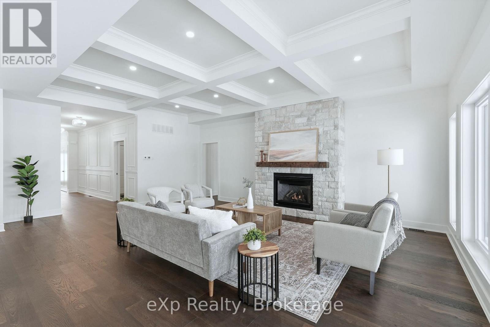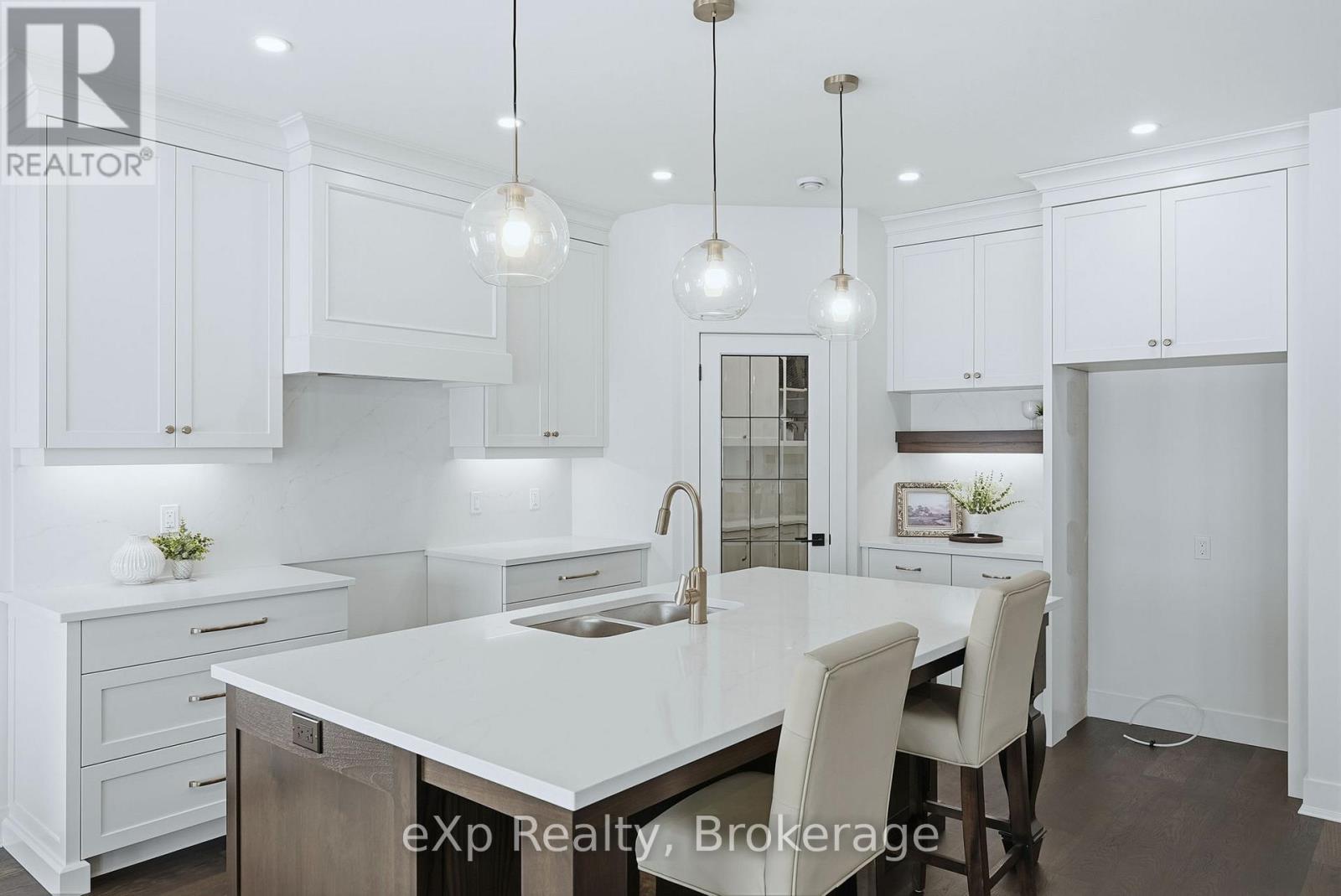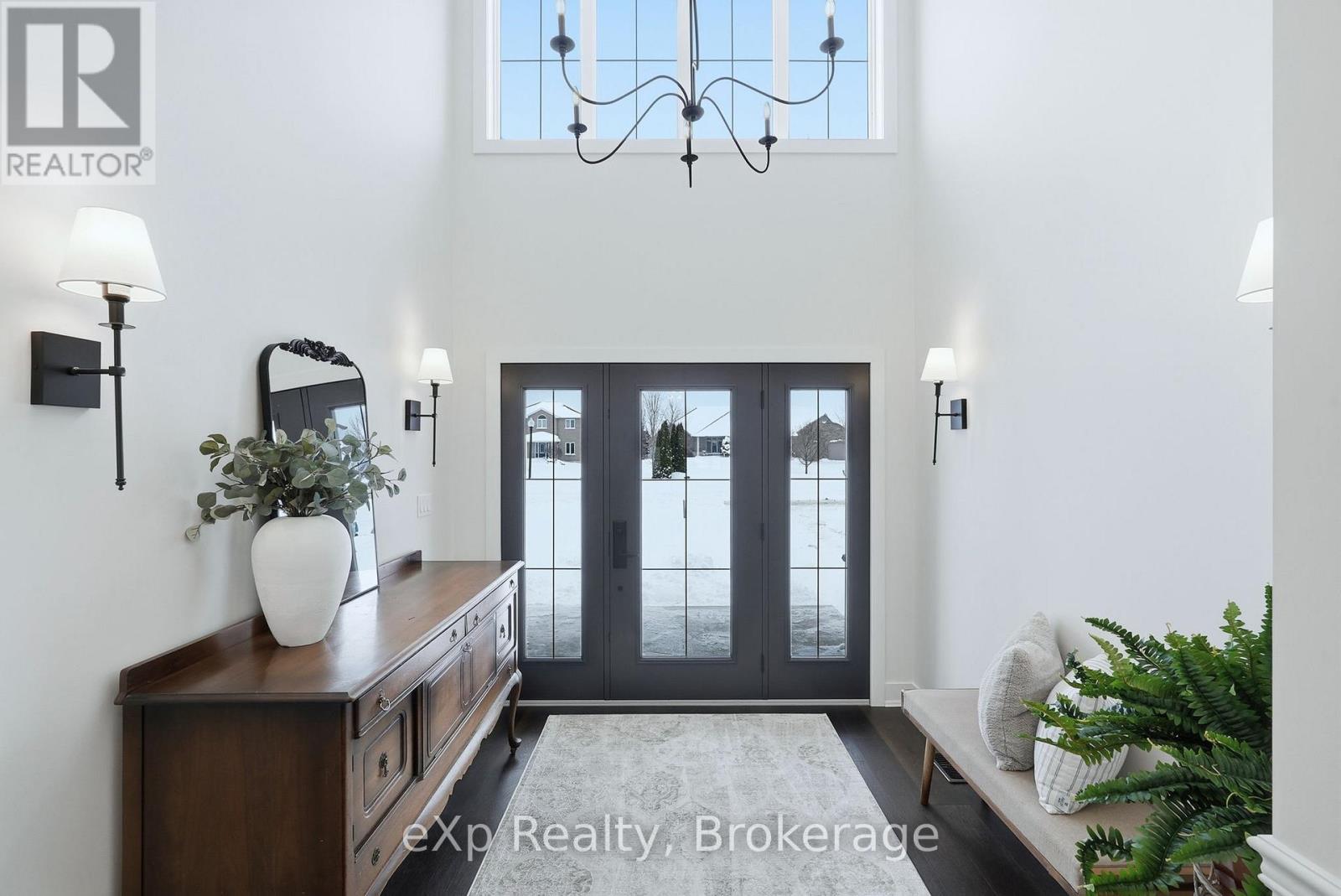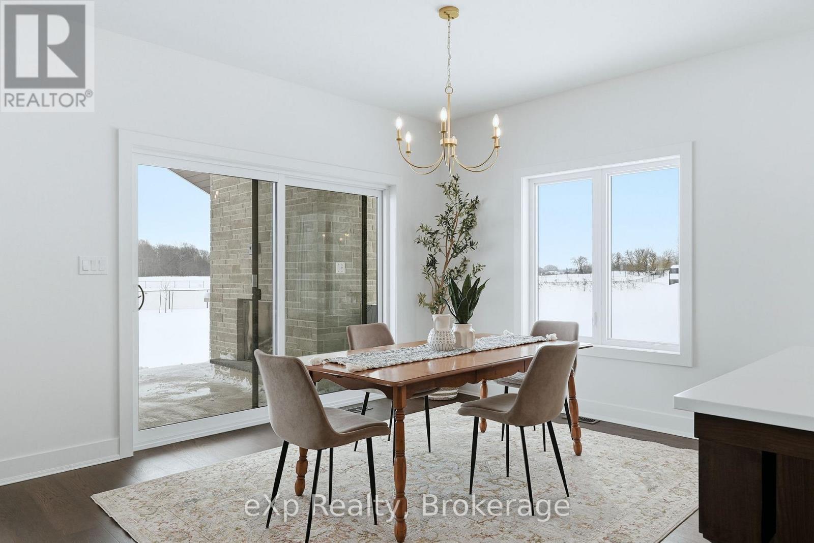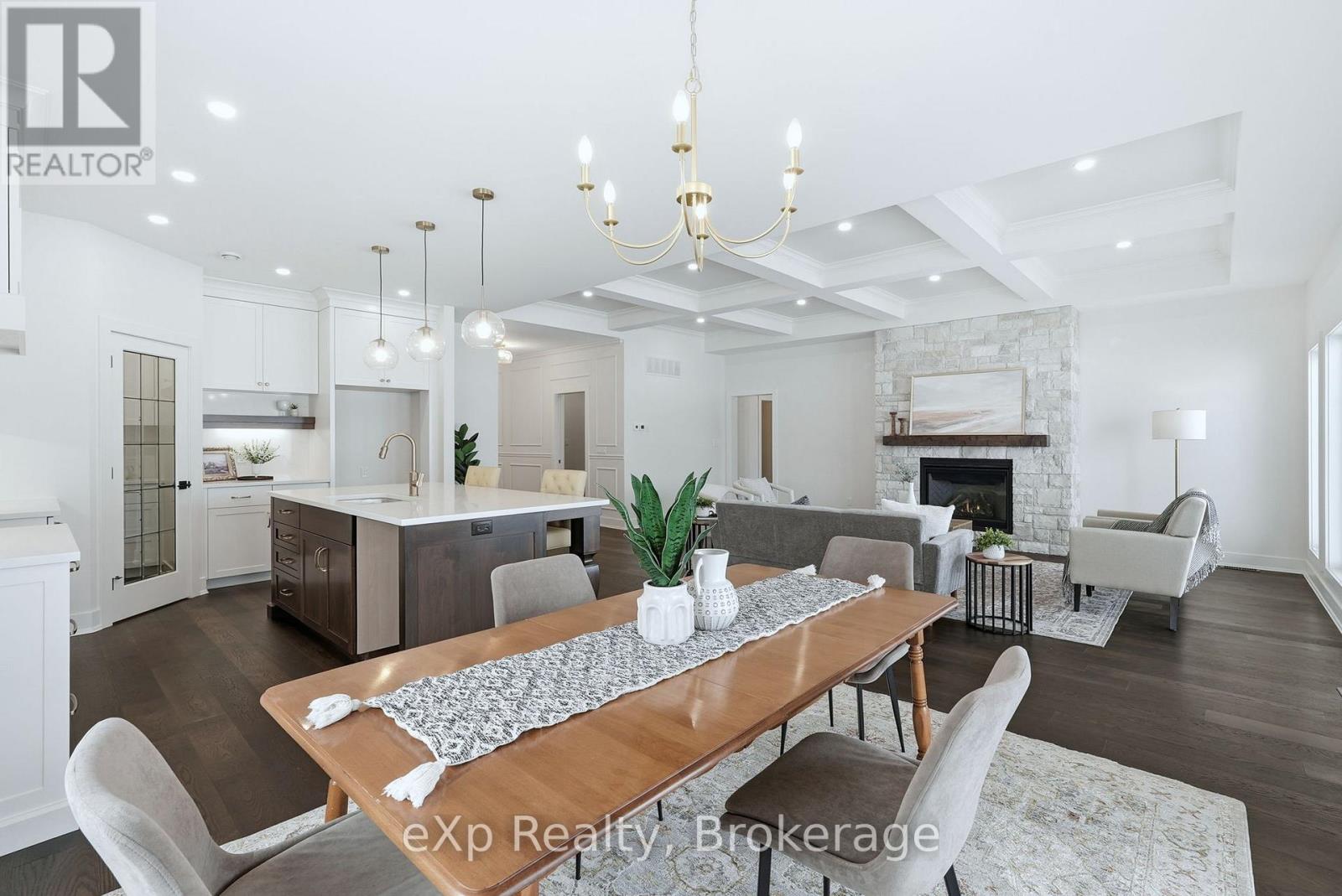 Tucked away in one of Listowel's most sought-after neighbourhoods, on the edge of town, this custom-built estate home offers an exceptional blend of privacy, prestige, and contemporary elegance. From the moment you enter, the grand front foyer with soaring 16-foot ceilings creates a striking first impression. The open-concept main level is finished with rich hardwood flooring throughout, seamlessly combining warmth and sophistication. At the front of the home, two generously sized bedrooms share a beautifully finished 4-piece bathroom - ideal for family, guests, or flexible living arrangements. The heart of the home is the designer kitchen, featuring quartz countertops, a large entertaining island, and a walk-in pantry, all flowing effortlessly into the dining area. Step outside to the expansive covered outdoor living space, complete with a gas fireplace, creating a perfect setting for entertaining or relaxed mornings and evenings outdoors. The great room is anchored by a dramatic stone fireplace and framed by large windows that flood the space with natural light, offering both comfort and refined style. The primary suite serves as a private retreat, showcasing a spacious bedroom, a spa-inspired 5-piece ensuite with soaker tub, glass shower, double vanity, and a generous walk-in closet designed with both form and function in mind. Additional main-floor highlights include a convenient laundry room, a mudroom with direct access to the oversized double-car garage, and a rare walk-down entry to the fully finished lower level. The lower level expands the home's versatility, offering two additional bedrooms, both with walk-in closets, a full 4-piece bathroom, and an expansive living area ideal for multi-generational living, entertaining, or recreation. An exceptional offering that combines luxury, space, and tranquility-this is refined estate living at its finest in the heart of Listowel. Added value with Tarion warranty plus 50-year warranty on shingles. (id:51300)