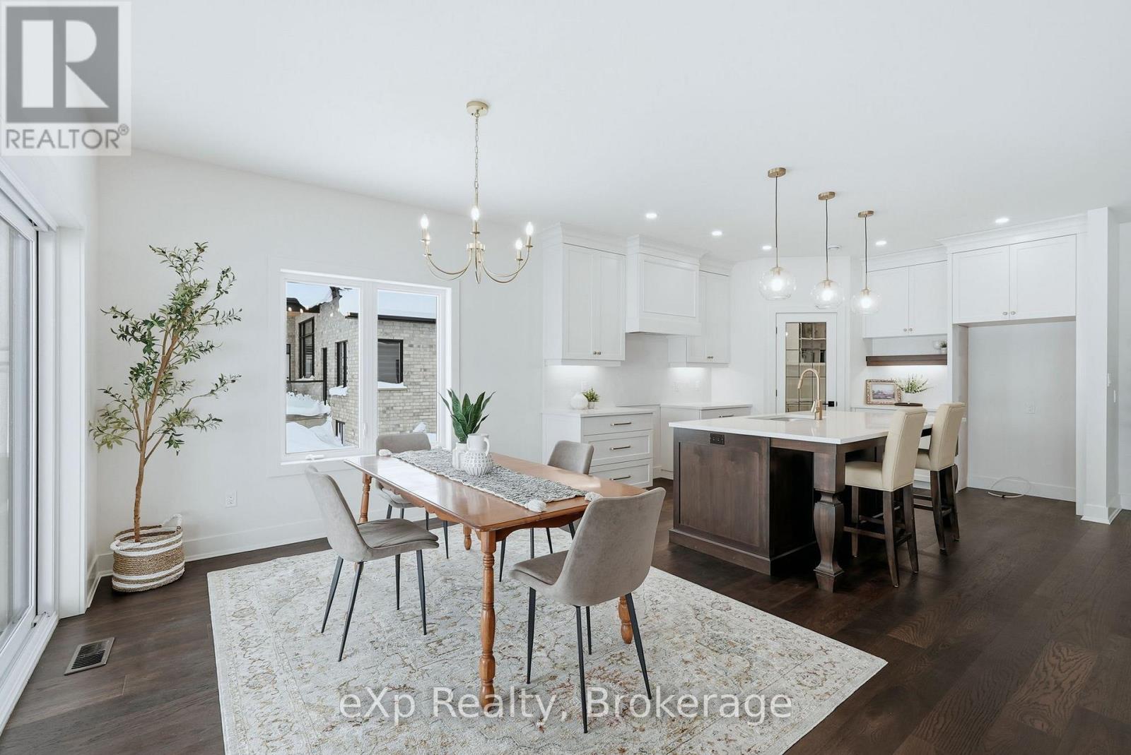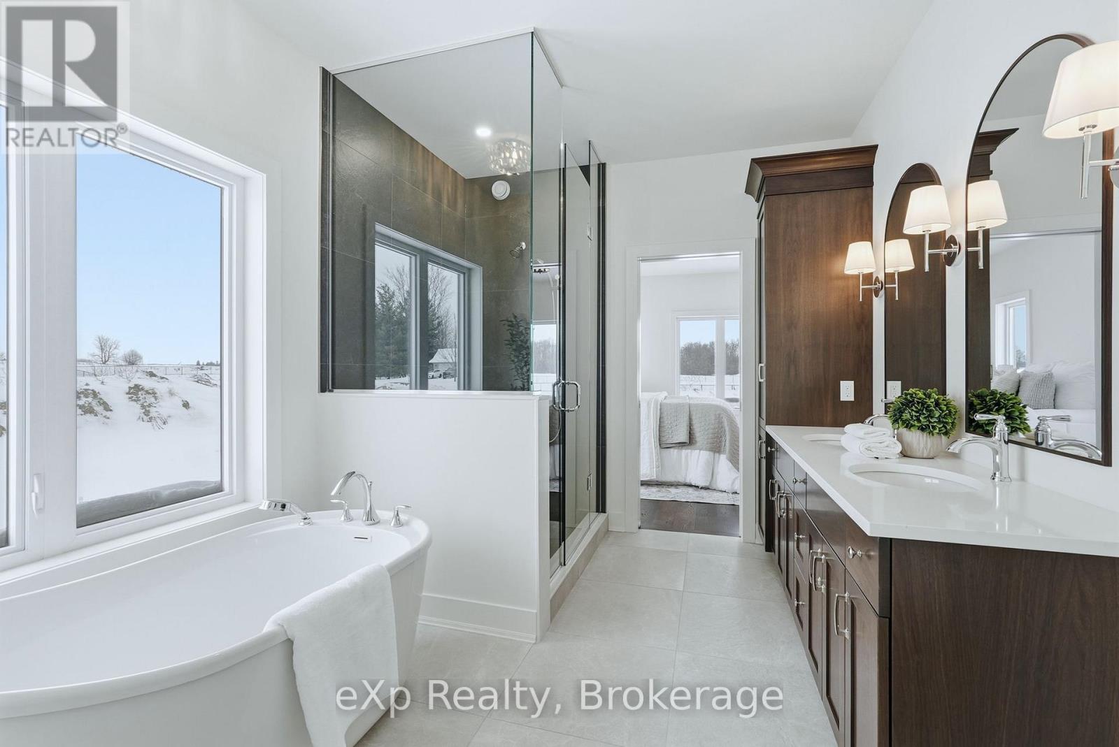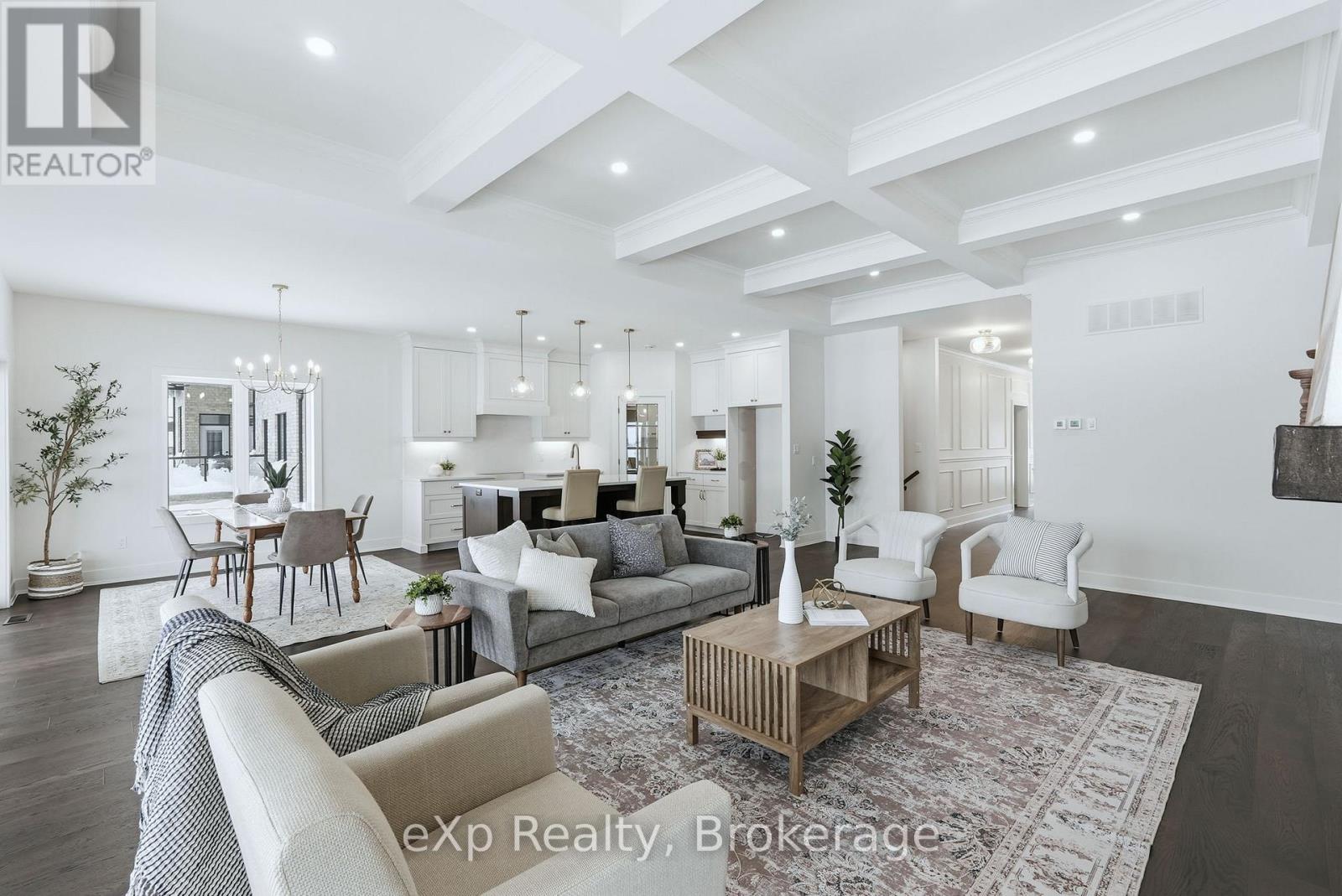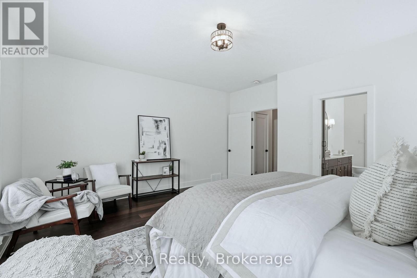 Tucked away in one of Listowel's most sought-after neighbourhoods, on the edge of town, this custom-built estate home offers an exceptional blend of privacy, prestige, and contemporary elegance. From the moment you enter, the grand front foyer with soaring 16-foot ceilings creates a striking first impression. The open-concept main level is finished with rich hardwood flooring throughout, seamlessly combining warmth and sophistication. At the front of the home, two generously sized bedrooms share a beautifully finished 4-piece bathroom - ideal for family, guests, or flexible living arrangements. The heart of the home is the designer kitchen, featuring quartz countertops, a large entertaining island, and a walk-in pantry, all flowing effortlessly into the dining area. Step outside to the expansive covered outdoor living space, complete with a gas fireplace, creating a perfect setting for entertaining or relaxed mornings and evenings outdoors. The great room is anchored by a dramatic stone fireplace and framed by large windows that flood the space with natural light, offering both comfort and refined style. The primary suite serves as a private retreat, showcasing a spacious bedroom, a spa-inspired 5-piece ensuite with soaker tub, glass shower, double vanity, and a generous walk-in closet designed with both form and function in mind. Additional main-floor highlights include a convenient laundry room, a mudroom with direct access to the oversized double-car garage, and a rare walk-down entry to the fully finished lower level. The lower level expands the home's versatility, offering two additional bedrooms, both with walk-in closets, a full 4-piece bathroom, and an expansive living area ideal for multi-generational living, entertaining, or recreation. An exceptional offering that combines luxury, space, and tranquility-this is refined estate living at its finest in the heart of Listowel. Added value with Tarion warranty plus 50-year warranty on shingles. (id:51300)