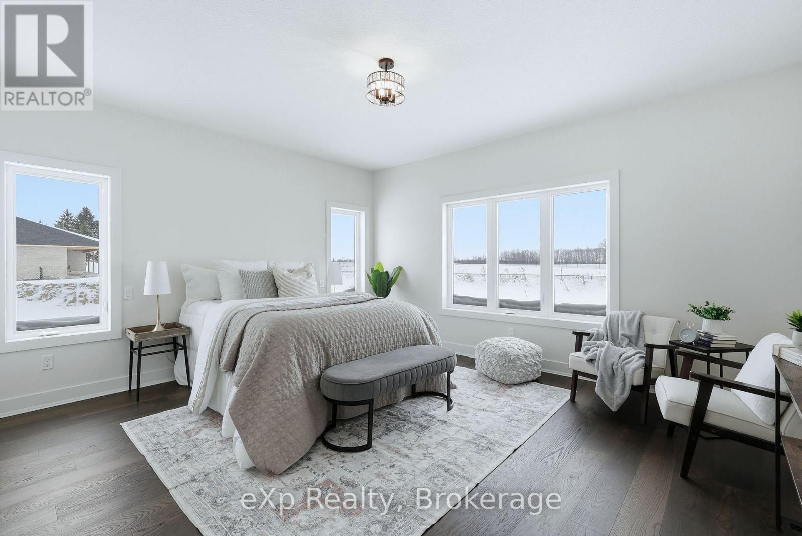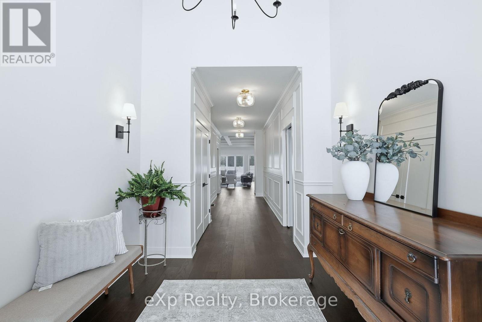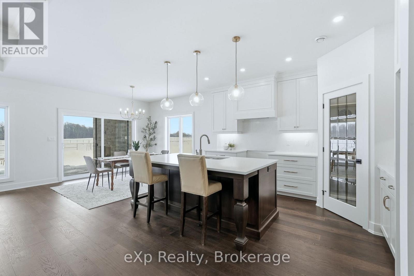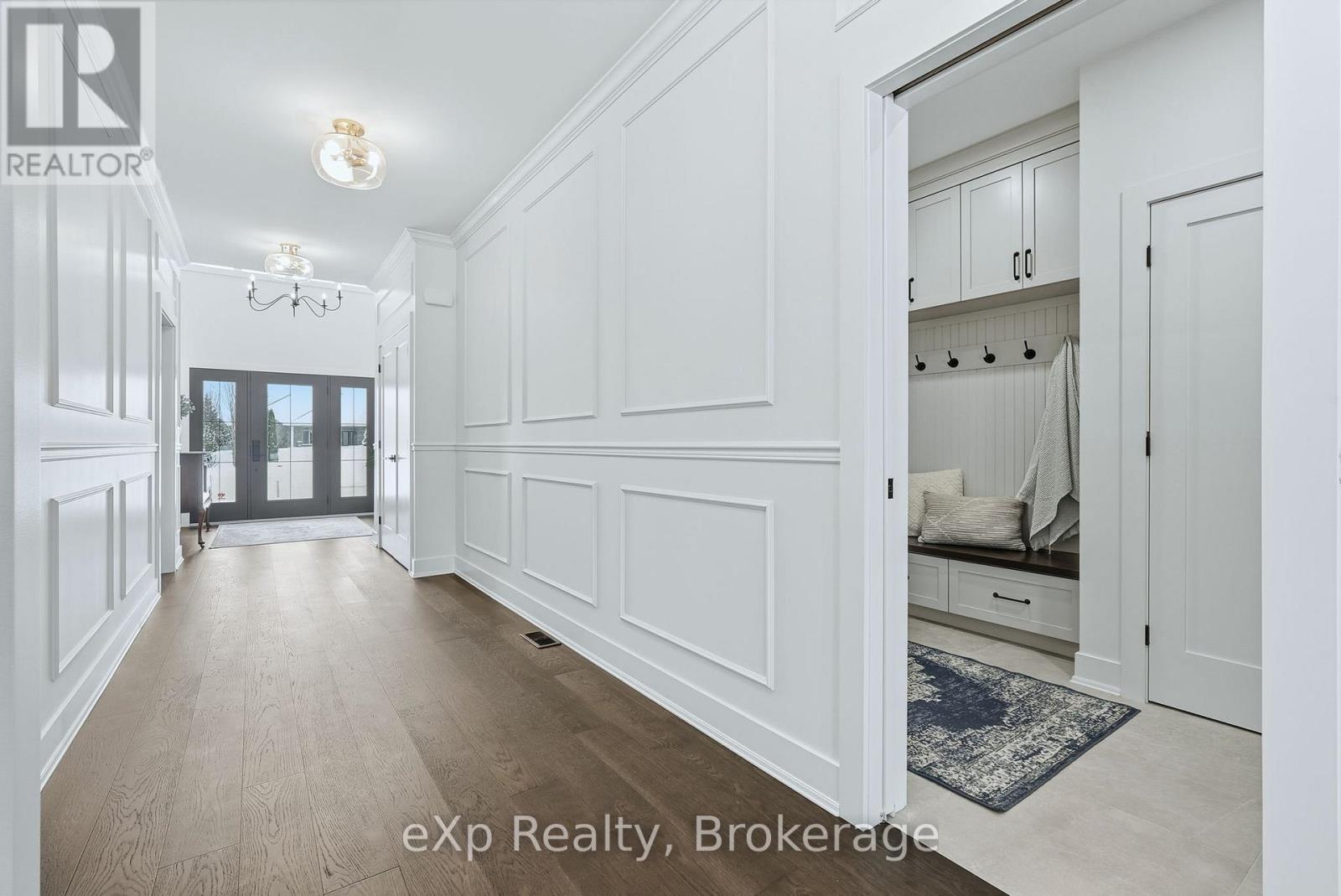 Tucked away in one of Listowel's most sought-after neighbourhoods, on the edge of town, this custom-built estate home offers an exceptional blend of privacy, prestige, and contemporary elegance. From the moment you enter, the grand front foyer with soaring 16-foot ceilings creates a striking first impression. The open-concept main level is finished with rich hardwood flooring throughout, seamlessly combining warmth and sophistication. At the front of the home, two generously sized bedrooms share a beautifully finished 4-piece bathroom - ideal for family, guests, or flexible living arrangements. The heart of the home is the designer kitchen, featuring quartz countertops, a large entertaining island, and a walk-in pantry, all flowing effortlessly into the dining area. Step outside to the expansive covered outdoor living space, complete with a gas fireplace, creating a perfect setting for entertaining or relaxed mornings and evenings outdoors. The great room is anchored by a dramatic stone fireplace and framed by large windows that flood the space with natural light, offering both comfort and refined style. The primary suite serves as a private retreat, showcasing a spacious bedroom, a spa-inspired 5-piece ensuite with soaker tub, glass shower, double vanity, and a generous walk-in closet designed with both form and function in mind. Additional main-floor highlights include a convenient laundry room, a mudroom with direct access to the oversized double-car garage, and a rare walk-down entry to the fully finished lower level. The lower level expands the home's versatility, offering two additional bedrooms, both with walk-in closets, a full 4-piece bathroom, and an expansive living area ideal for multi-generational living, entertaining, or recreation. An exceptional offering that combines luxury, space, and tranquility-this is refined estate living at its finest in the heart of Listowel. Added value with Tarion warranty plus 50-year warranty on shingles. (id:51300)