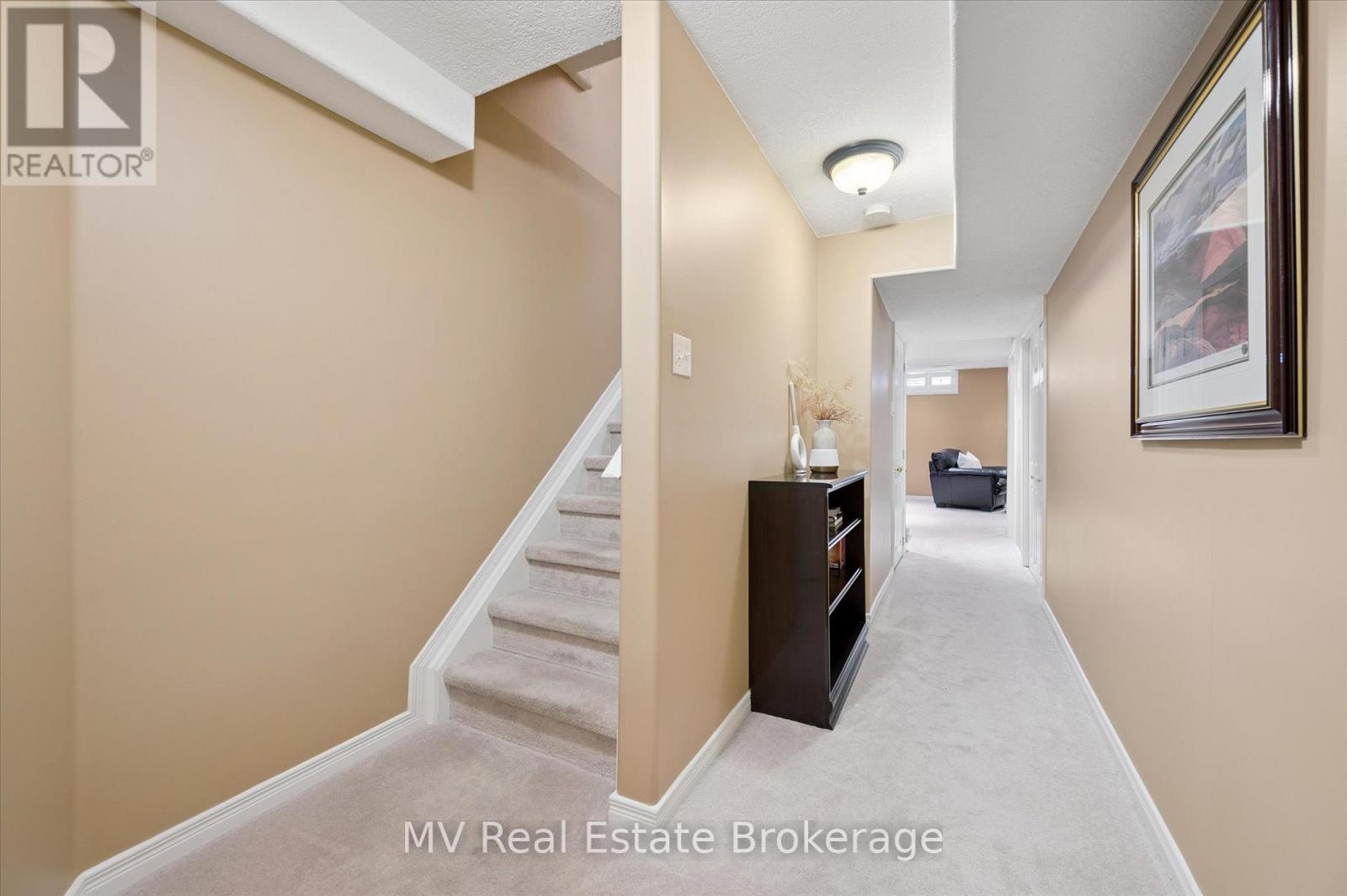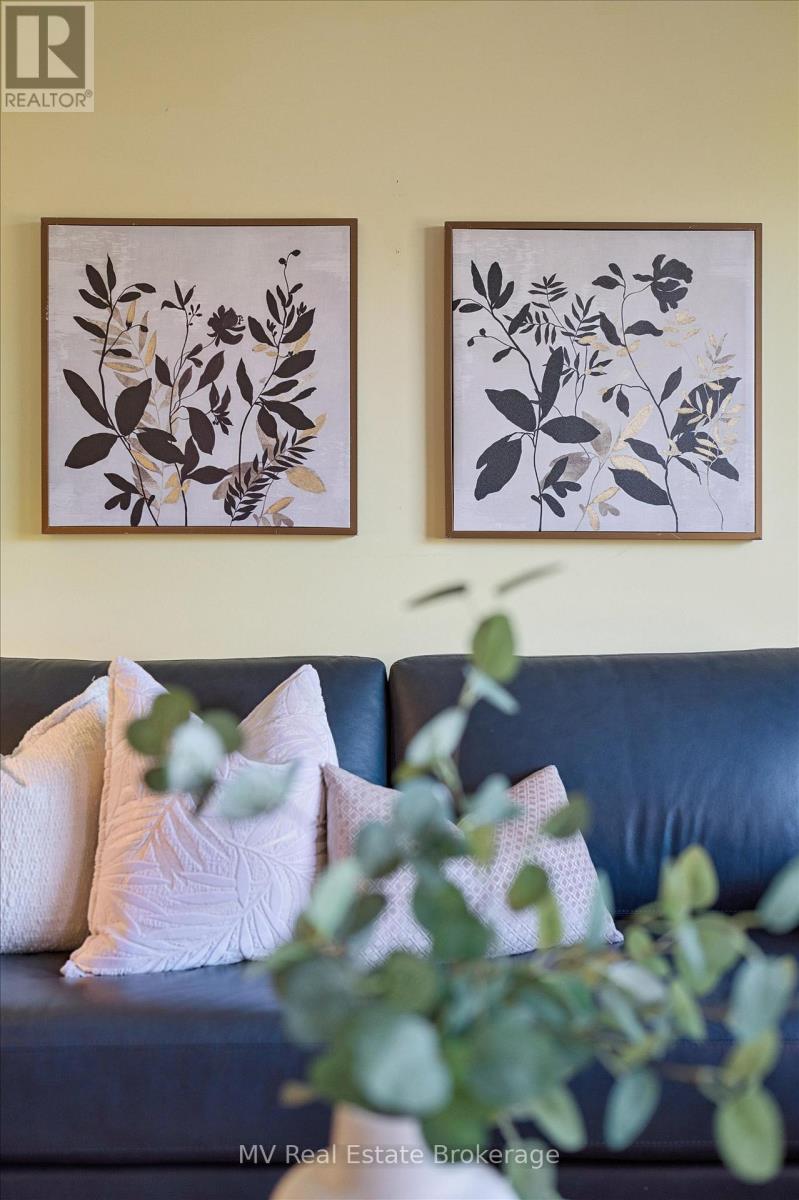 Welcome to one of Fergus's most loved neighbourhoods in the north end where pride of ownership and community spirit shine. This stunning, meticulously maintained townhouse doesn't feel like one inside or out. Thoughtfully designed, it offers the perfect balance of comfort, privacy, and modern living, set on a deep, beautifully landscaped lot backing onto open farmland for peaceful views. Step inside to discover a bright, open-concept main floor with a large window and patio door that fill the home with natural light. The living room features a cozy gas fireplace, while the spacious kitchen offers ample storage and a view to the backyard oasis. Upstairs, you'll find three inviting bedrooms including a generous primary suite, office space, and a beautifully updated bathroom with a brand new custom glass shower. Downstairs, the fully finished basement extends your living space with a large family room featuring an electric fireplace perfect for movie nights or a playroom along with plenty of storage. Outside, unwind on the private front porch surrounded by mature landscaping or enjoy evenings in your backyard paradise, complete with a custom firepit area, pond, more stunning landscaping, and newer fencing. Every upgrade has been professionally done, from newer flooring and lighting to roof, furnace, A/C, water softener, eavestroughs and more. PLUS, a door from the the interior of the home to the garage, a truly rare find! Located steps from parks, the dog park, trails, and shopping, this move-in ready home offers exceptional value in one of Fergus's most desirable areas. With wonderful neighbours and a layout designed for families, first-time buyers, or downsizers alike, its easy to see why homes like this rarely come to market. Interboard listing (Cornerstone): 40780842 (id:51300)