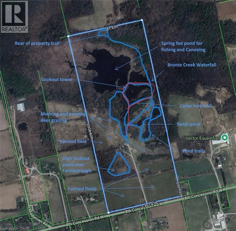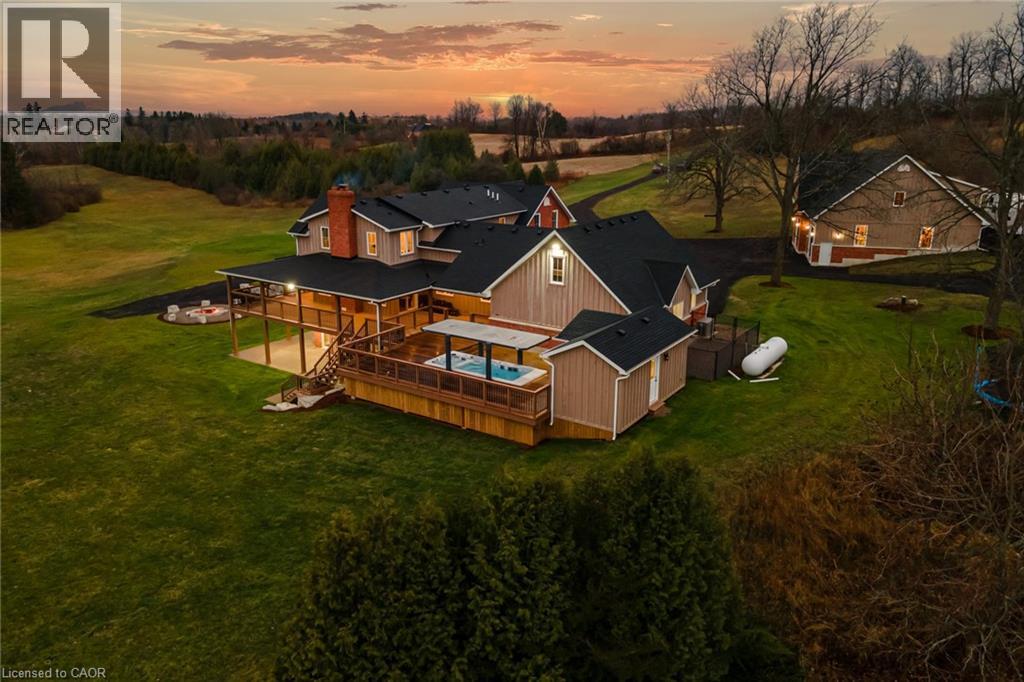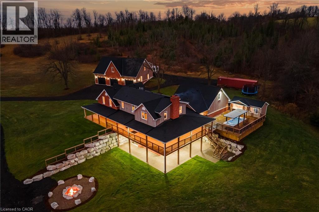 108+ Acres and 25+ Acres of water nestled in the heart of Flamborough, this stunning 4-bedroom, 4+1-bathroom country estate blends historic charm with modern luxury. Extensively renovated in 2018, this property boasts over 6,000 sq. ft. of refined living space on 108+ acres featuring 7 picturesque bodies of water, including 3 connected to Bronte Creek. The home includes a walkaround porch, gourmet kitchen with Bosch appliances, a steam spa shower, two Rumford fireplaces, and a walk-out basement with in-floor heating. Outdoor living is unmatched with a pizza oven, a 4 ft fireplace, pool house with bar and drink fridge, and a swim spa / hot tub with an automatic Covana cover. A 60x40 workshop, complete with a 10,000 lb hoist, RV hookup, and framed second-level 2-bed apartment, offers endless possibilities. Modern amenities include high-speed fiber internet, a Kohler generator, and security cameras. With reduced property taxes and proximity to Waterdown, Cambridge, and Burlington, this property is the perfect private retreat or multi-functional family estate. Don’t miss this rare opportunity! (id:51300)