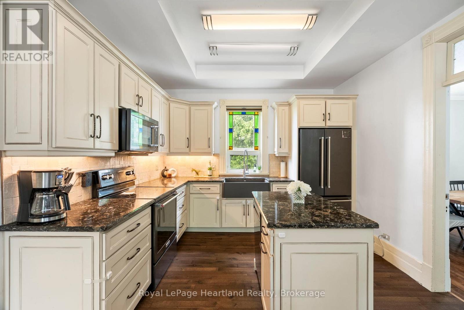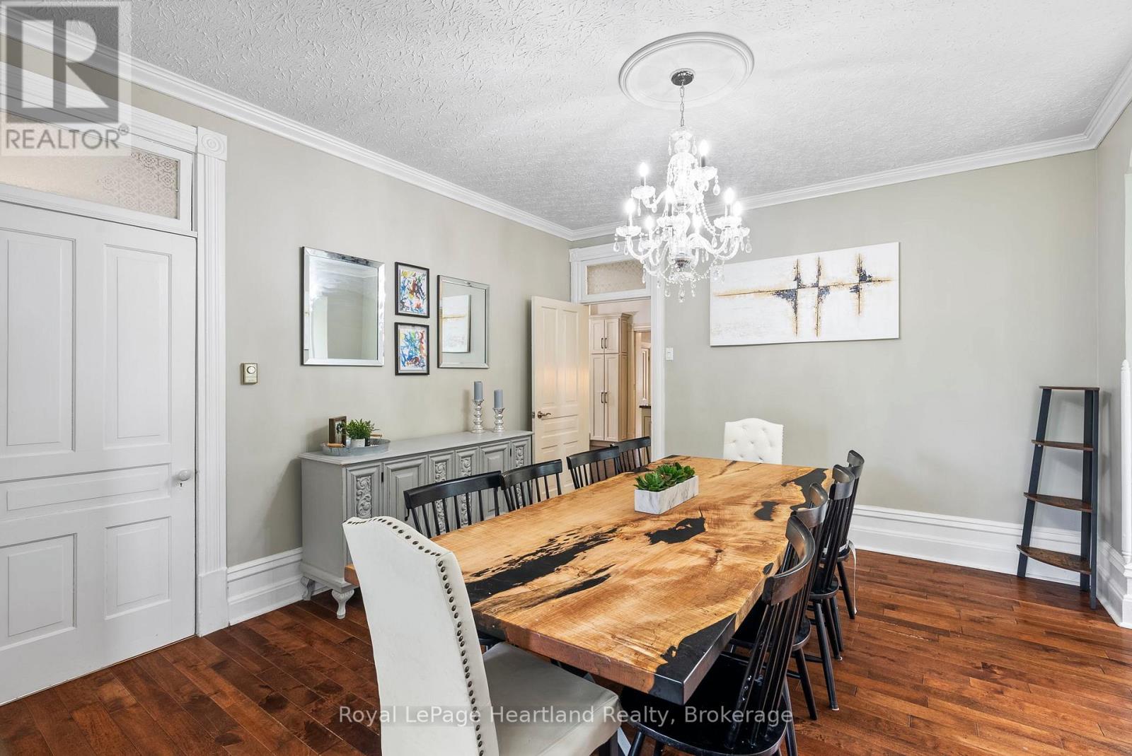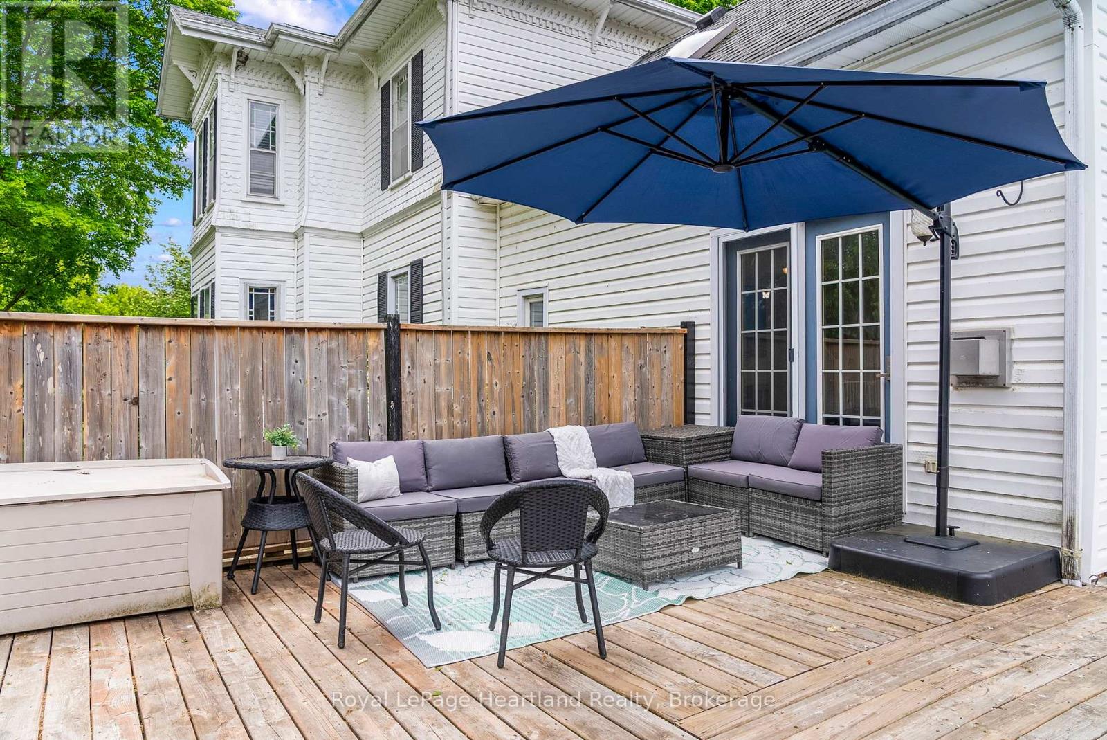 Step back in time and embrace the elegance of this stunning Victorian-style two-story home located in a picturesque setting directly across from the serene Maitland River. Boasting timeless charm and modern comforts, this home offers a lifestyle of both luxury and tranquility. Complete with 4 spacious bedrooms to allow for your family to grow, and for guests to stay and make endless memories for years to come. The main floor boasts a generously sized living and formal dining area, as well as a spacious kitchen with ample countertop and cabinetry space all featuring high ceilings, intricate crown moldings, and large floor to ceiling windows that flood the rooms with natural light. The large fenced in yard, private swimming pool with diving board, wrap around deck and privacy fence provide the ideal spaces for relaxing afternoons or entertaining family & friends. Nestled across from the scenic Maitland River, enjoy peaceful views, the local harbour for swimming and boating, walking trails and an abundance of natural beauty just steps from your front door. The private driveway and detached 2 car garage provide additional storage and ample space to park or work on your toys. This home offers the perfect blend of historic elegance and modern amenities in an stunning riverview setting. This home provides the feel and comfort of one you would read about in story books. Call Your REALTOR Today To View What Could Be Your Little Slice of Paradise & History and to not miss the opportunity to make this dream home your reality! (id:51300)
