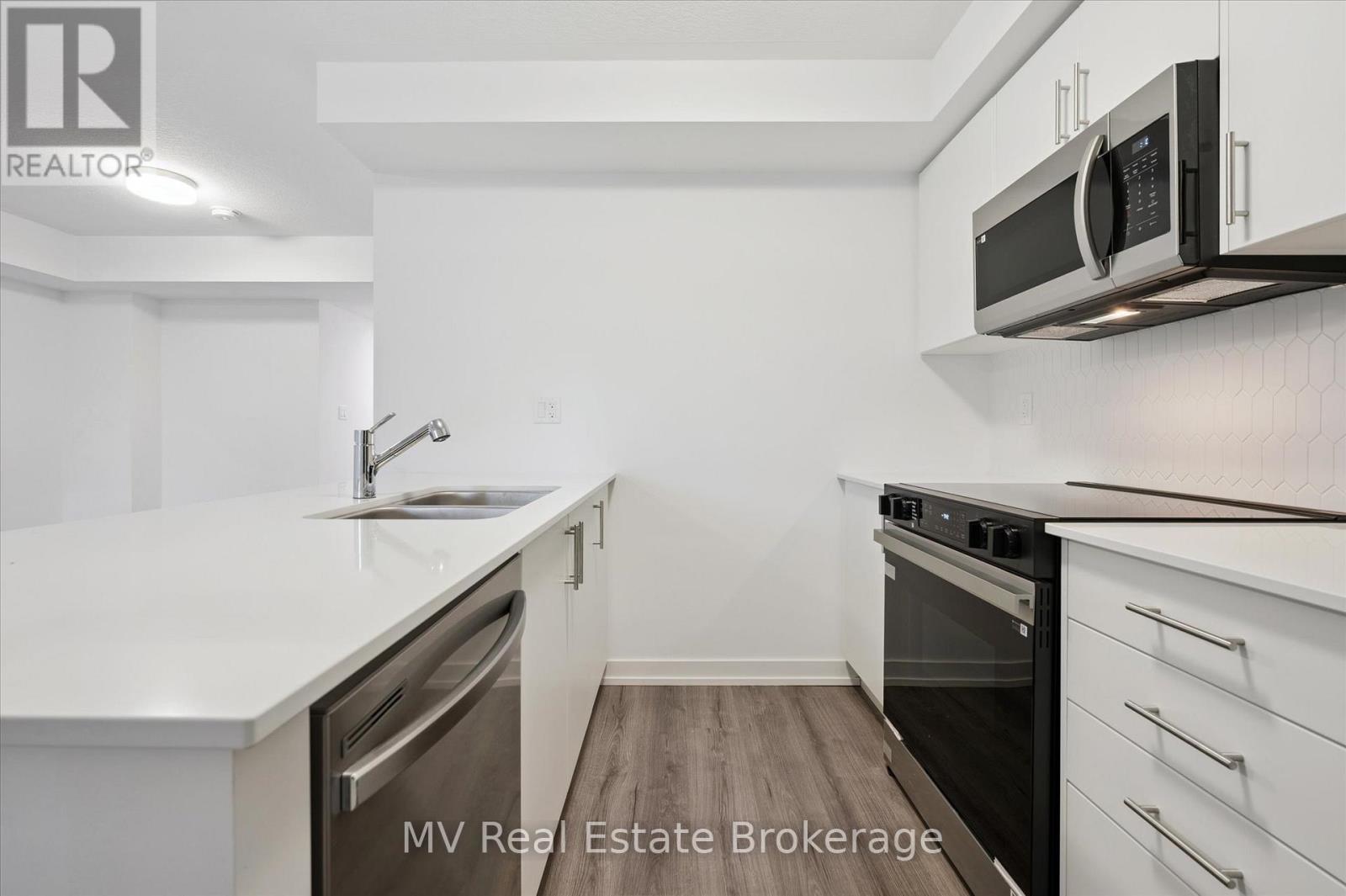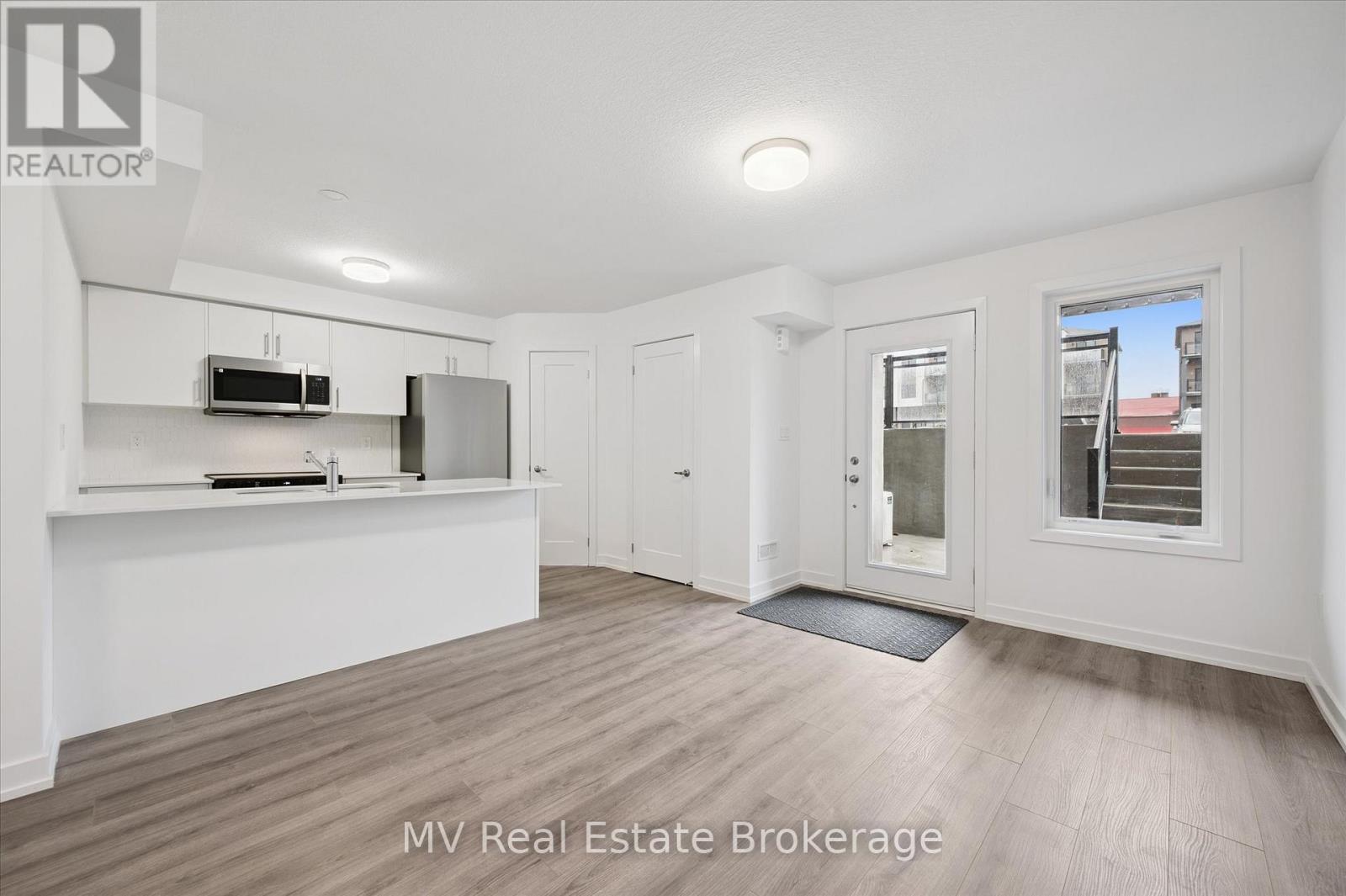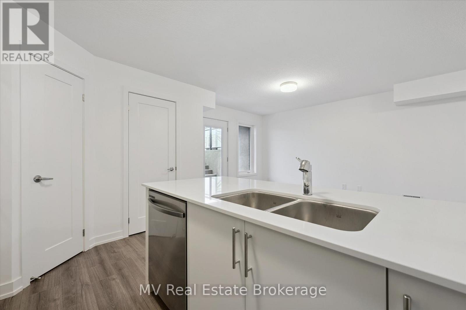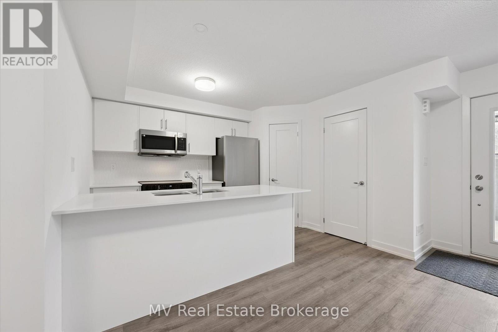 Be the first to call this never-lived-in, 900-square-foot home your own. This modern, carpet-free unit features a bright open layout with a sunken patio perfect for relaxing outdoors. Inside, you'll find two spacious bedrooms and two bathrooms, including a private ensuite. The kitchen is equipped with brand-new appliances and a generous walk-in pantry, and the convenience of in-suite laundry adds to the appeal. Enjoy this fantastic location with shopping, schools, nature trails along the Grand River and Downtown Fergus all within walking distance. (Rent plus Utilities.) (id:51300)