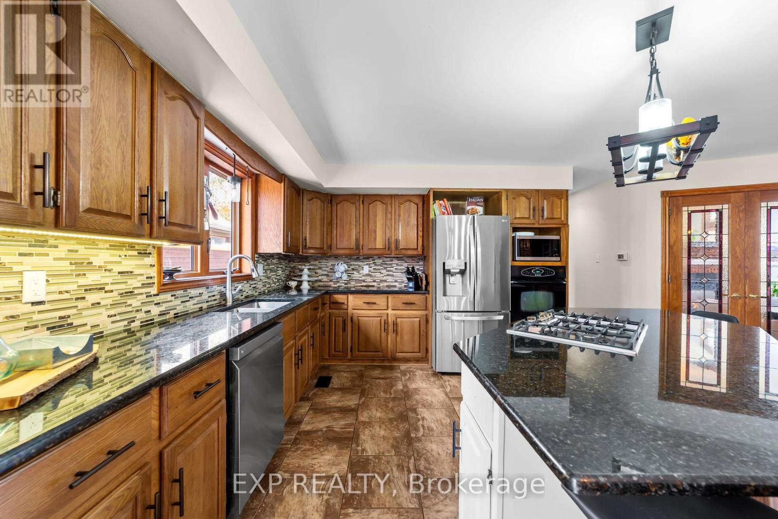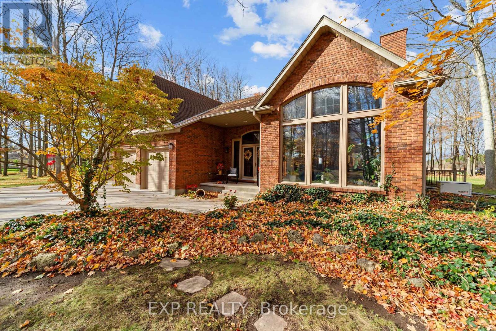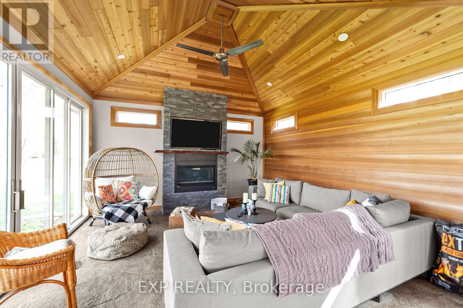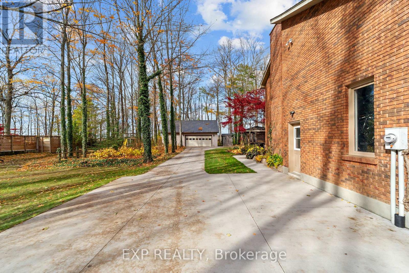 Set on a sprawling private 1.3-acre lot in Ilderton's coveted Coldstream community, this property stands out for its incredible detached shop and resort-style outdoor living. The 26x33 workshop with an additional 24x24 rear bay features a loft with vaulted ceilings designed for a car lift (included), 100-amp service, natural gas furnace, and high-speed internet-ideal for hobbyists, entrepreneurs, or car enthusiasts. Just steps away, the backyard transforms into an entertainer's paradise: a semi-enclosed hot tub area off the back door leads to a covered outdoor kitchen complete with a built-in Big Green Egg set into a custom wood countertop. A fully enclosed area with sliding glass doors, cedar walls, and stamped concrete floors provides the perfect four-season hangout for family and friends. Surrounded by mature trees and backing onto farmland, this home blends the serenity of country life with the convenience of being minutes from London and the 402. Inside you'll find granite counters in the kitchen with a built-in wall oven, and a spacious open-concept living room with a fireplace and built-ins. The main floor also offers a stunning dining room with two-story ceilings, a fireplace, and custom stained-glass doors that match the grand front entry. The second level features a loft-style den, large primary with ensuite, and two additional bedrooms. The lower level is fully finished with a walk-up entrance, games room, and secondary living area. The long concrete drive is perfect for larger families-space, privacy, and lifestyle all in one. (id:51300)