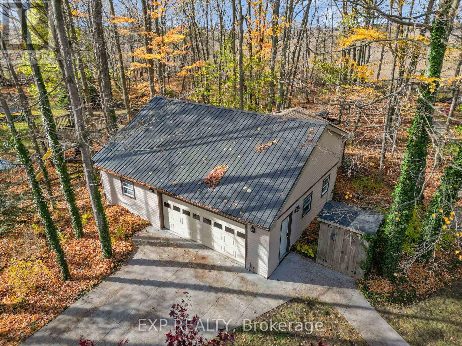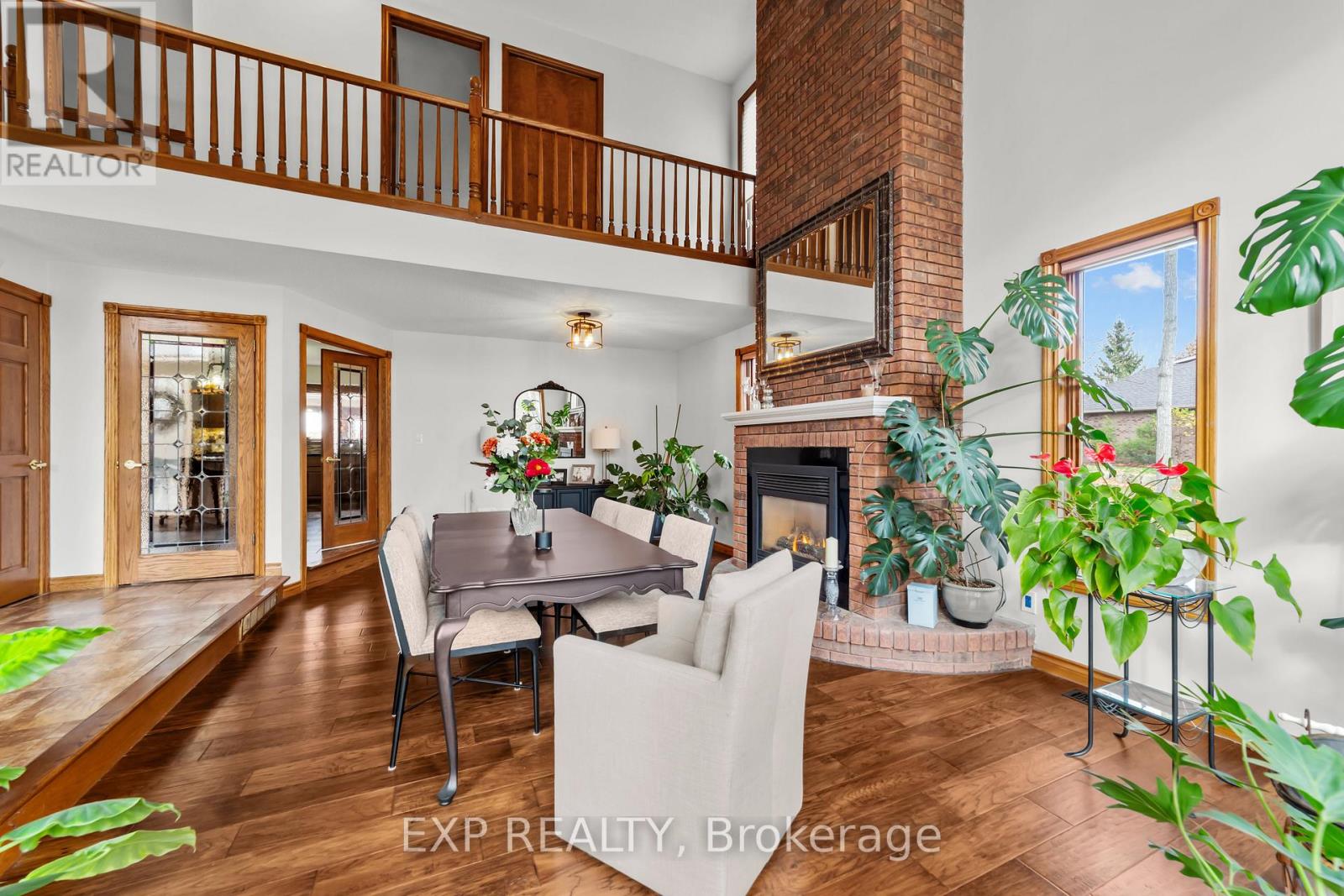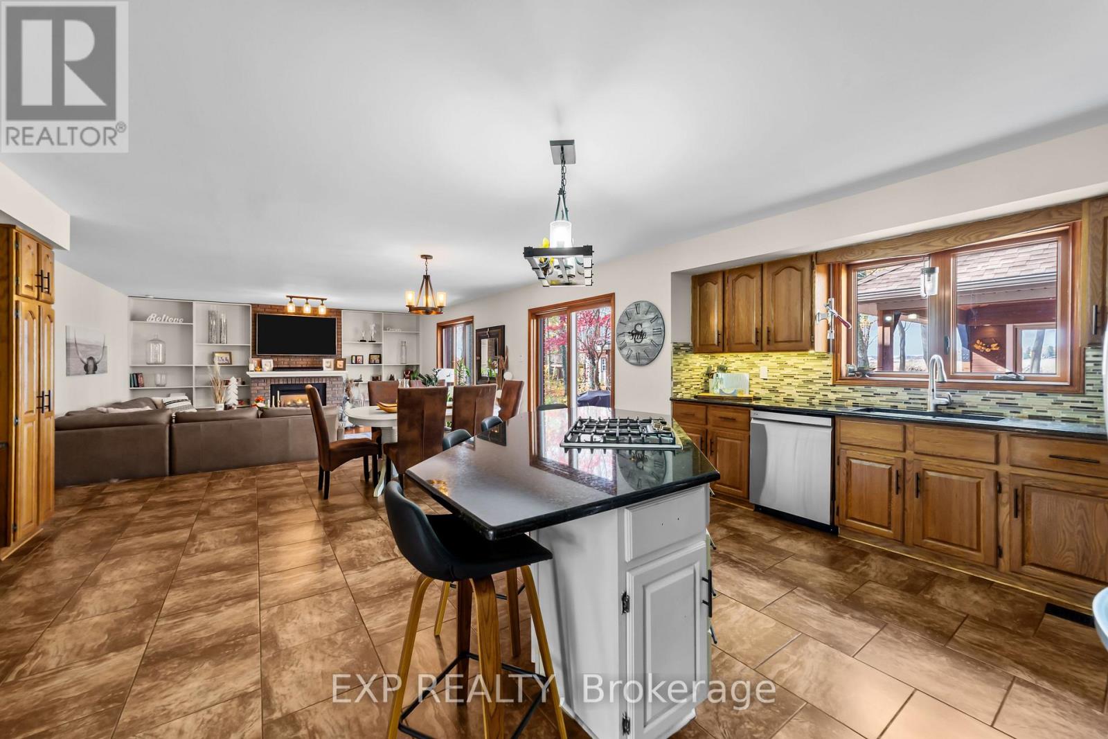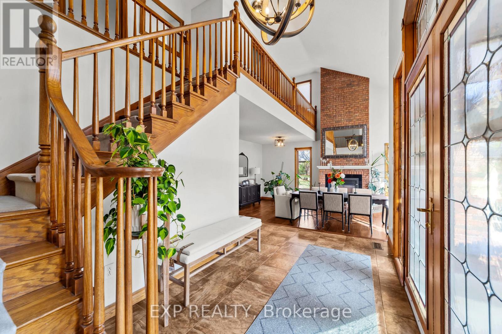 Set on a sprawling private 1.3-acre lot in Ilderton's coveted Coldstream community, this property stands out for its incredible detached shop and resort-style outdoor living. The 26x33 workshop with an additional 24x24 rear bay features a loft with vaulted ceilings designed for a car lift (included), 100-amp service, natural gas furnace, and high-speed internet-ideal for hobbyists, entrepreneurs, or car enthusiasts. Just steps away, the backyard transforms into an entertainer's paradise: a semi-enclosed hot tub area off the back door leads to a covered outdoor kitchen complete with a built-in Big Green Egg set into a custom wood countertop. A fully enclosed area with sliding glass doors, cedar walls, and stamped concrete floors provides the perfect four-season hangout for family and friends. Surrounded by mature trees and backing onto farmland, this home blends the serenity of country life with the convenience of being minutes from London and the 402. Inside you'll find granite counters in the kitchen with a built-in wall oven, and a spacious open-concept living room with a fireplace and built-ins. The main floor also offers a stunning dining room with two-story ceilings, a fireplace, and custom stained-glass doors that match the grand front entry. The second level features a loft-style den, large primary with ensuite, and two additional bedrooms. The lower level is fully finished with a walk-up entrance, games room, and secondary living area. The long concrete drive is perfect for larger families-space, privacy, and lifestyle all in one. (id:51300)