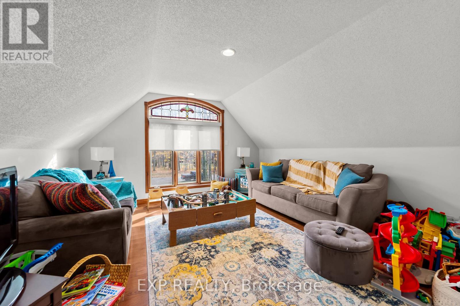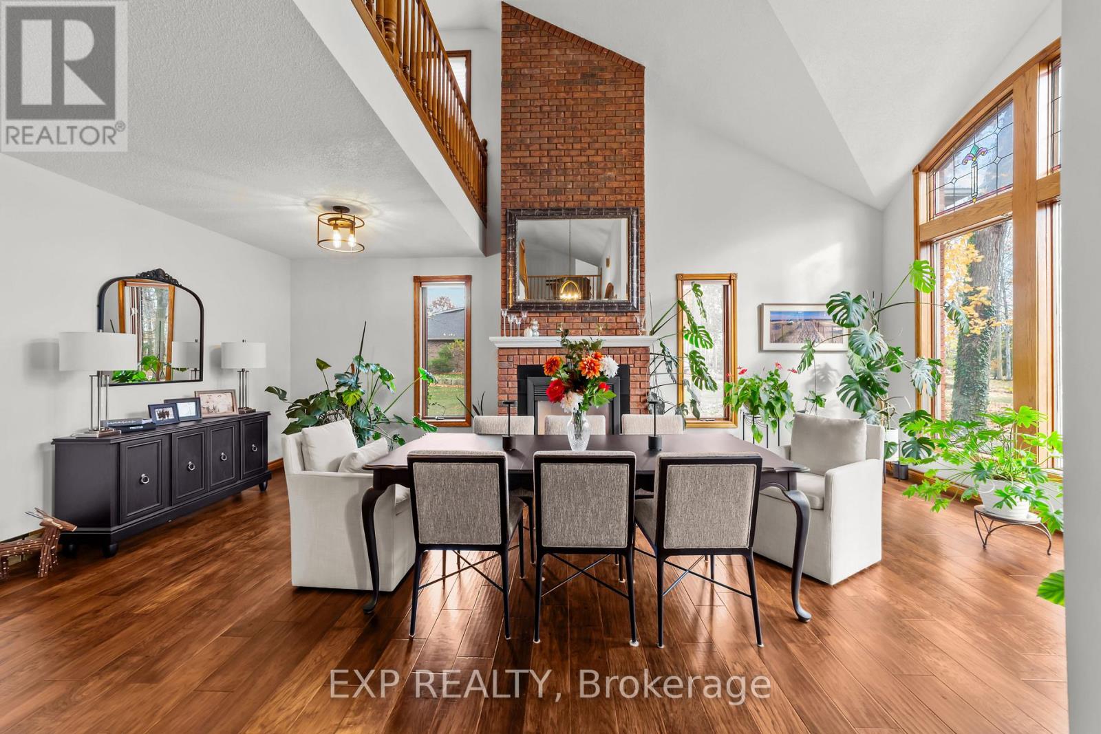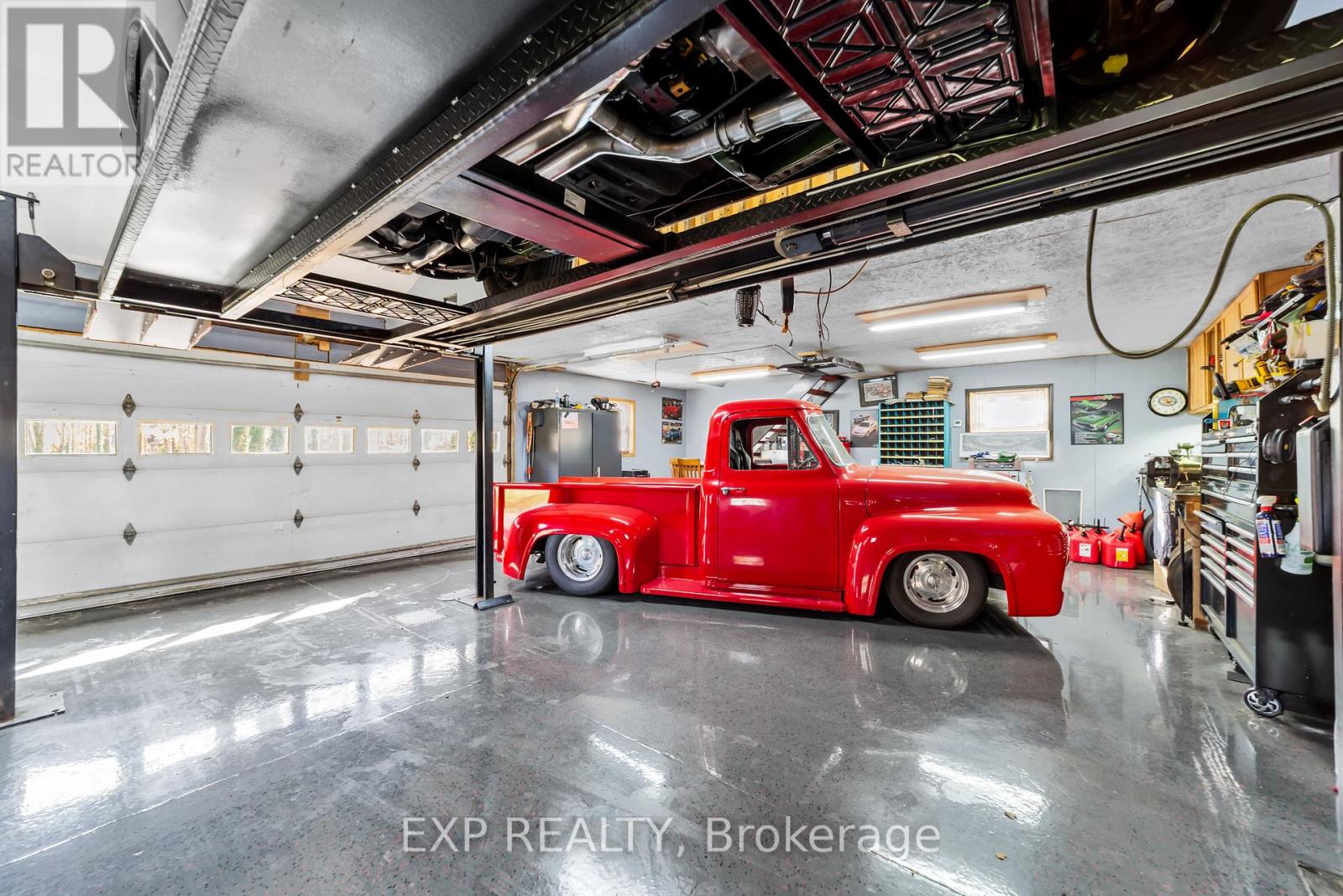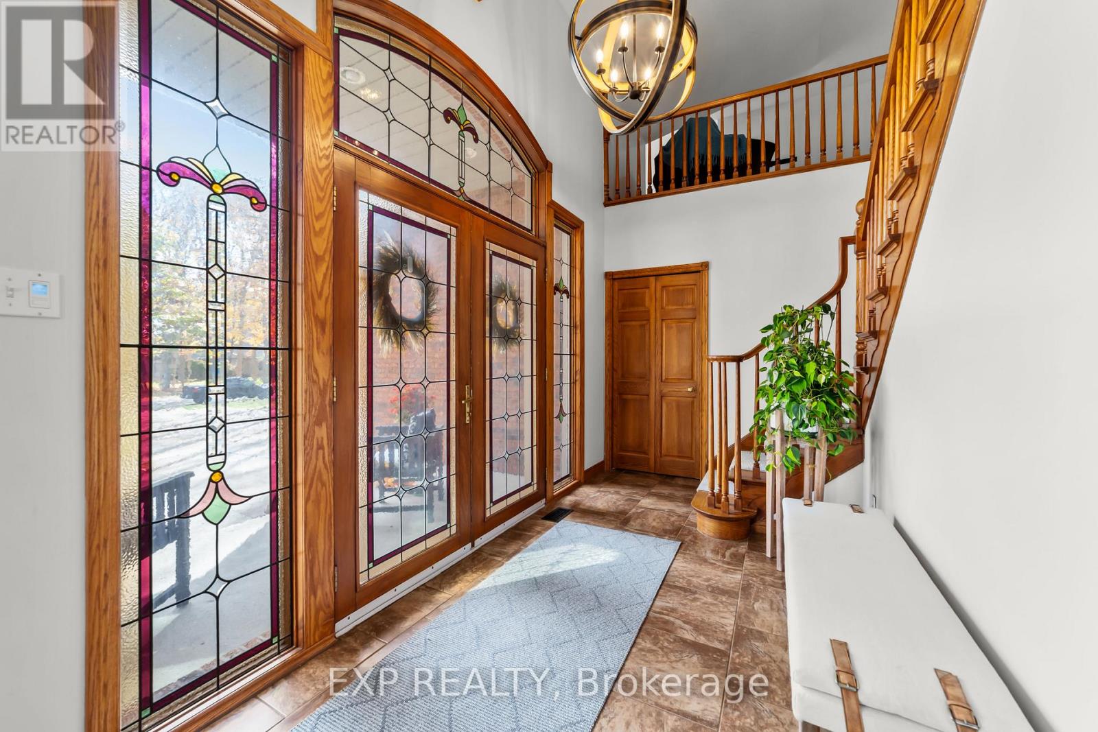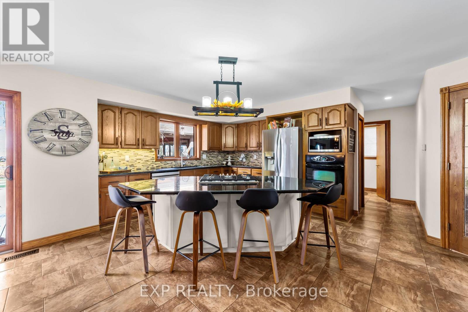 Set on a sprawling private 1.3-acre lot in Ilderton's coveted Coldstream community, this property stands out for its incredible detached shop and resort-style outdoor living. The 26x33 workshop with an additional 24x24 rear bay features a loft with vaulted ceilings designed for a car lift (included), 100-amp service, natural gas furnace, and high-speed internet-ideal for hobbyists, entrepreneurs, or car enthusiasts. Just steps away, the backyard transforms into an entertainer's paradise: a semi-enclosed hot tub area off the back door leads to a covered outdoor kitchen complete with a built-in Big Green Egg set into a custom wood countertop. A fully enclosed area with sliding glass doors, cedar walls, and stamped concrete floors provides the perfect four-season hangout for family and friends. Surrounded by mature trees and backing onto farmland, this home blends the serenity of country life with the convenience of being minutes from London and the 402. Inside you'll find granite counters in the kitchen with a built-in wall oven, and a spacious open-concept living room with a fireplace and built-ins. The main floor also offers a stunning dining room with two-story ceilings, a fireplace, and custom stained-glass doors that match the grand front entry. The second level features a loft-style den, large primary with ensuite, and two additional bedrooms. The lower level is fully finished with a walk-up entrance, games room, and secondary living area. The long concrete drive is perfect for larger families-space, privacy, and lifestyle all in one. (id:51300)