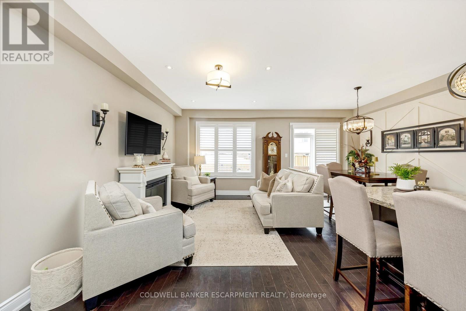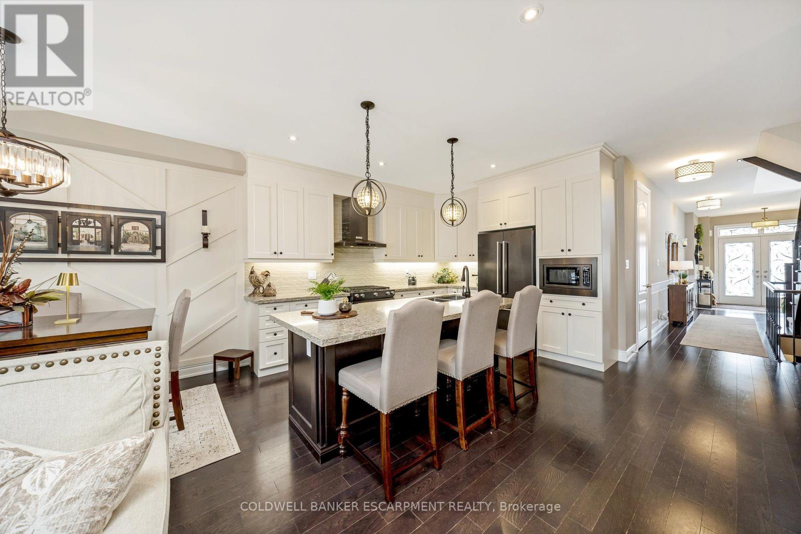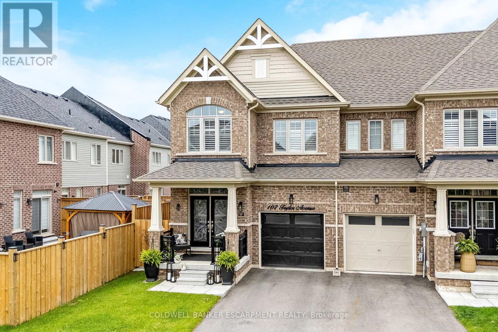 Welcome to 107 Taylor Avenue, Rockwood. This charming 3-bedroom, 3-bath townhome is sure to exceed your expectations. From the moment you step inside, you'll notice the exquisite updates that have transformed this home from top to bottom. The main floor is designed to impress, featuring soaring 9-foot ceilings with upgraded 8-foot doors and elegant hardwood flooring that creates a spacious and inviting atmosphere. The kitchen is truly a chef's dream, boasting upgraded ceiling-height cabinetry, a sleek gas stove, and a large island that serves as the perfect gathering spot for family and friends. Here, everyone can enjoy spending time together while preparing meals. The primary bedroom is a luxurious retreat, offering not one but two walk-in closets complete with built-in cabinetry. The 4-piece ensuite is a spa-like haven, featuring a modern glass shower. The other two bedrooms on the upper level are generously sized, with large windows that flood the rooms with natural light, making them warm and welcoming spaces. The basement has been exquisitely transformed with vinyl flooring, and trendy accent wall with fireplace and offers ample space for the entire family to gather and enjoy time together. Throughout the entire home, you'll find stylish details like accent walls, wainscotting, California shutters on every window, including the patio door; which leads you to the fenced-in backyard, where you'll discover a delightful lighted gazebo that's perfect for enjoying summer evening fires. Whether you're entertaining guests or simply relaxing with family, this outdoor space is sure to be a favourite spot. This home is truly a must see. Book your showing today! (id:51300)