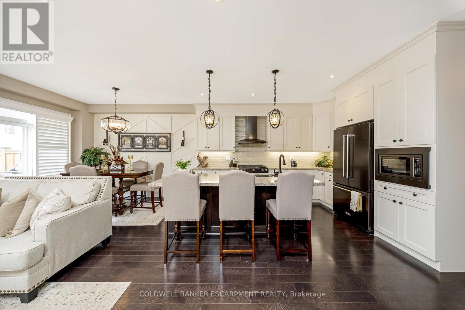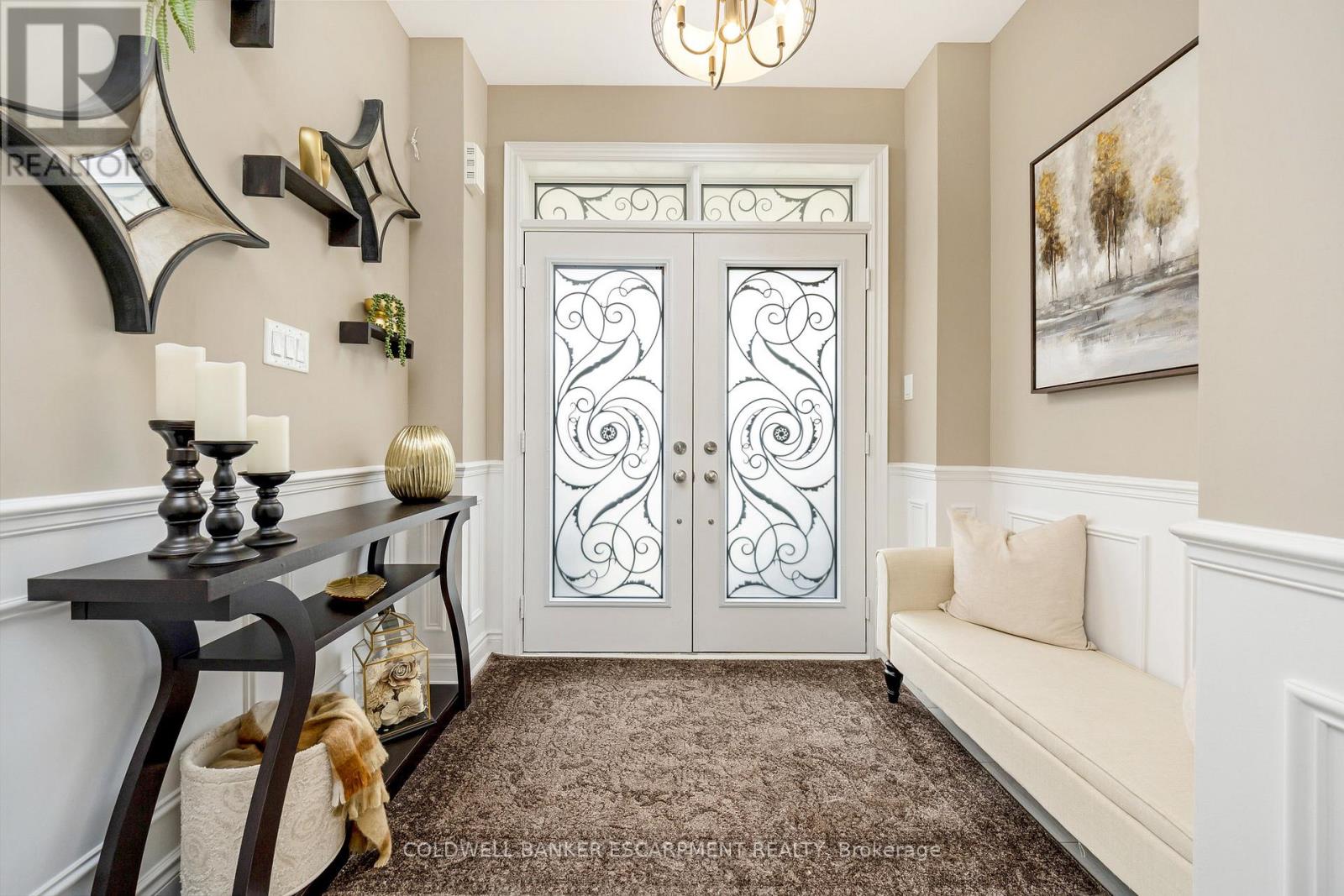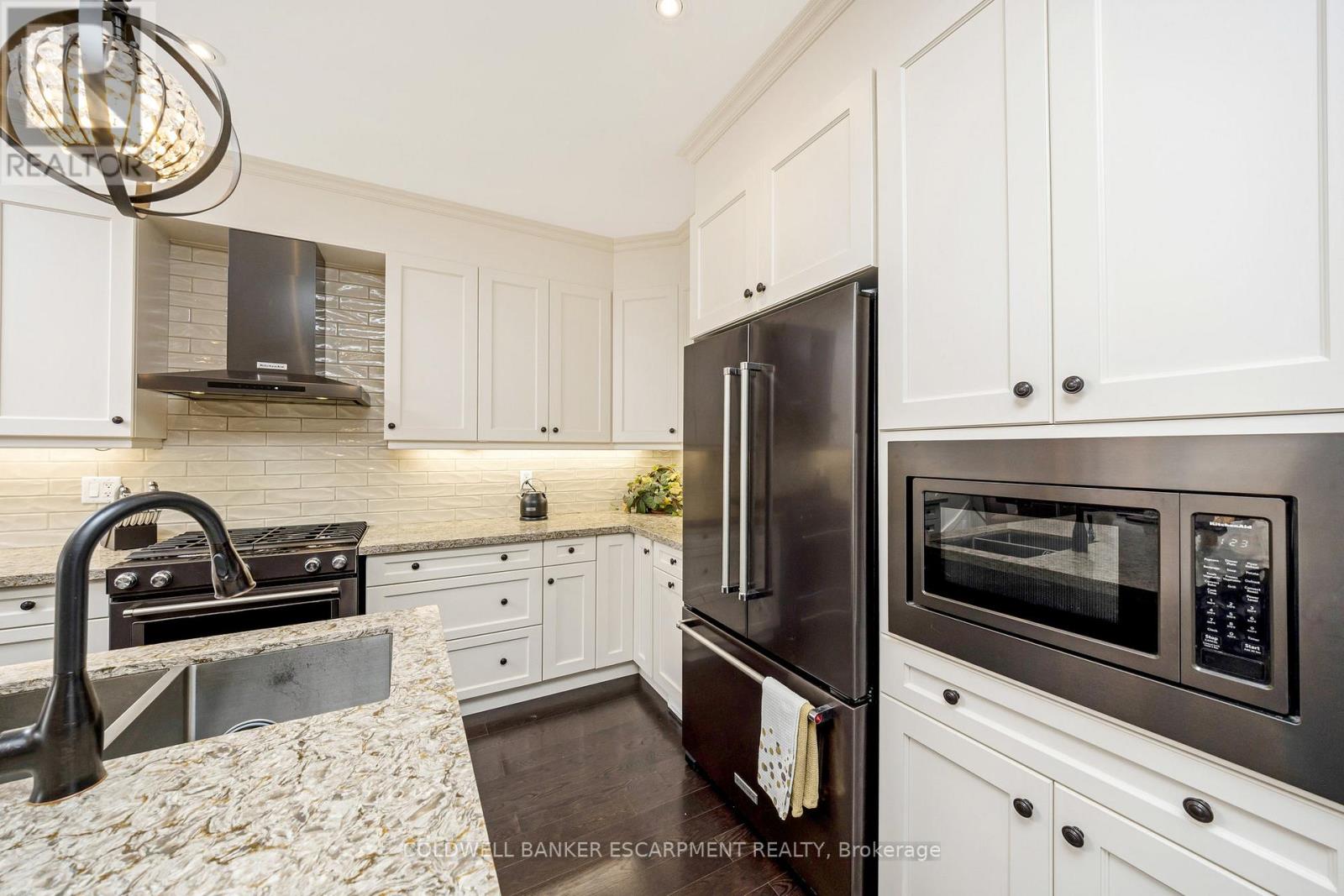 Welcome to 107 Taylor Avenue, Rockwood. This charming 3-bedroom, 3-bath townhome is sure to exceed your expectations. From the moment you step inside, you'll notice the exquisite updates that have transformed this home from top to bottom. The main floor is designed to impress, featuring soaring 9-foot ceilings with upgraded 8-foot doors and elegant hardwood flooring that creates a spacious and inviting atmosphere. The kitchen is truly a chef's dream, boasting upgraded ceiling-height cabinetry, a sleek gas stove, and a large island that serves as the perfect gathering spot for family and friends. Here, everyone can enjoy spending time together while preparing meals. The primary bedroom is a luxurious retreat, offering not one but two walk-in closets complete with built-in cabinetry. The 4-piece ensuite is a spa-like haven, featuring a modern glass shower. The other two bedrooms on the upper level are generously sized, with large windows that flood the rooms with natural light, making them warm and welcoming spaces. The basement has been exquisitely transformed with vinyl flooring, and trendy accent wall with fireplace and offers ample space for the entire family to gather and enjoy time together. Throughout the entire home, you'll find stylish details like accent walls, wainscotting, California shutters on every window, including the patio door; which leads you to the fenced-in backyard, where you'll discover a delightful lighted gazebo that's perfect for enjoying summer evening fires. Whether you're entertaining guests or simply relaxing with family, this outdoor space is sure to be a favourite spot. This home is truly a must see. Book your showing today! (id:51300)