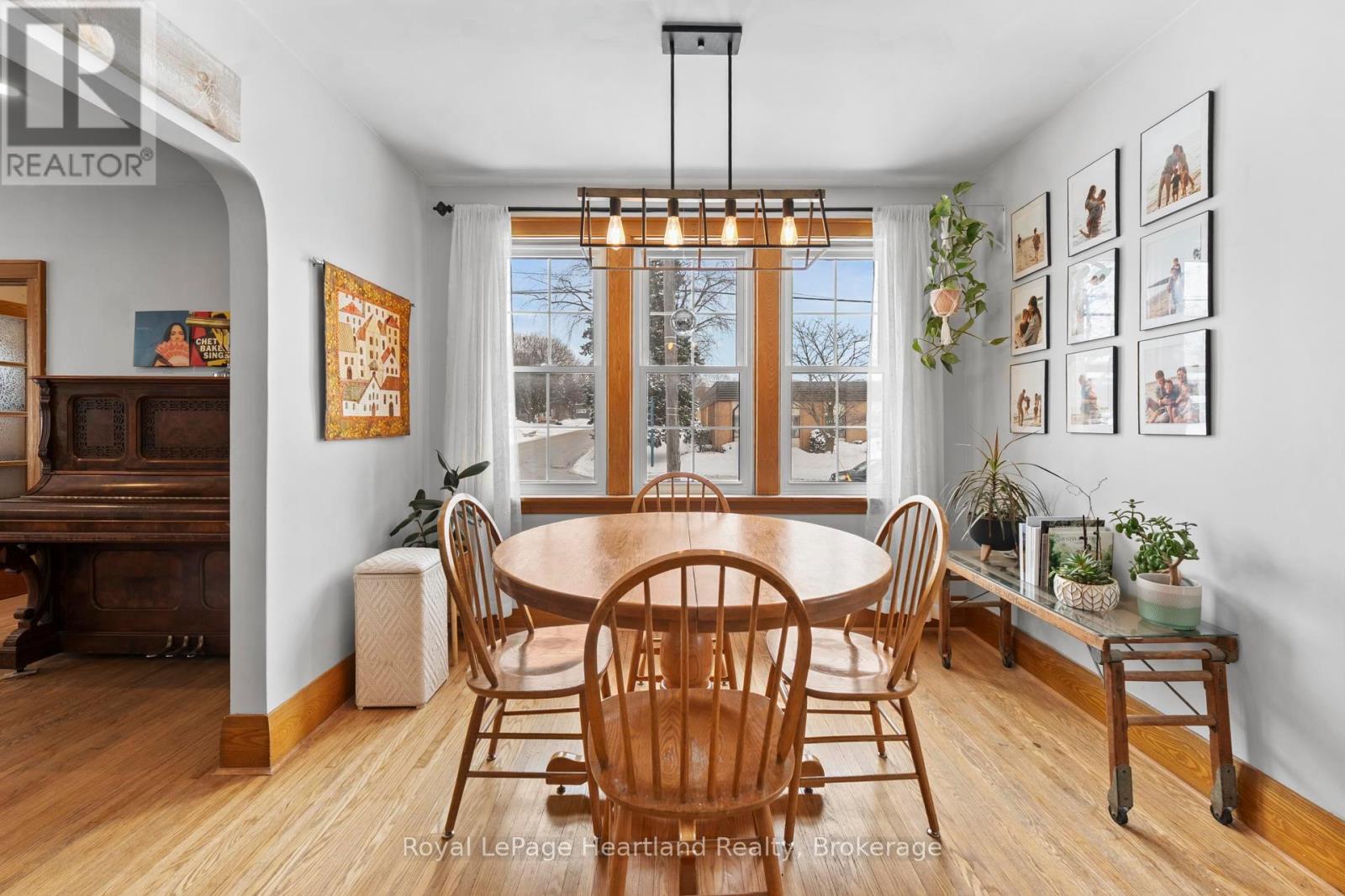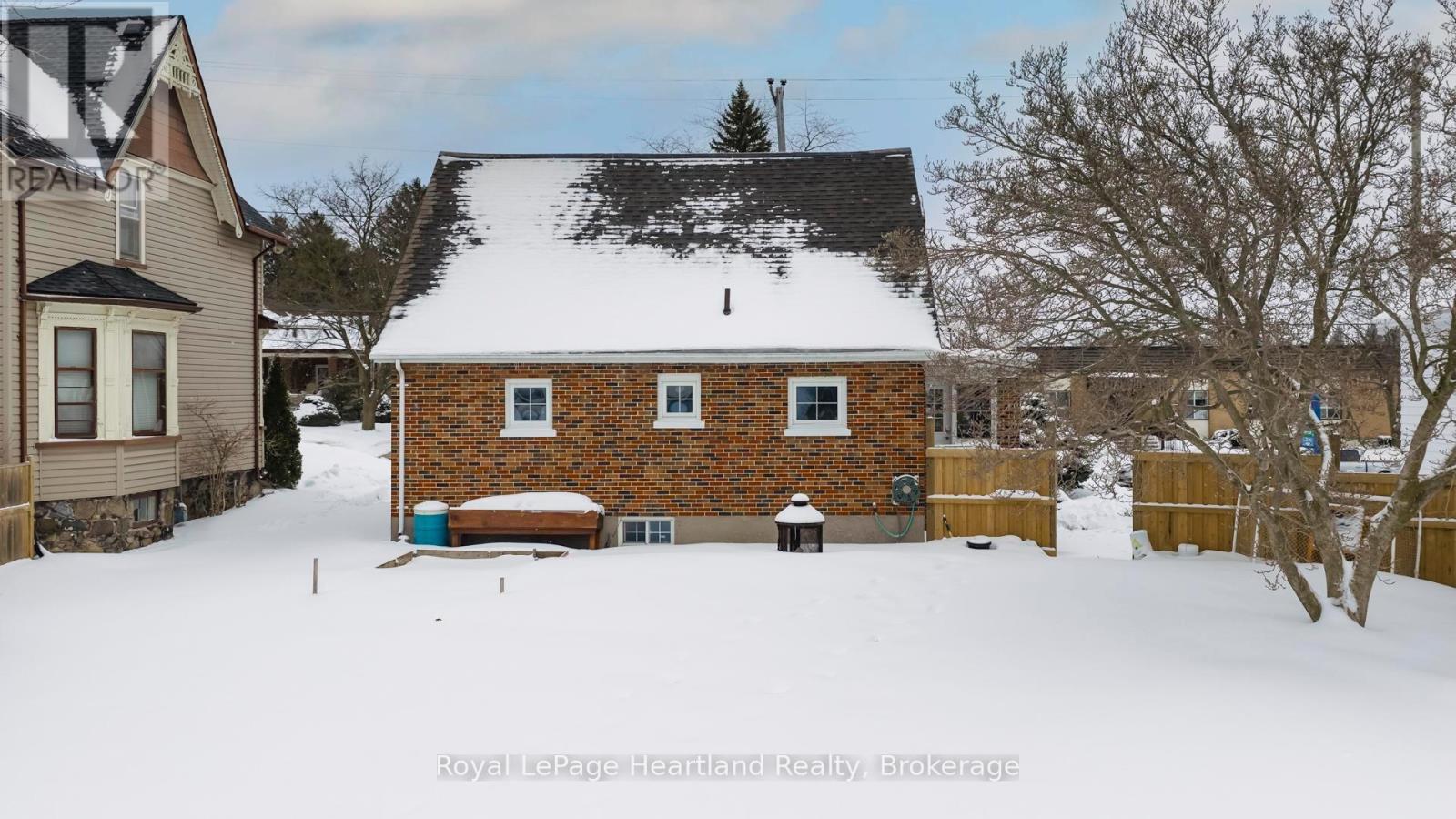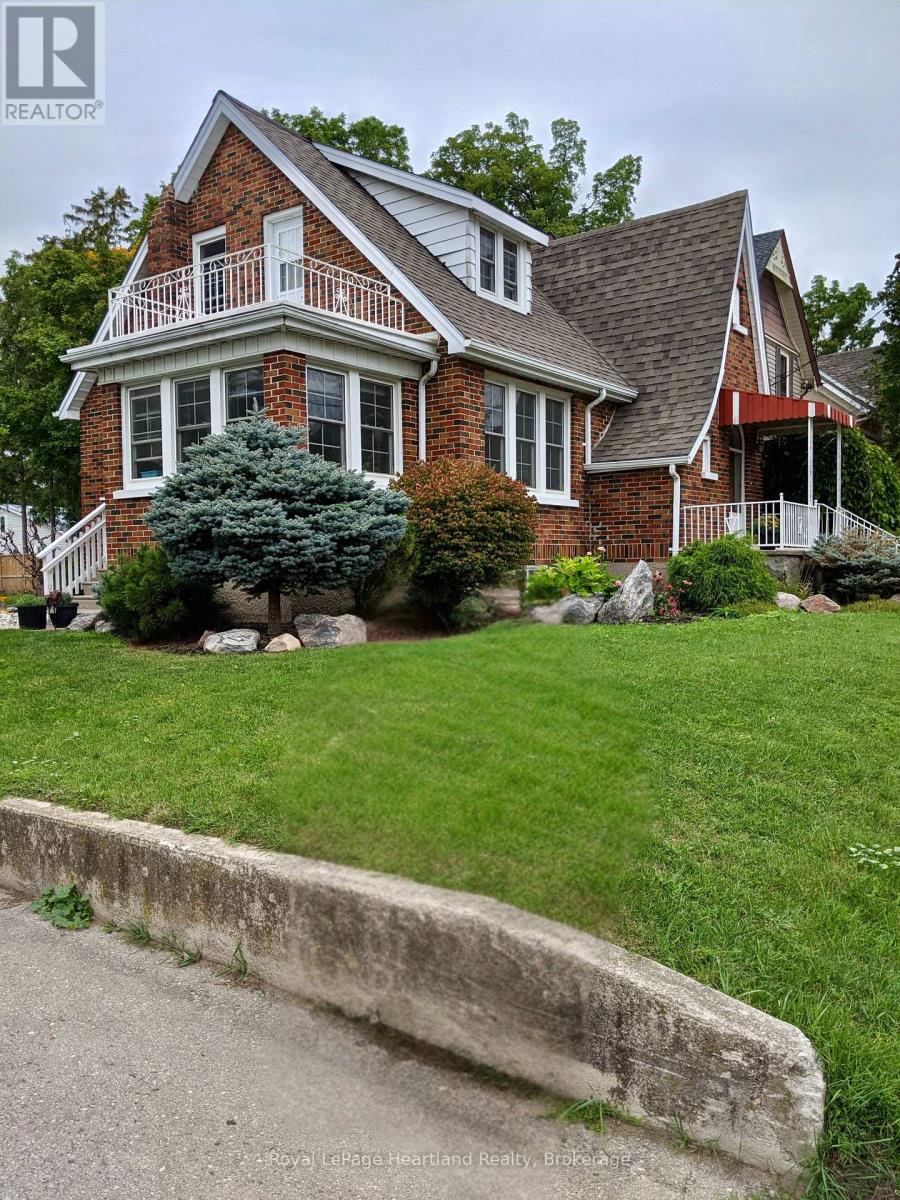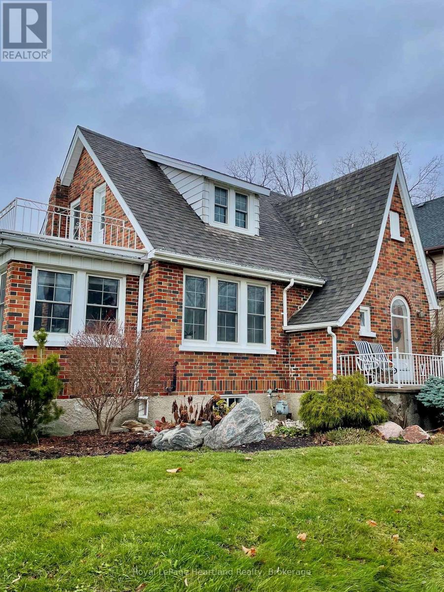 Welcome to 108 Albert Street, Clinton - a three-bedroom brick home with stunning Tudor style architecture. This home features the charm of a 1942 build, with modern updates throughout for comfortable living. Original flooring, trim and doors paired with updated windows, electrical, plumbing and a beautifully renovated custom kitchen with new appliances - this home is a unique gem in the heart of Huron County. The main floor features a sizeable entryway/coatroom and an open-concept dining and living space, with ample natural light. You will also find a bedroom and full bathroom for convenient main floor living. Upstairs, there are two more sizeable bedrooms with ample closet space, and a balcony off the second bedroom. The full, partially finished basement has been recently renovated (2025), providing another living space/rec-room, or office to suit your needs. The basement offers ample storage space and many mechanical upgrades, such as a new hot water heater. The home's exterior is just as impressive, featuring beautifully landscaped gardens, a detached garage and two driveways for ample parking. The large backyard features a newly poured pad for backyard hangouts, a blooming magnolia tree in the spring and a new fence. Located in the quaint town of Clinton, just 15 minutes from Lake Huron and an hour from London, this home is ready for its next owners. Don't hesitate to check this one out! (id:51300)