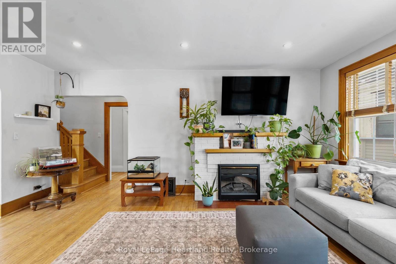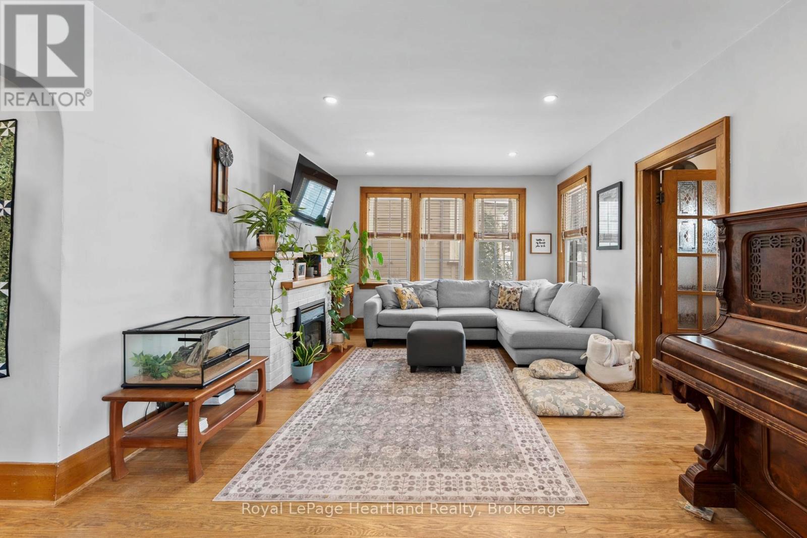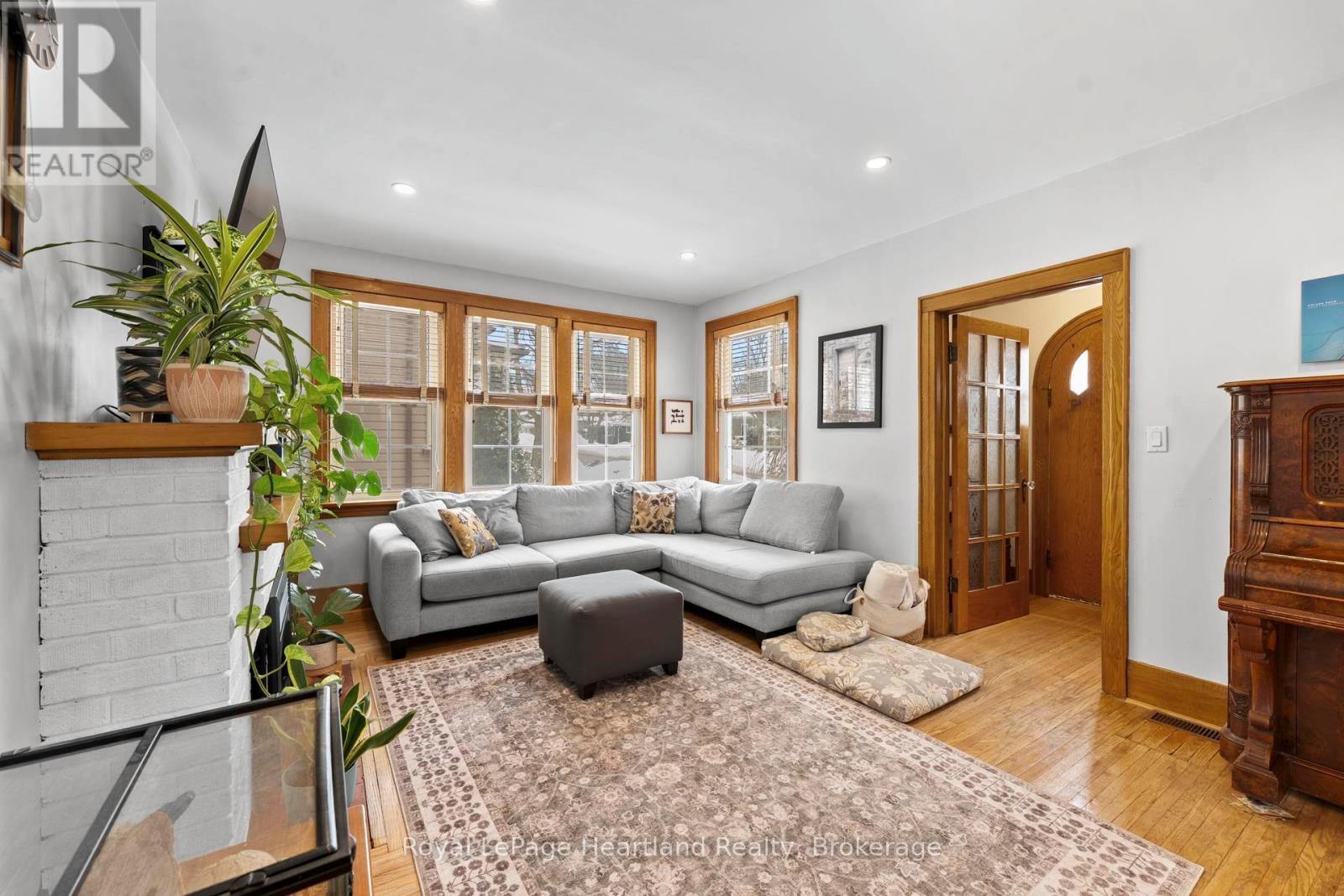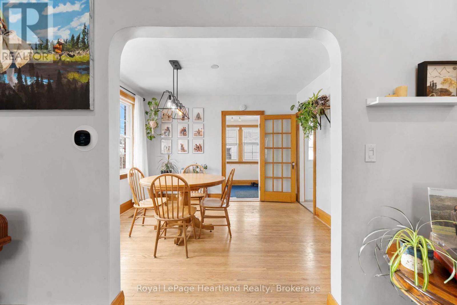 Welcome to 108 Albert Street, Clinton - a three-bedroom brick home with stunning Tudor style architecture. This home features the charm of a 1942 build, with modern updates throughout for comfortable living. Original flooring, trim and doors paired with updated windows, electrical, plumbing and a beautifully renovated custom kitchen with new appliances - this home is a unique gem in the heart of Huron County. The main floor features a sizeable entryway/coatroom and an open-concept dining and living space, with ample natural light. You will also find a bedroom and full bathroom for convenient main floor living. Upstairs, there are two more sizeable bedrooms with ample closet space, and a balcony off the second bedroom. The full, partially finished basement has been recently renovated (2025), providing another living space/rec-room, or office to suit your needs. The basement offers ample storage space and many mechanical upgrades, such as a new hot water heater. The home's exterior is just as impressive, featuring beautifully landscaped gardens, a detached garage and two driveways for ample parking. The large backyard features a newly poured pad for backyard hangouts, a blooming magnolia tree in the spring and a new fence. Located in the quaint town of Clinton, just 15 minutes from Lake Huron and an hour from London, this home is ready for its next owners. Don't hesitate to check this one out! (id:51300)