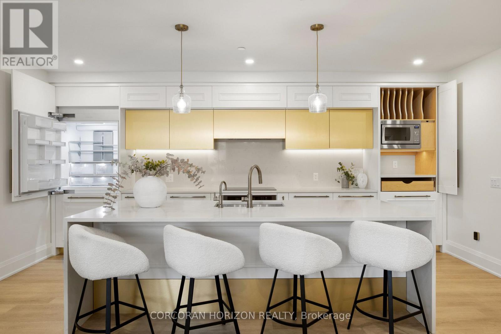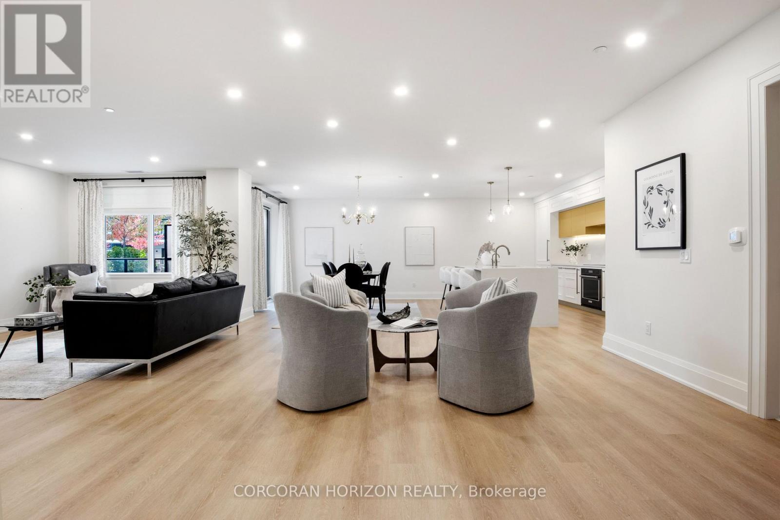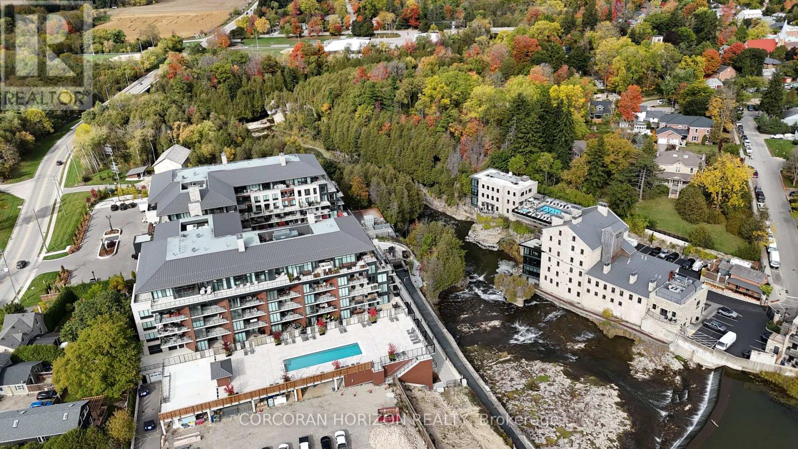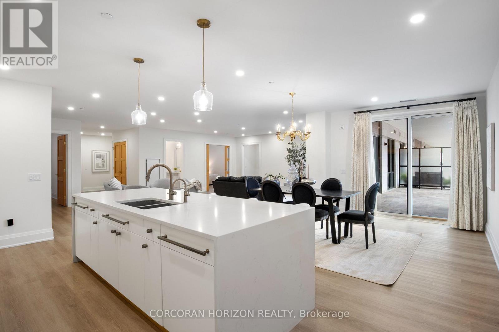 This Luxury suite was designed for those looking to downsize without compromise. 2,098 Sqft of thoughtfully designed living space, this stunning first-floor residence combines the ease of Condo Living with the space and comfort of a Detached Home. This open concept layout has incredible flexibility, allowing you to tailor the space to suit your needs. The expansive dining area comfortably accommodates a full sized dining table, perfect for hosting dinner parties or cherished family gatherings, with room to bring your heirloom set. The living room is ideal for entertaining or relaxing with multiple seating areas and direct access to a sprawling 247 sqft Terrace, perfect for outdoor dining or enjoying your morning coffee. The designer kitchen, complete with an oversized island, with seamless integration into the living and dining areas. Tucked away the primary suite is a true retreat, accessed by a separate hallway and features a spa-inspired ensuite bath and generous walk-in closets. A second spacious bedroom, ideal for family or guests with a large closet & the 3rd bonus room provides added versatility, easily used as a home office, media room or even a 3rd bedroom for visitors. The full-size laundry room offers additional storage and convenience. Located on the ground floor, this suite offers direct views of the Terrace and across the river to the Elora Mill. Perfect for pet owners or those who prefer to avoid elevators. Start your mornings with a short stroll to the resident lounge to enjoy coffee and fresh pastries from the Elora Mill. This suite includes one underground parking space, a locker, and offers access to resort-style amenities: Fitness centre, Yoga studio, Lounge and Lobby Coffee Bar, Outdoor Terrace, and a Pool with Spectacular River Views!! Experience refined living in one of Ontario's most charming and walkable communities. Just steps away from award winning restaurants, artisan shops, cafes and the natural beauty of Elora. (id:51300)