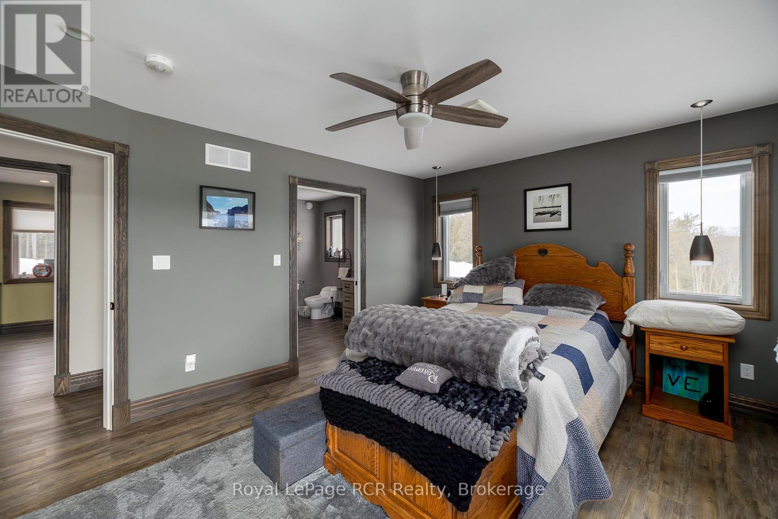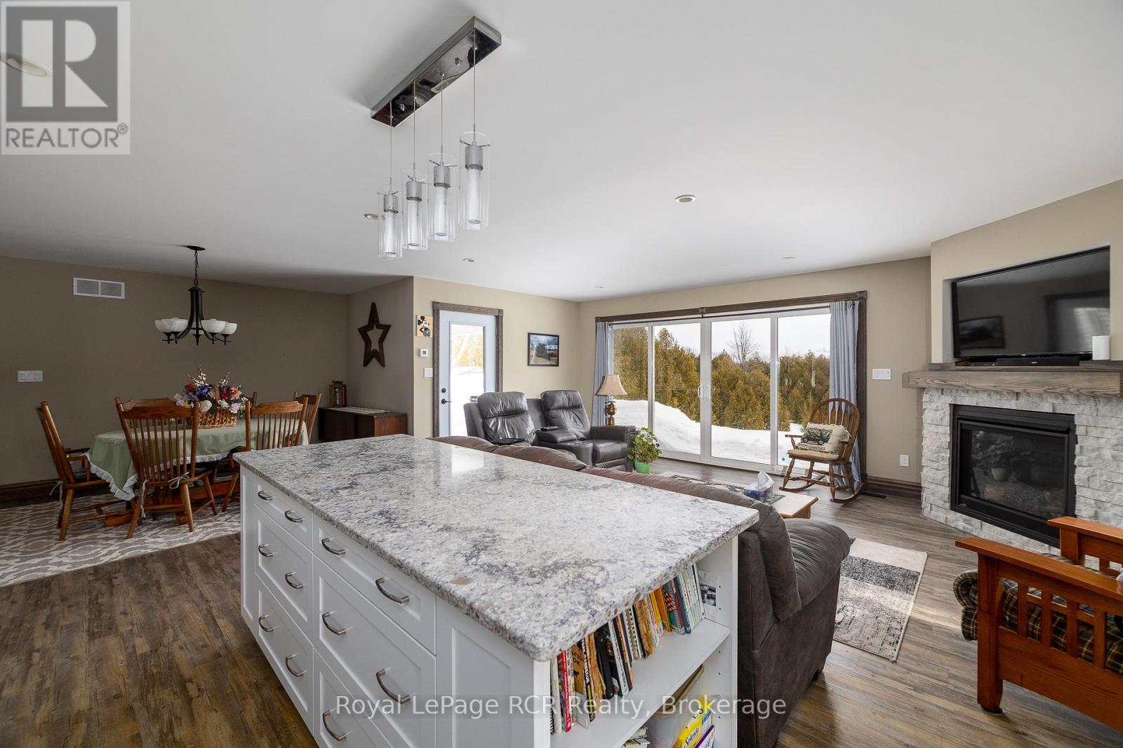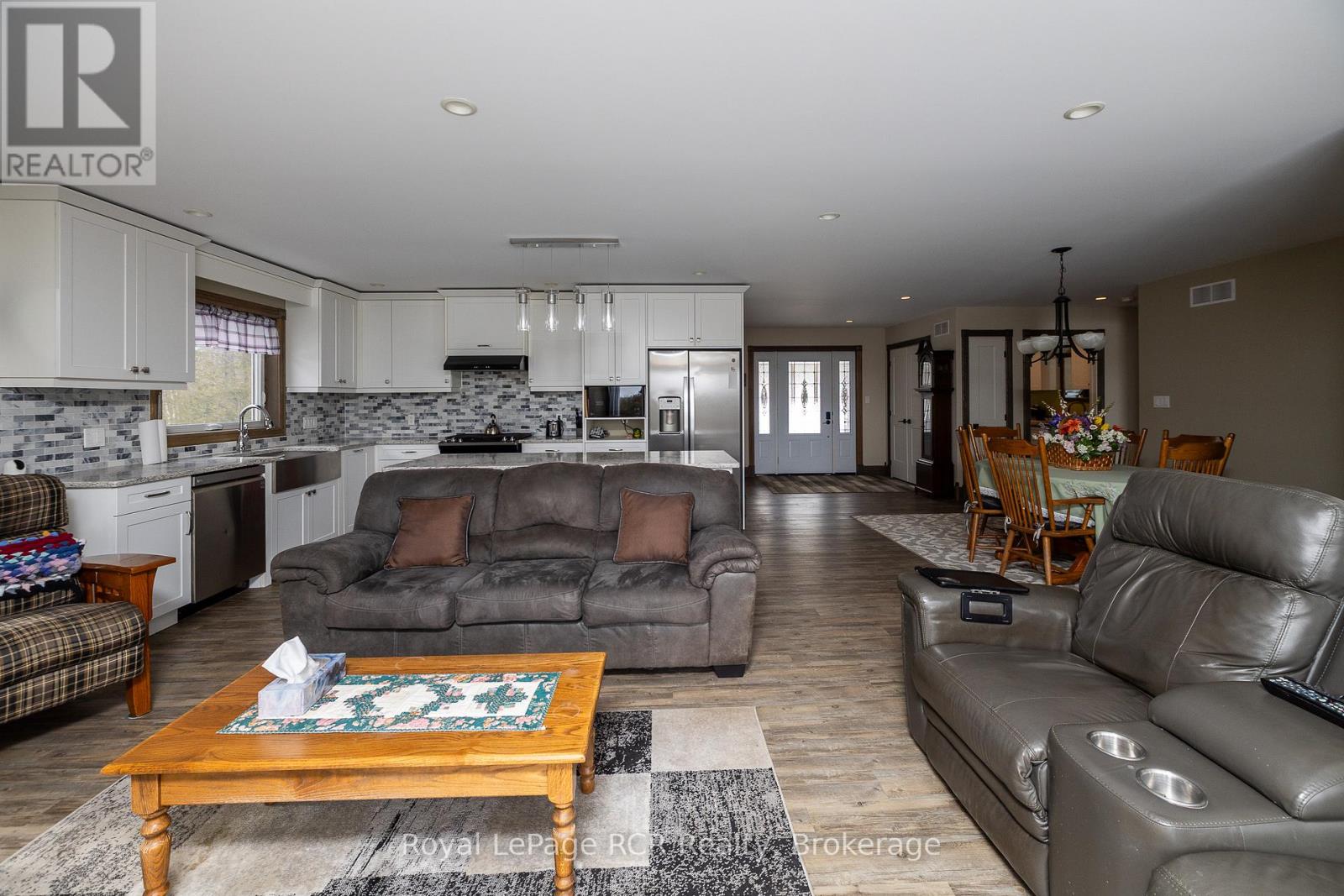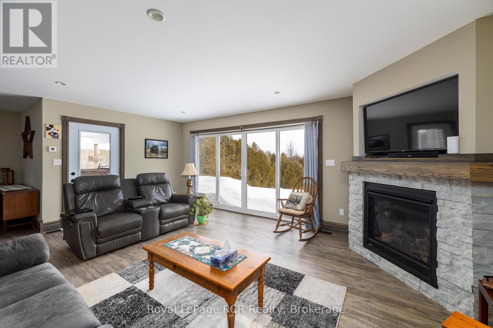1440 square foot bungalow on 2.1 acres (two separate lots) in Glenelg Estates. Overlooking a valley and lake, the home was designed for accessibility and to take in great country views. Built in 2022 with open concept living areas including dining area, kitchen with oversized island, living room with propane fireplace and walkout to the partially covered deck. Main floor bedroom features a spacious ensuite and walk-in closet. Laundry room, front foyer, 2 piece bath and access to the garage complete the main level. The lower level is finished with family room, 3 piece bathroom and 2 additional bedrooms. Extra features include ICF foundation, accessible doors, back up generator, on demand hot water and so much more. Attached double garage with propane heater and a detached 16x32 insulated garage, steel lined with 2 roll up doors. The home sits on a 1 acre lot with the adjoining, separate 1.1 acre lot included. This desirable neighbourhood is well-established with nice homes and a sense of community. Minutes away from Markdale, Flesherton and Durham with lakes, trails and recreational activities at your doorstep. (id:51300)