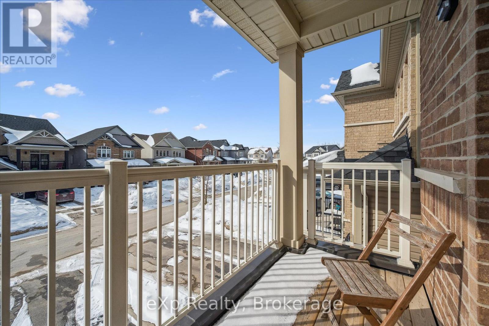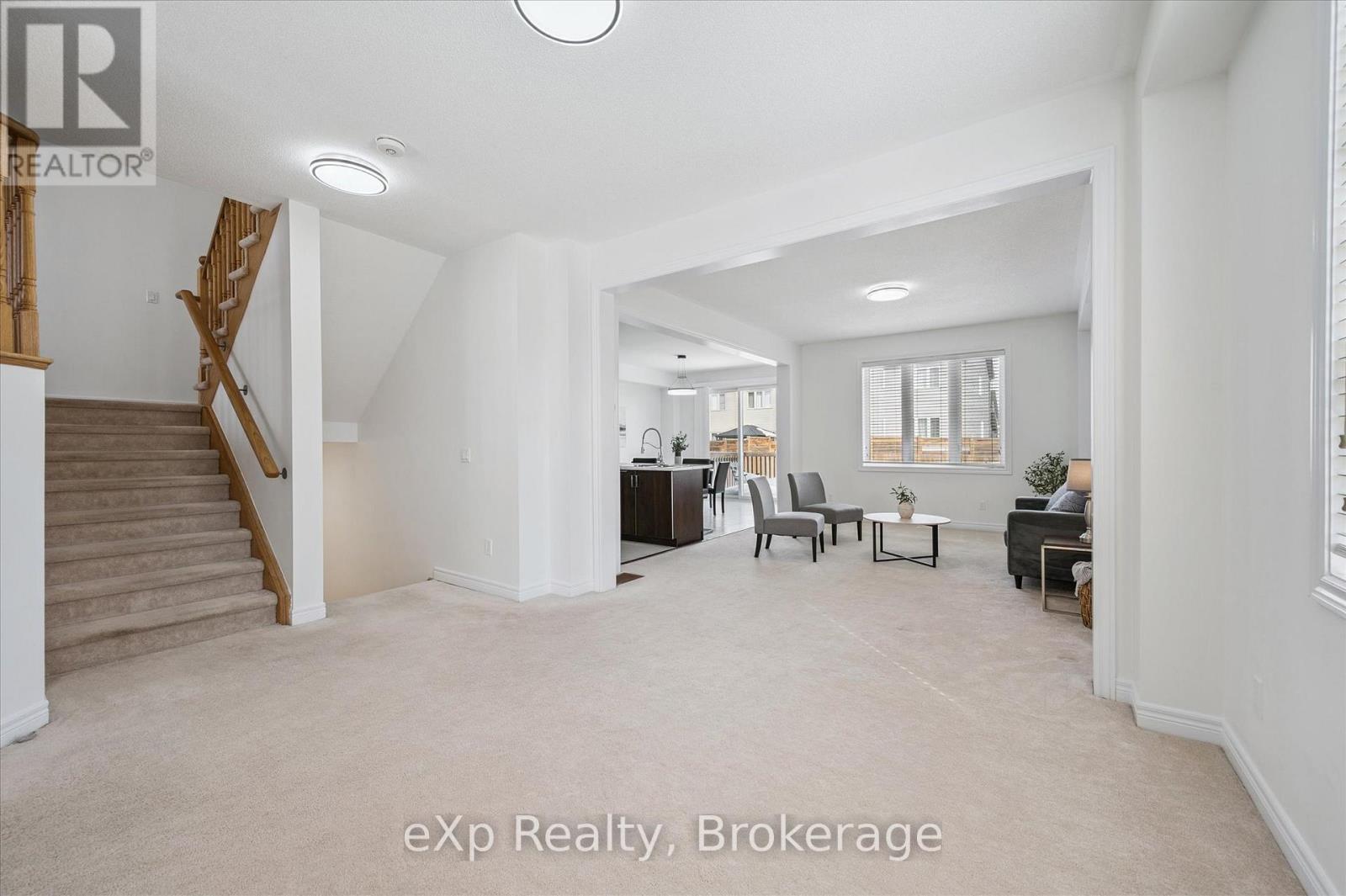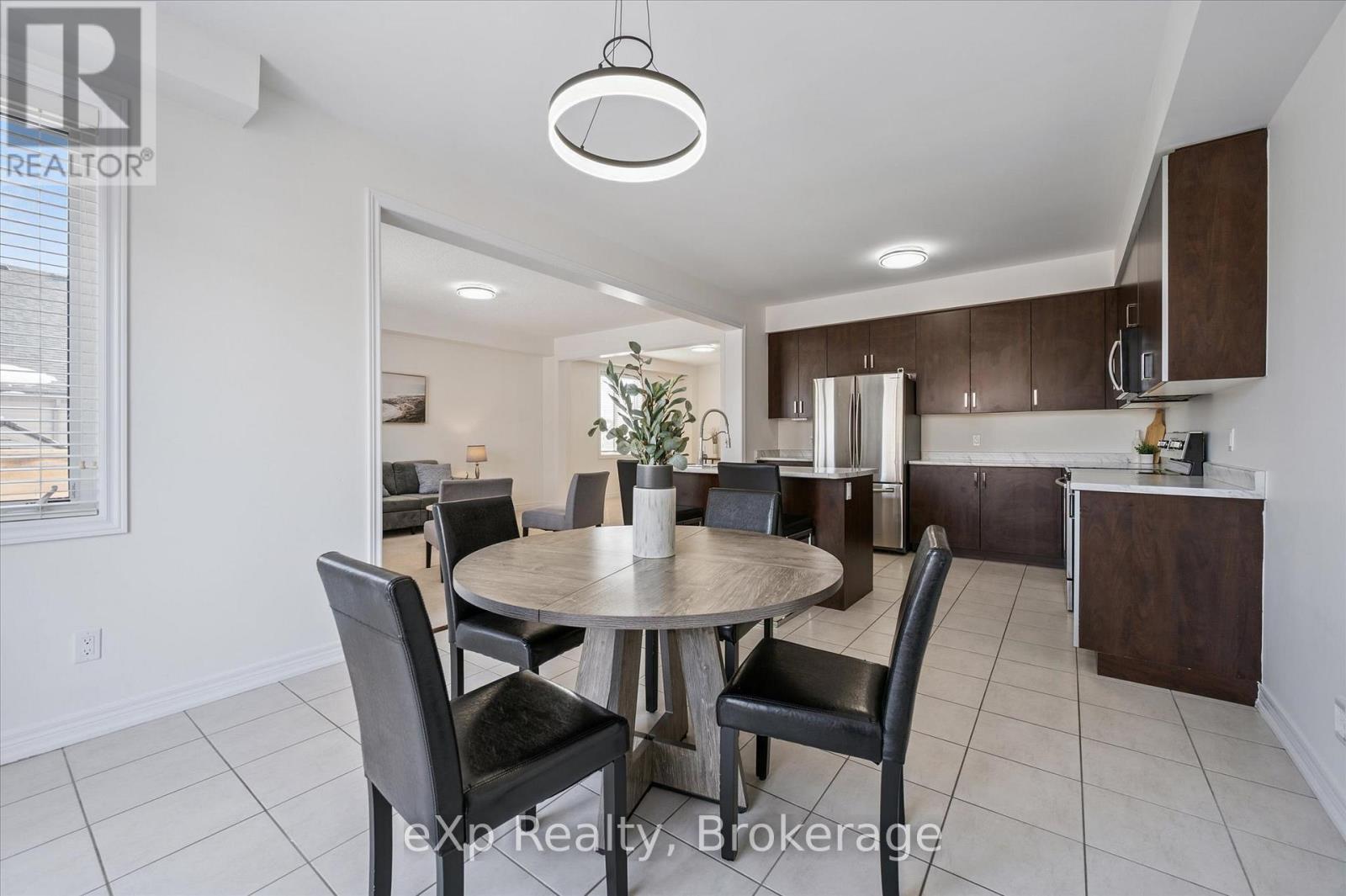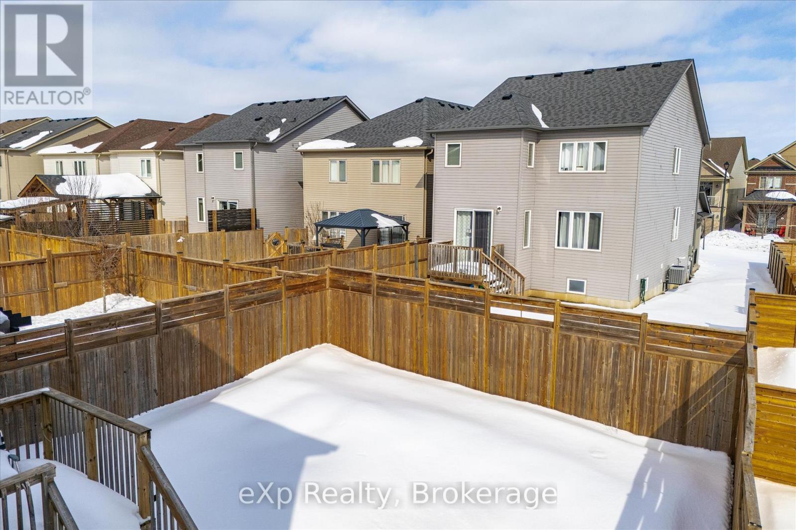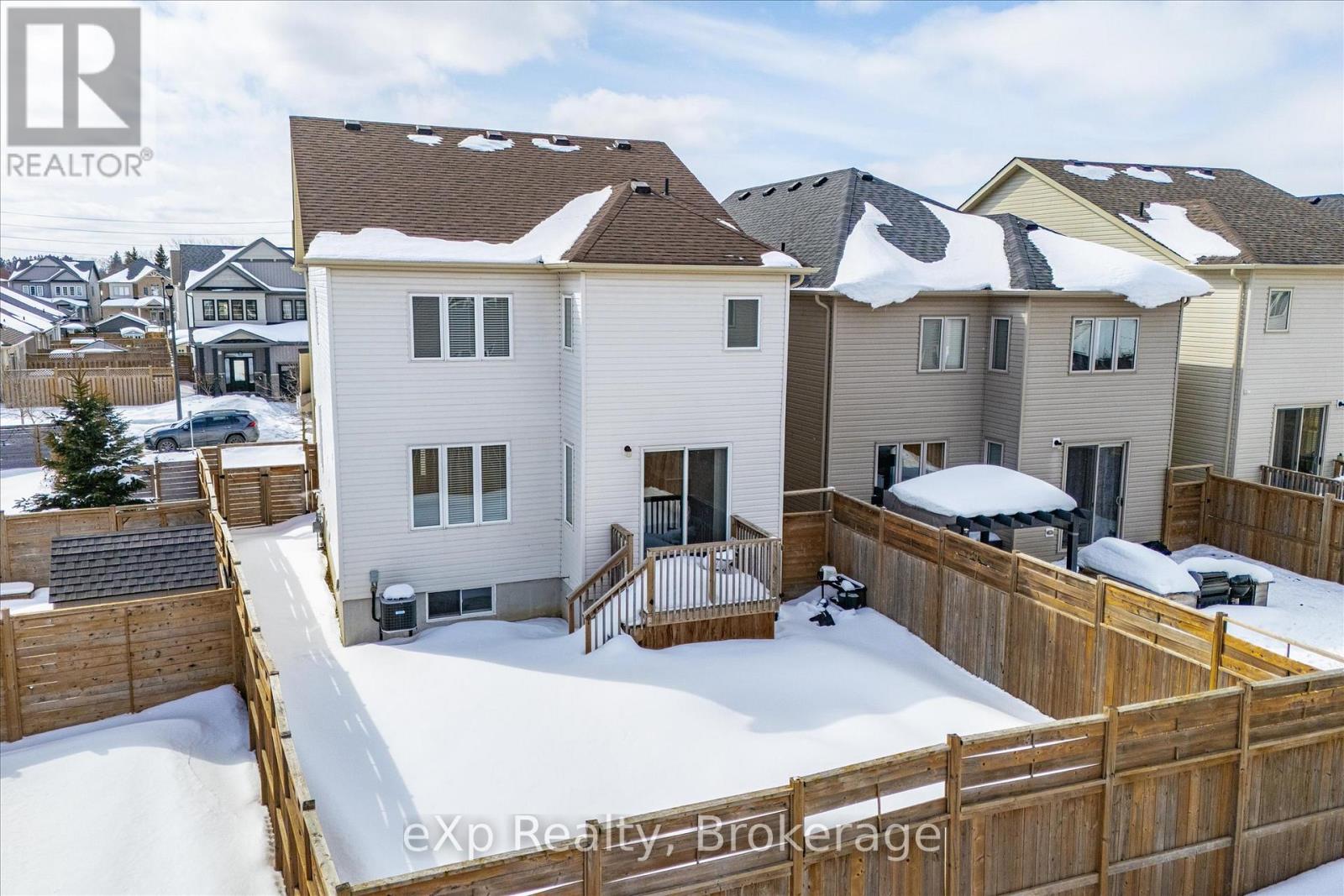 This stunning 2 storey home offers space, style, and practicality in one of Fergus' most desirable neighbourhoods. A bright foyer welcomes you inside, leading to a main floor with 9-foot ceilings, a formal dining room, a separate living area, and a spacious great room perfect for family time or gatherings. The kitchen is open and inviting, with stainless steel appliances, a centre island, custom cabinetry, and a breakfast area that walks out to a private balcony, ideal for morning coffee or quiet evenings. Upstairs, three generous bedrooms include a peaceful primary retreat with a walk-in closet and spa-inspired 5 piece ensuite, while a modern 3 piece bathroom serves the other bedrooms. The fully finished basement adds two more rooms and a full bathroom, offering flexible space for guests, a home office, or hobbies. Outside, a fully fenced yard provides privacy and space for outdoor living. Located just steps from Forfar Park and the scenic Elora Cataract Trailway, and minutes to Groves Memorial Community Hospital, schools, shops, and dining, this home combines comfort, convenience, and lifestyle in a location you will love. (id:51300)