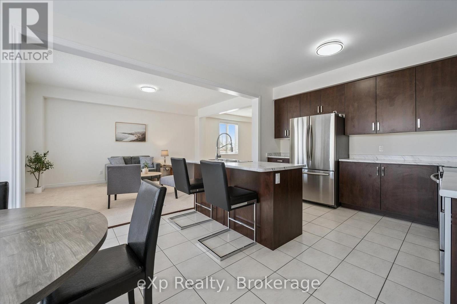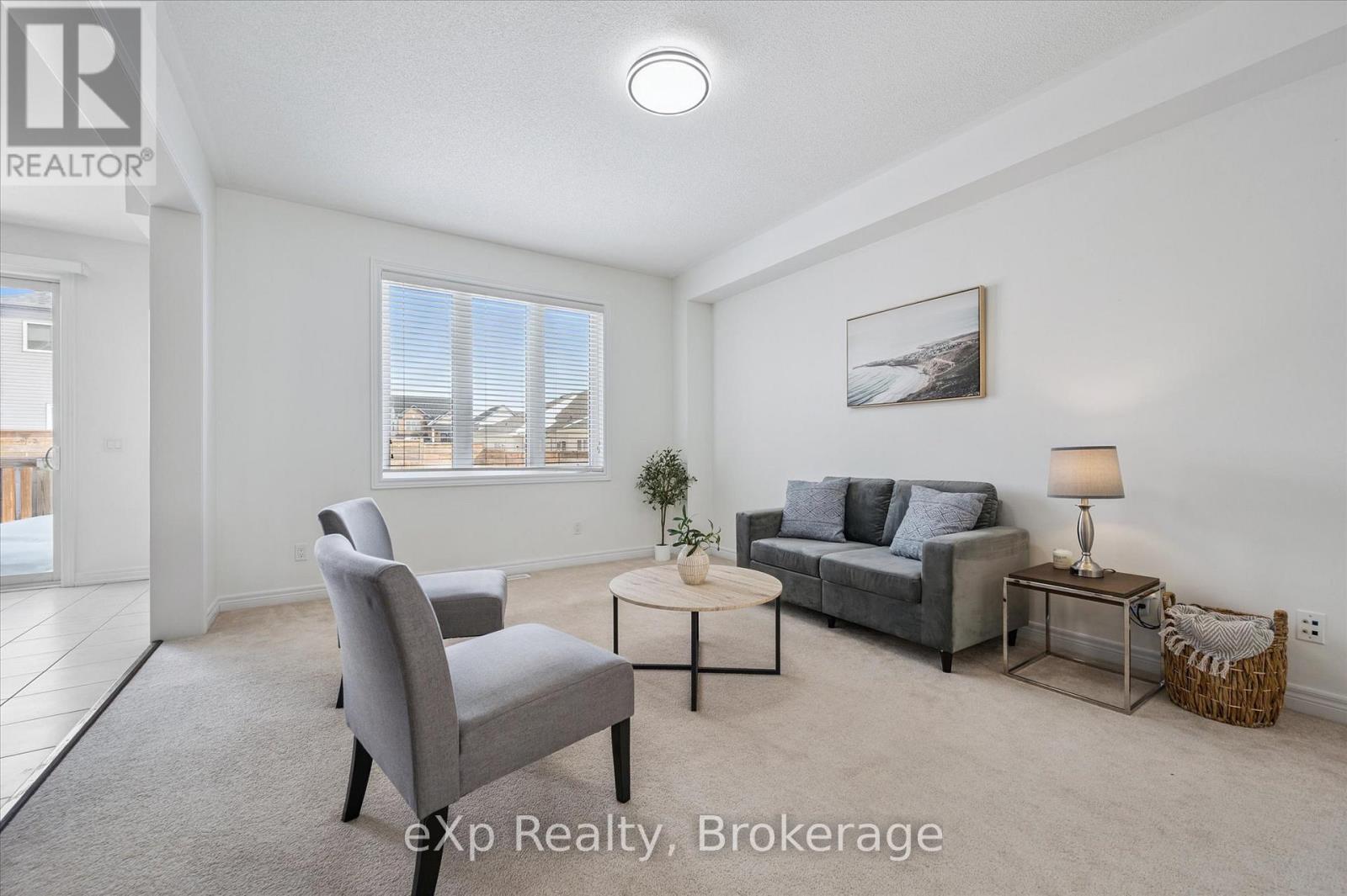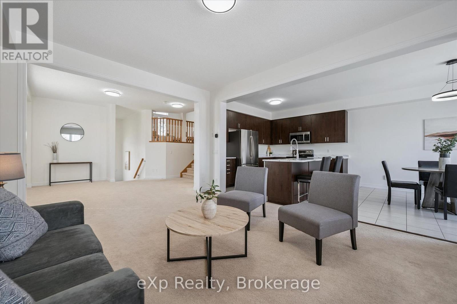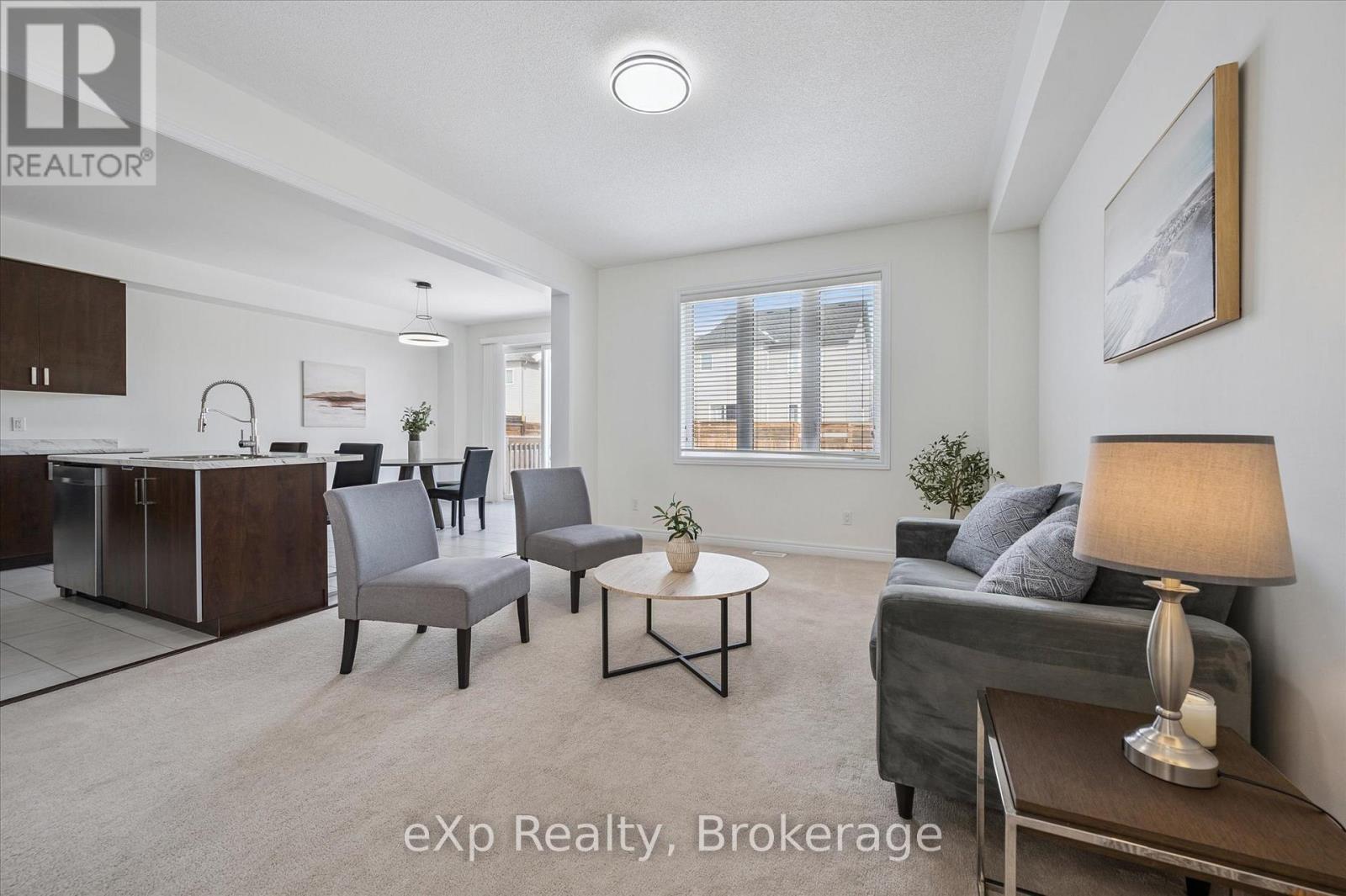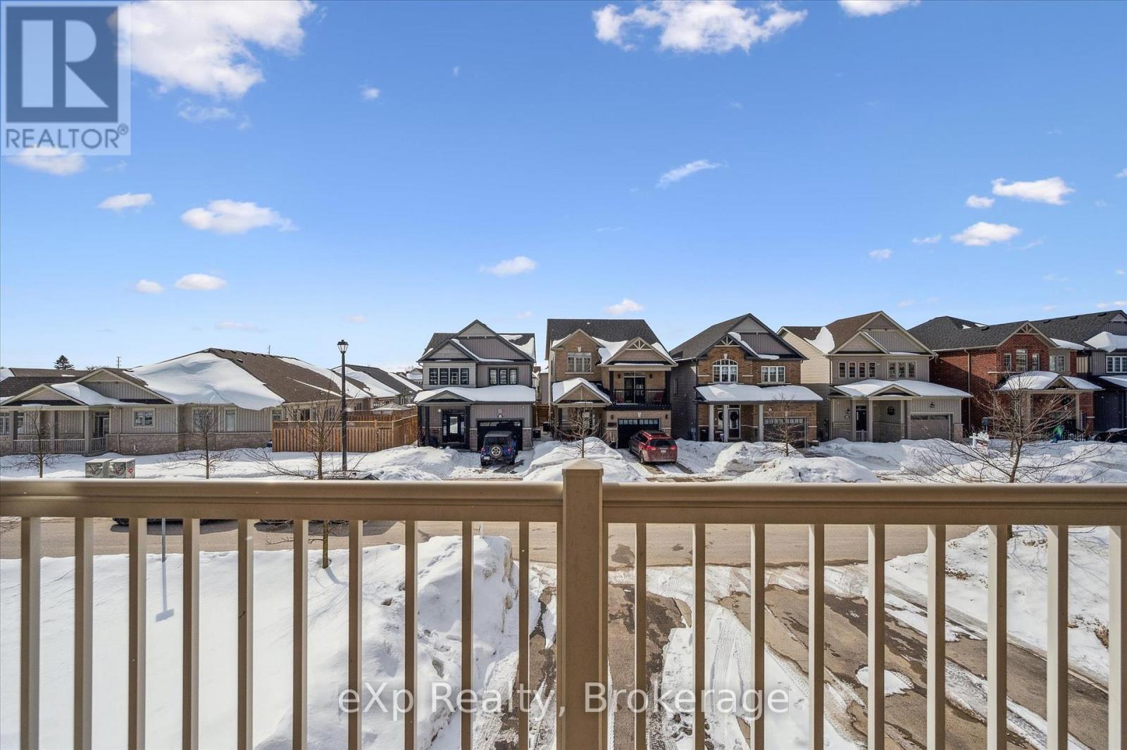 This stunning 2 storey home offers space, style, and practicality in one of Fergus' most desirable neighbourhoods. A bright foyer welcomes you inside, leading to a main floor with 9-foot ceilings, a formal dining room, a separate living area, and a spacious great room perfect for family time or gatherings. The kitchen is open and inviting, with stainless steel appliances, a centre island, custom cabinetry, and a breakfast area that walks out to a private balcony, ideal for morning coffee or quiet evenings. Upstairs, three generous bedrooms include a peaceful primary retreat with a walk-in closet and spa-inspired 5 piece ensuite, while a modern 3 piece bathroom serves the other bedrooms. The fully finished basement adds two more rooms and a full bathroom, offering flexible space for guests, a home office, or hobbies. Outside, a fully fenced yard provides privacy and space for outdoor living. Located just steps from Forfar Park and the scenic Elora Cataract Trailway, and minutes to Groves Memorial Community Hospital, schools, shops, and dining, this home combines comfort, convenience, and lifestyle in a location you will love. (id:51300)