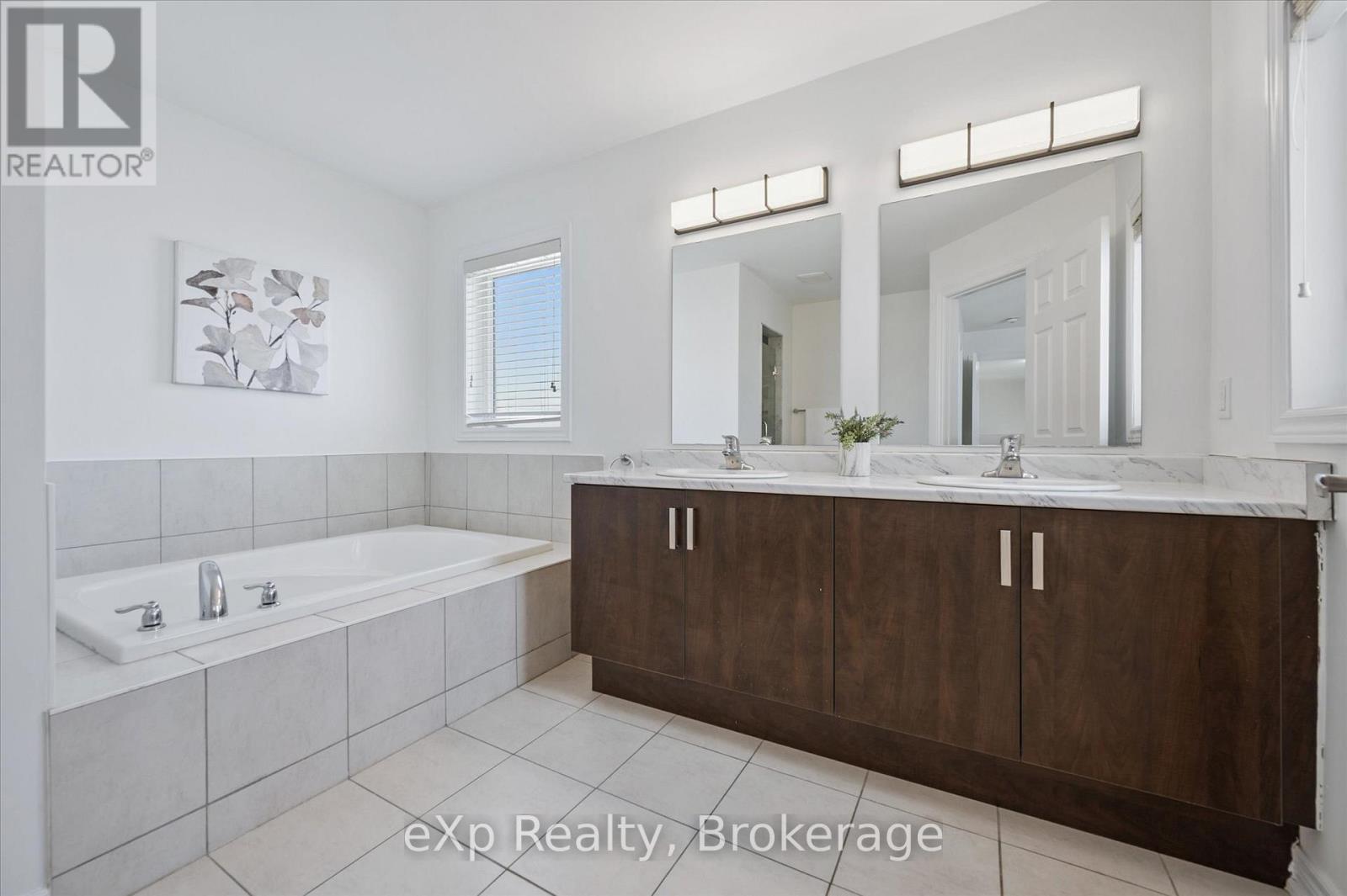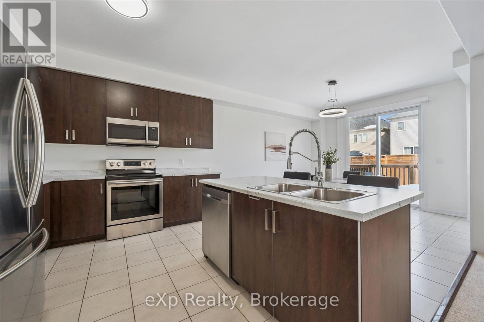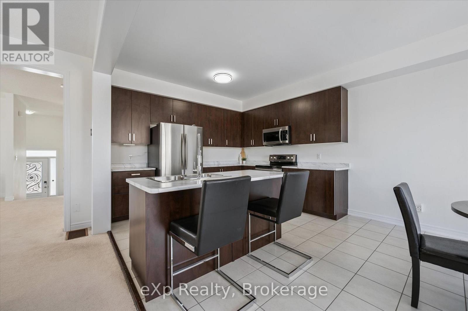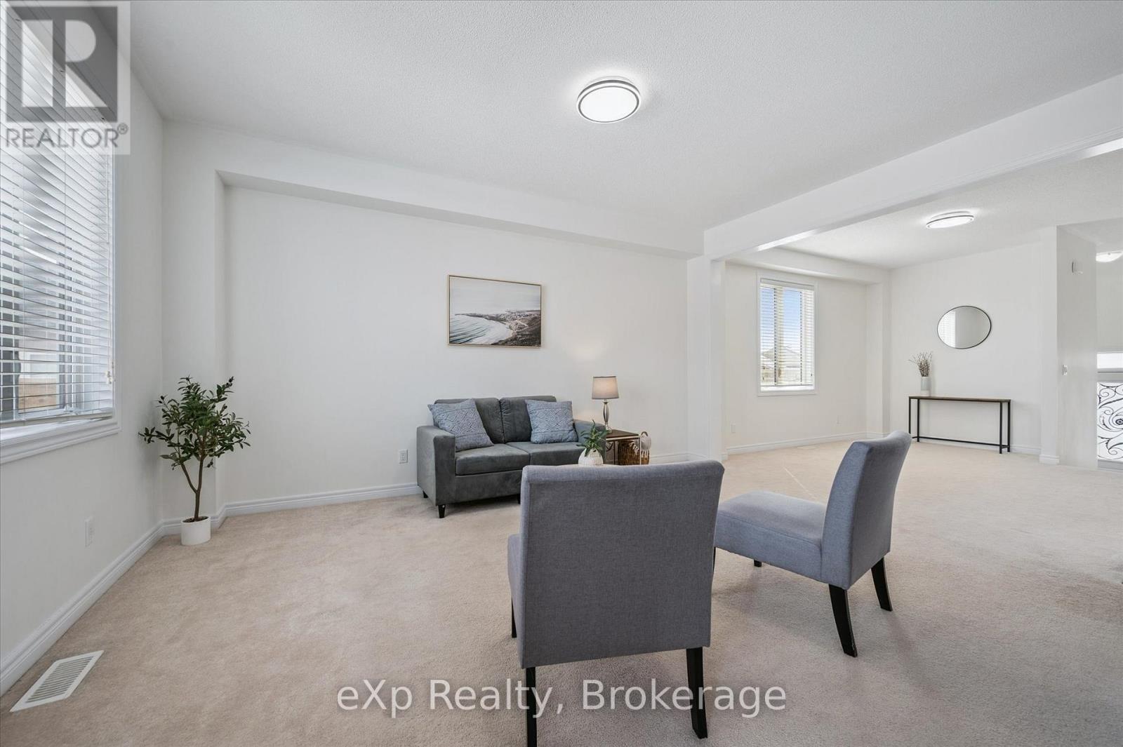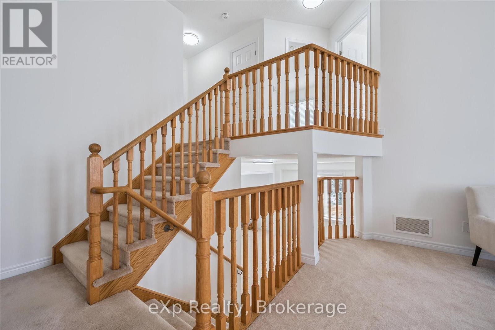 This stunning 2 storey home offers space, style, and practicality in one of Fergus' most desirable neighbourhoods. A bright foyer welcomes you inside, leading to a main floor with 9-foot ceilings, a formal dining room, a separate living area, and a spacious great room perfect for family time or gatherings. The kitchen is open and inviting, with stainless steel appliances, a centre island, custom cabinetry, and a breakfast area that walks out to a private balcony, ideal for morning coffee or quiet evenings. Upstairs, three generous bedrooms include a peaceful primary retreat with a walk-in closet and spa-inspired 5 piece ensuite, while a modern 3 piece bathroom serves the other bedrooms. The fully finished basement adds two more rooms and a full bathroom, offering flexible space for guests, a home office, or hobbies. Outside, a fully fenced yard provides privacy and space for outdoor living. Located just steps from Forfar Park and the scenic Elora Cataract Trailway, and minutes to Groves Memorial Community Hospital, schools, shops, and dining, this home combines comfort, convenience, and lifestyle in a location you will love. (id:51300)
