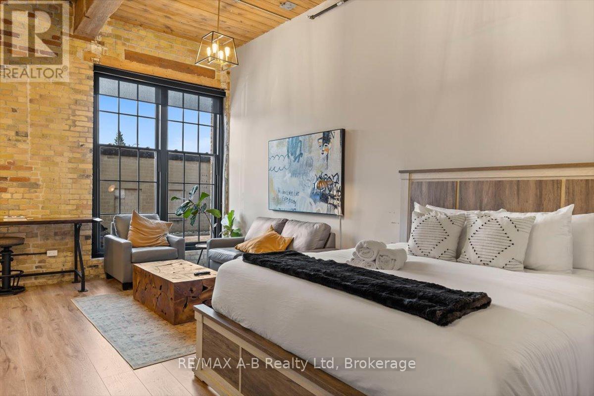 $360 MonthlyExperience urban living at its finest in this charming studio condo located in the historic Bradshaw Loft. With 460 square feet of thoughtfully designed space, this fully furnished and equipped unit is perfect for those seeking a stylish pied à terre or an excellent short term rental investment. Enjoy the character of a heritage building while being just steps away from downtown and the theatre district. Don't miss this unique opportunity to own a piece of history in an unbeatable location! (id:51300)
