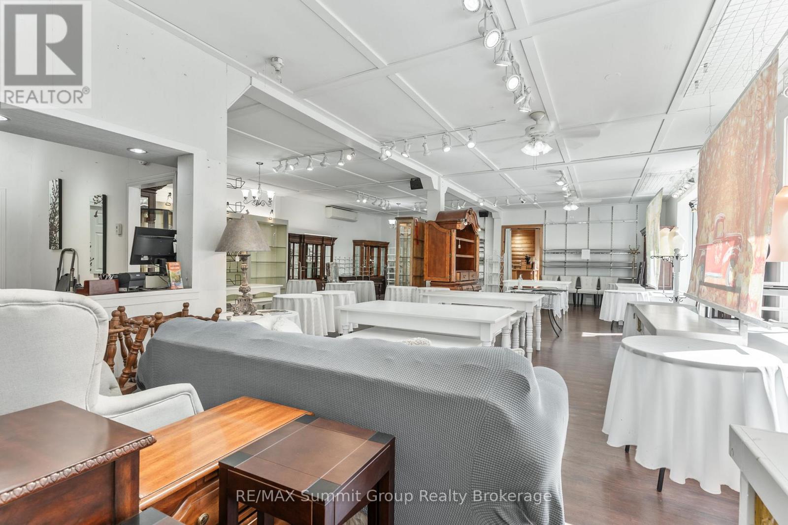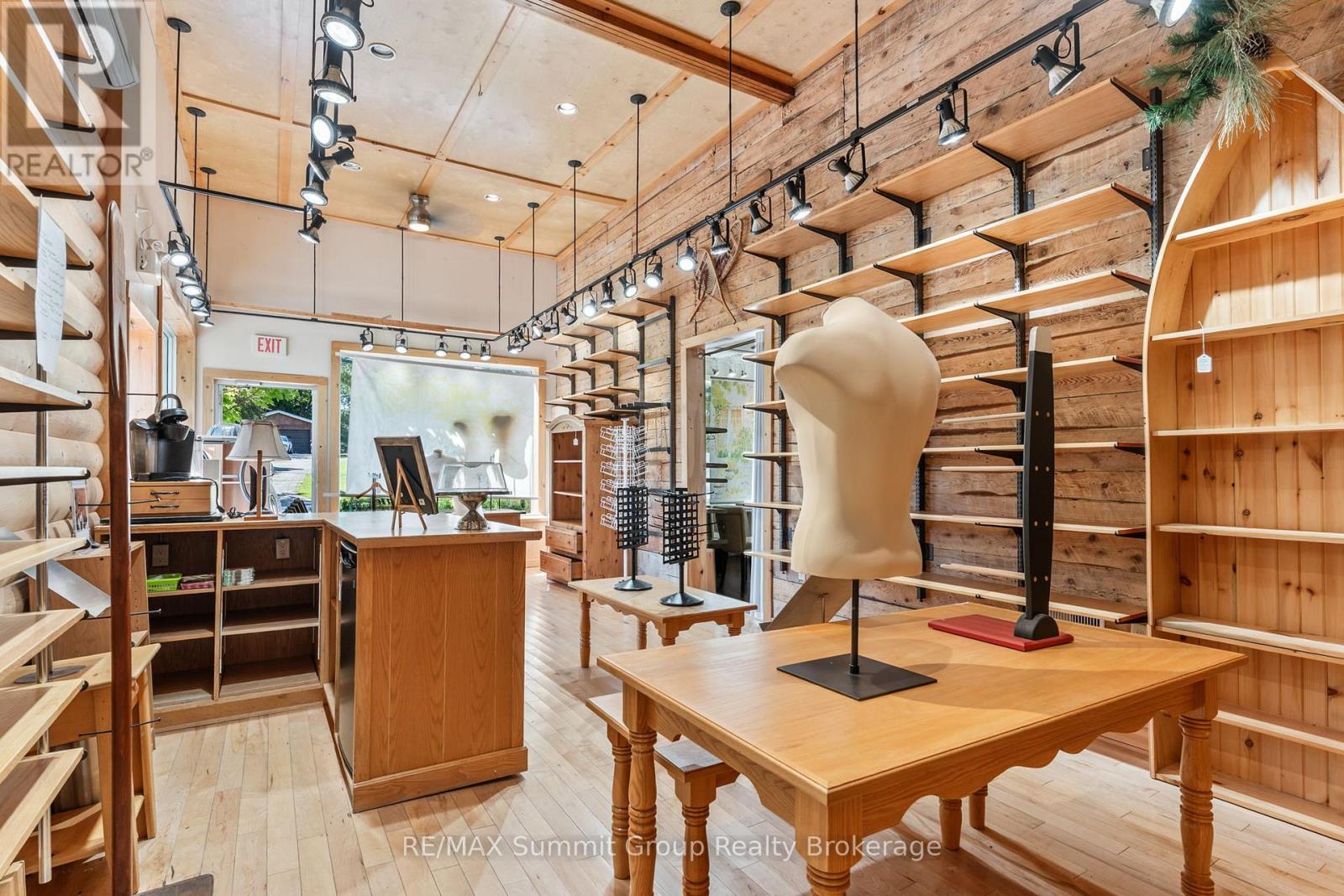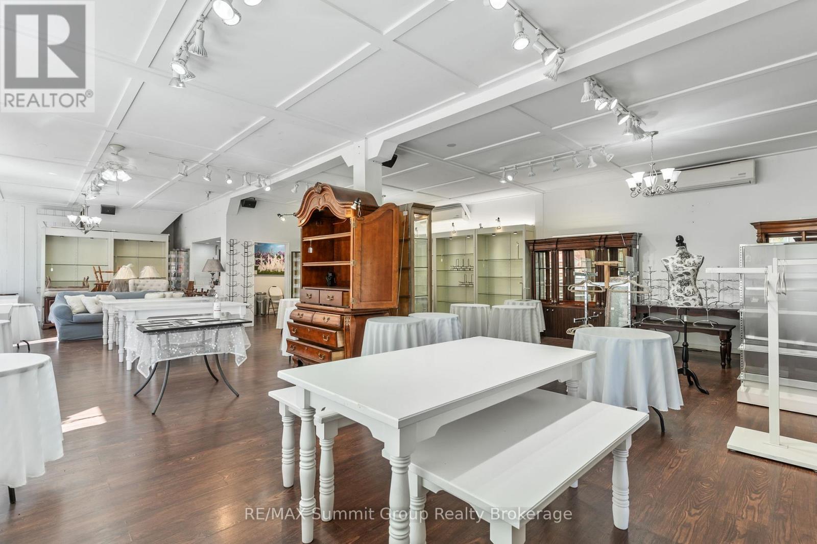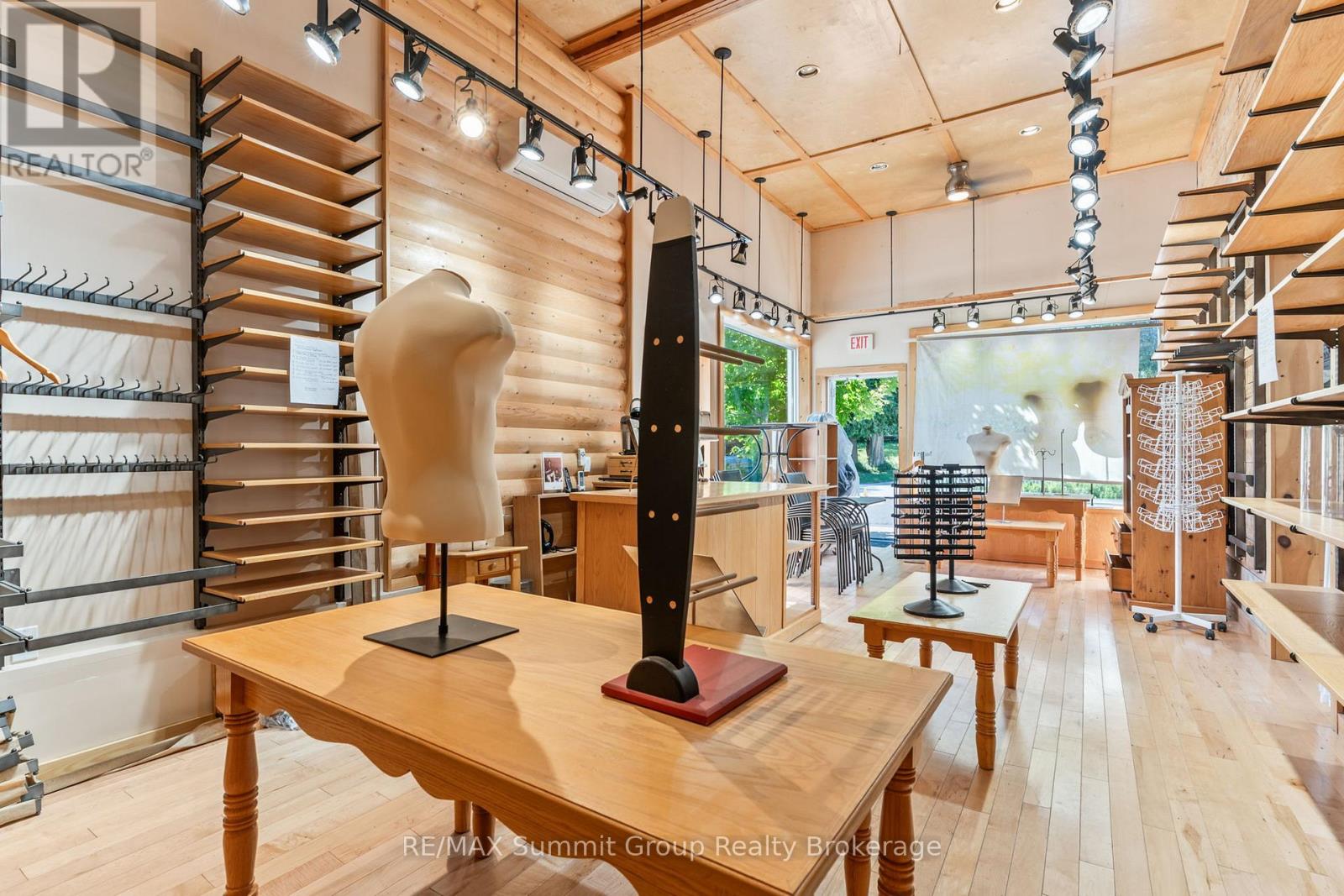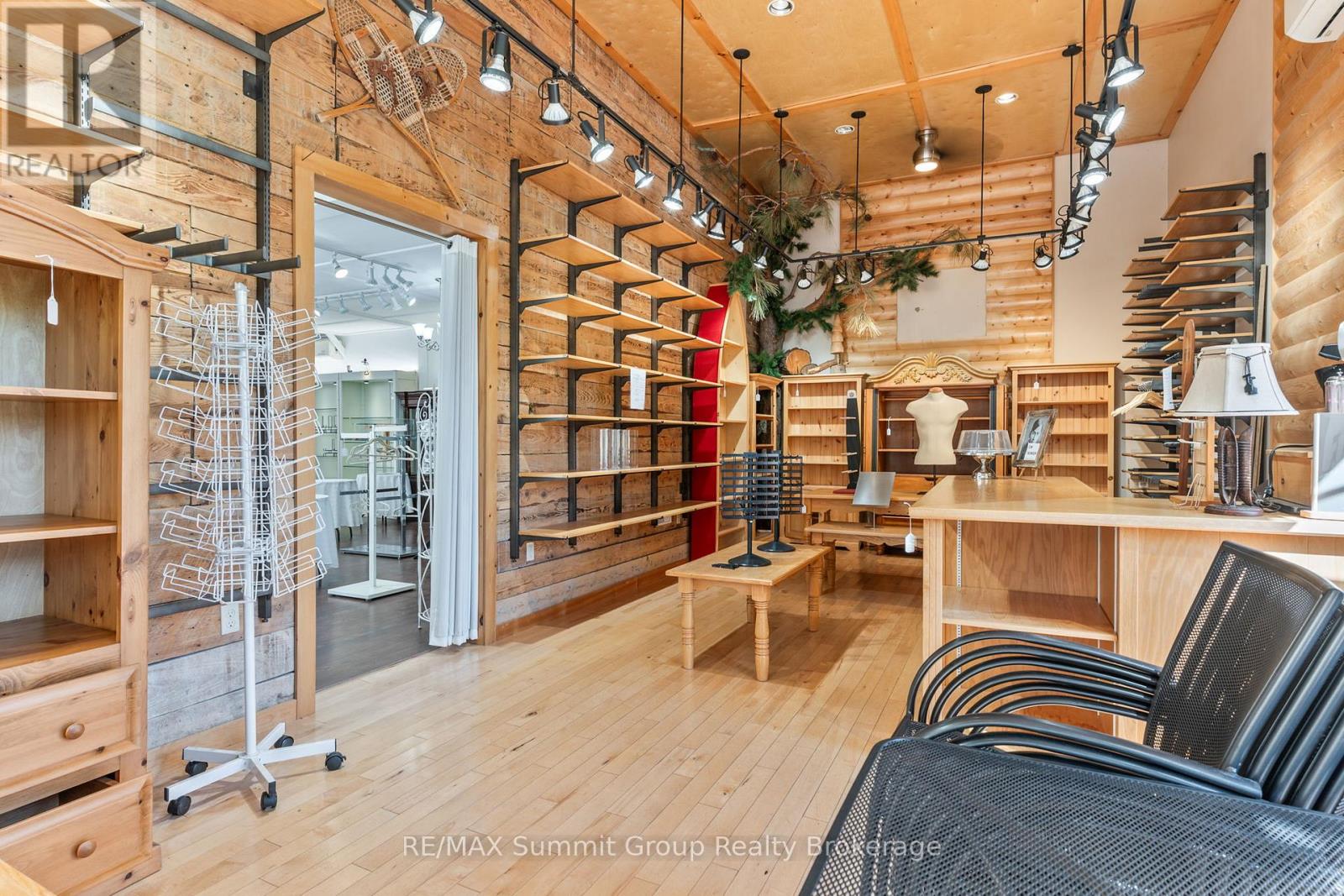 Set in the village of Feversham and backing onto the Beaver River, this light industrial property offers endless opportunities for your business. With large front windows, multiple access doors, a side deck, and ample parking, it's an ideal setup for a business that needs both visibility and functionality. The main part of the showroom has a ceiling height of 9.5 ft, while the section known as "Tippy Canoe" features a clearance of 14 ft. Picture a modern kitchen showroom, stone countertops, maybe a dedicated window and door sales space, a siding or garage door showroom, equipment sales, a building supply center, or possibly a yoga or fitness studio. The light industrial zoning permits a variety of uses, including warehousing and wholesaling, assembly and light manufacturing, open storage, equipment sales, and one residence for security or caretaking purposes. Upstairs, an unfinished loft adds future potential. It could be used for staff space, storage, or even a residential unit to help offset expenses. There is currently no well or septic in place. If you've been looking for a versatile property where you can grow your business and create a space that stands out, this is it. (id:51300)