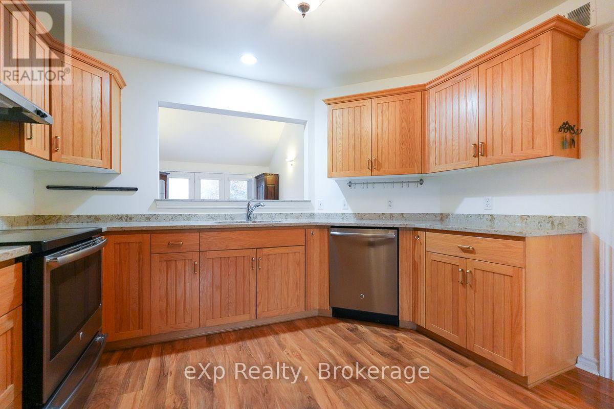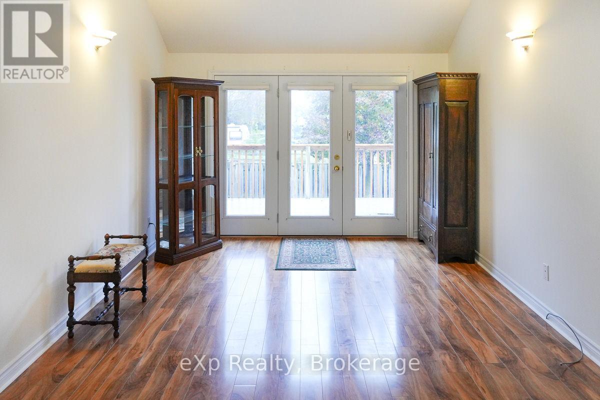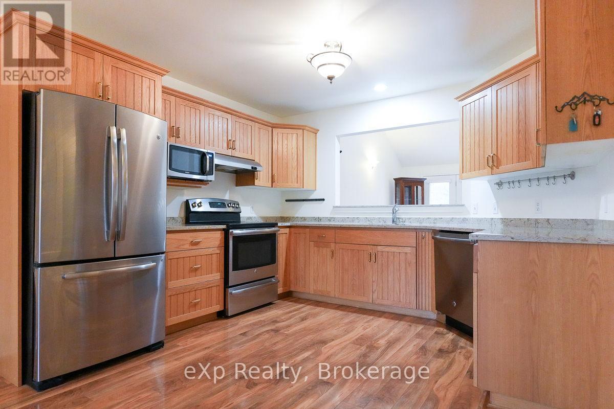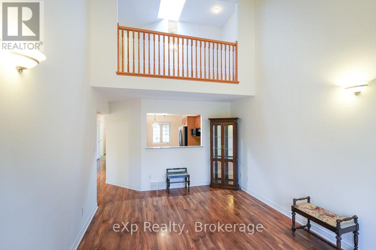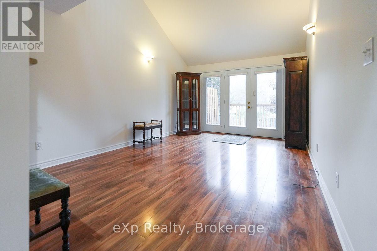 Bright and welcoming, this three-bedroom townhouse condo offers a crisp, timeless palette that's ready to make your own. The main floor features stunning hardwood floors in the open-concept dining area and contemporary kitchen with a walk-in pantry and a convenient pass-through to the spacious living room. A soaring cathedral ceiling and French doors to the deck create an airy, comfortable space for everyday living and entertaining. A generous bedroom, four-piece bath, and main-floor laundry complete this level. Upstairs, the loft is a private retreat with a large primary bedroom, walk-in closet, and five-piece ensuite. The open hallway overlooks the living room, adding to the home's sense of light and openness.The basement extends the living space with a recreation room, third bedroom, and three-piece bath - a restful area perfect for guests or a quiet workspace.Set within a well-kept condo community, this home offers a relaxed, low-maintenance lifestyle in the friendly rural town of Mount Forest, close to shopping, services, and everyday conveniences - and easy drives to Shelbourne, Hanover, and Fergus. (id:51300)