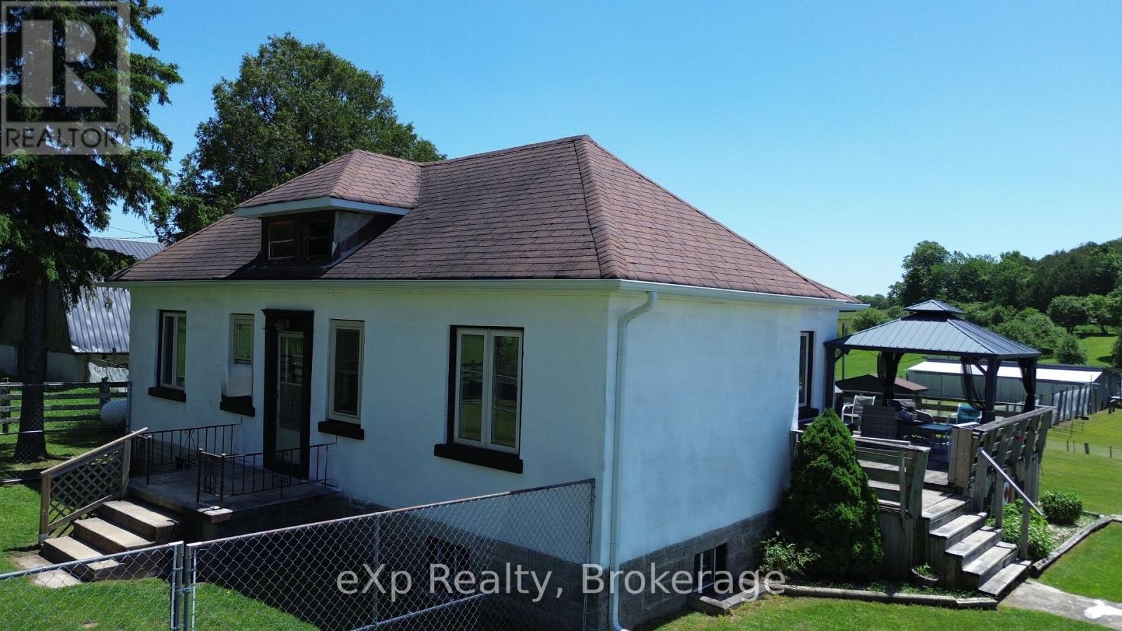 Tired of your livelihood being in someone else's hands? Welcome to this charming home with a turn-key dog boarding facility, barn with 5 box stalls, tack room, hay storage and a small drive shed, all nestled on over 6 acres of picturesque land including a once registered apple orchard. The orchard walking trail is located behind the fenced-in yard at the house, go through the wooden gate and the orchard goes straight back to concession 6. Zoned specifically to operate a kennel, there is a 15-kennel (ample room to expand and add more kennels) dog boarding facility with a fenced-in run, previously operated as the highly regarded Day Away Pets for 17 successful years, with over 120 loyal clients. The present average rate at comparable facilities is approximately $40/day and the Sellers at the time of operating their facility were mostly at full capacity 7 days a week. The Sellers will happily spread the word to their former clients to assist in the launching of your business (their phone is still ringing with requests). The home itself exudes charm and warmth, with 3 bedrooms and 2 full bathrooms, a sun-filled country kitchen with views overlooking your pastures and a finished lower level with a walkout, providing even more living space. The rustic design and original features of this wartime home have been lovingly maintained, while the updated conveniences offer the best of both worlds. For animal lovers, the property offers an ideal home for your horses, livestock, and other small farm animals. Whether you're enjoying a morning coffee on the wrap around deck, tending to your animals, or simply walking through your own private paradise surrounded by apple trees, the possibilities are endless. Also perfectly suited for a Sniff Spot (google Sniff Spot) location to generate a more passive income . Just minutes from Markdale's many amenities, the new hospital, schools, hiking trails, rivers and lakes. Furnace -2022, Roof-2013, Septic Inspected & Pumped -2024 (id:51300)