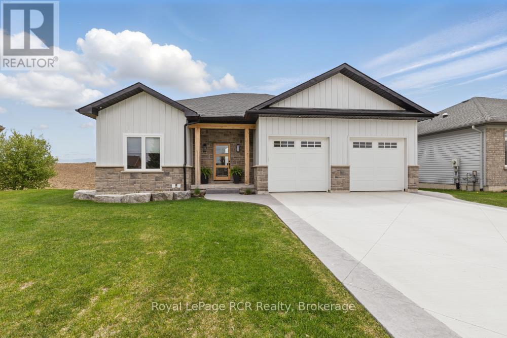 This less-than-1-year-old bungalow in Mildmay offers a perfect blend of comfort and quality. With 2 bedrooms on the main floor and 2 more downstairs, there's space for the whole family or visiting guests. The primary suite features its own full ensuite, and there's another full bath on each level. The open-concept main living area with its vaulted ceilings is filled with natural light and finished with quality touches throughout. Step outside from the dining area onto a back deck that overlooks peaceful farmers' fields, or enjoy the walkout basement leading to a lower patio - ideal for quiet mornings or evening get-togethers. The attached 2-car garage adds everyday convenience, and with Bruce Power just 40 minutes away, this home is a great fit for commuters looking to enjoy small-town living. (id:51300)
