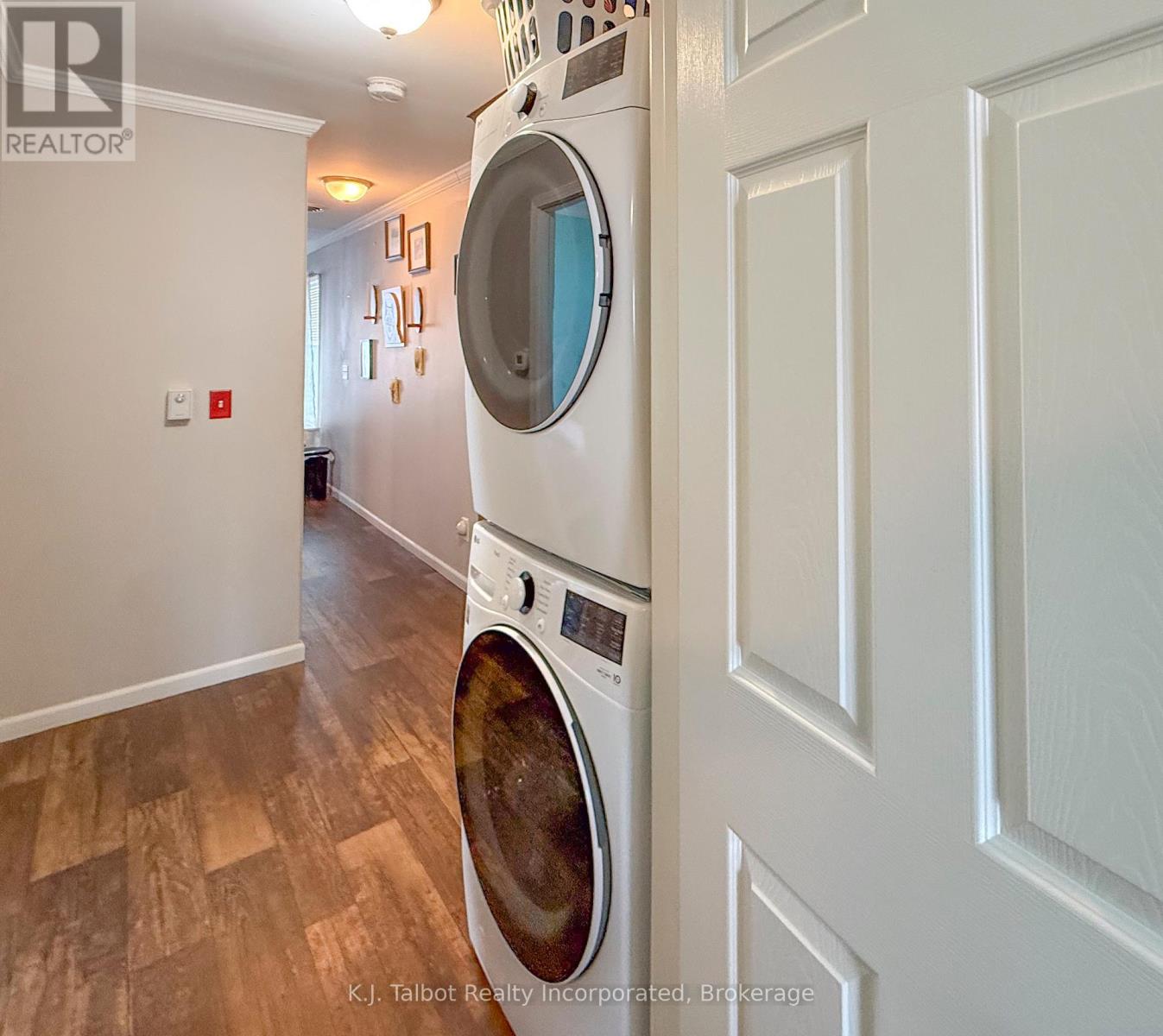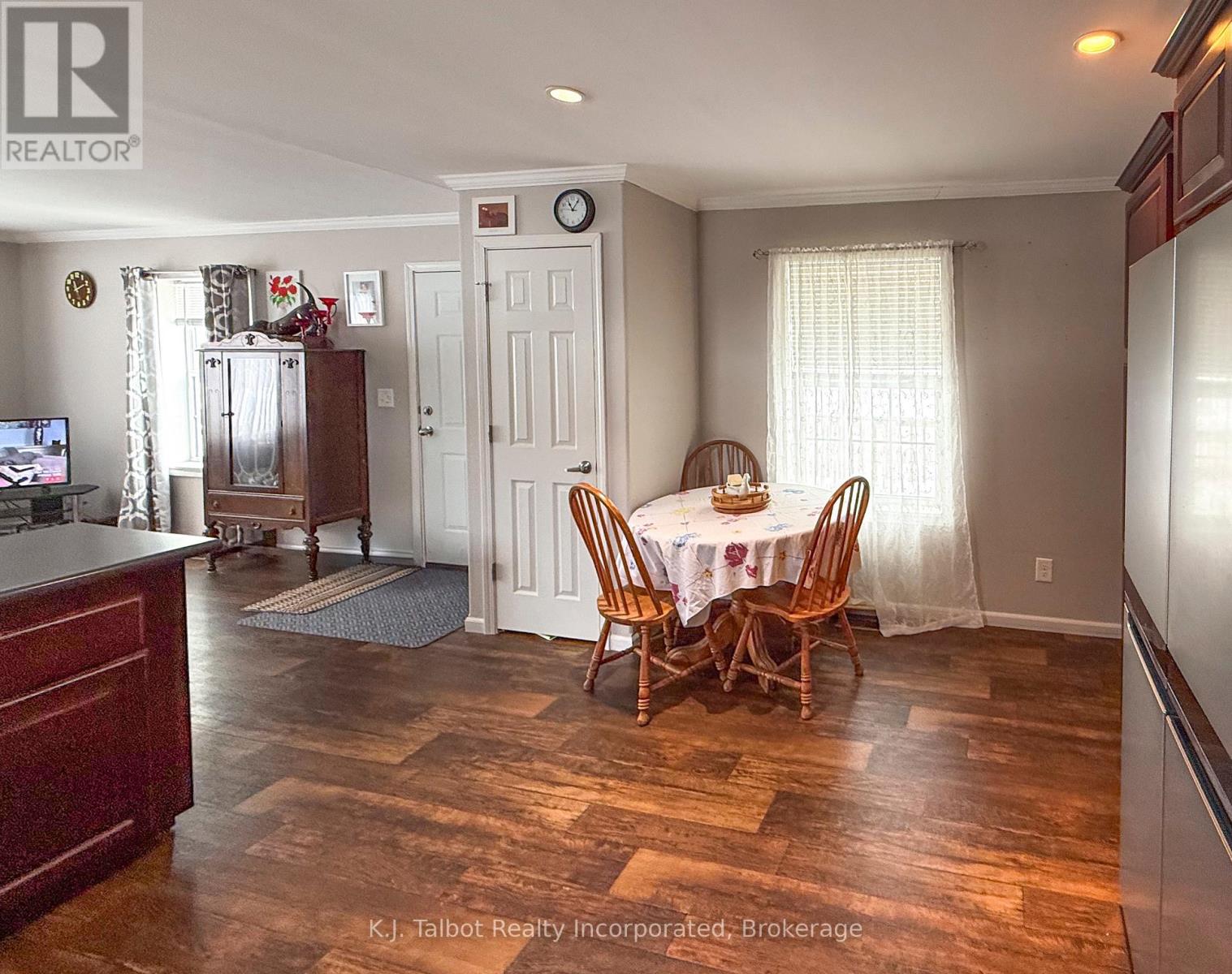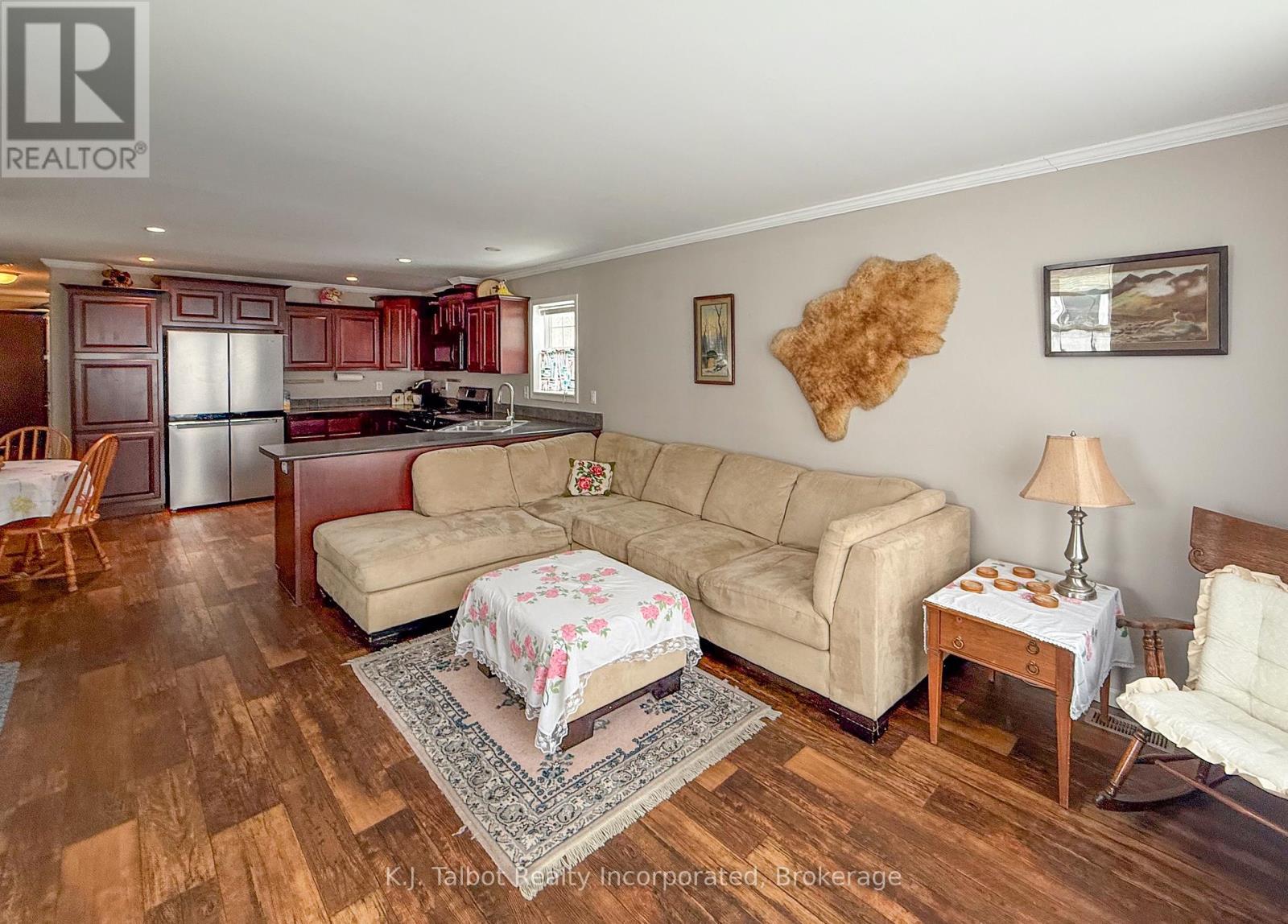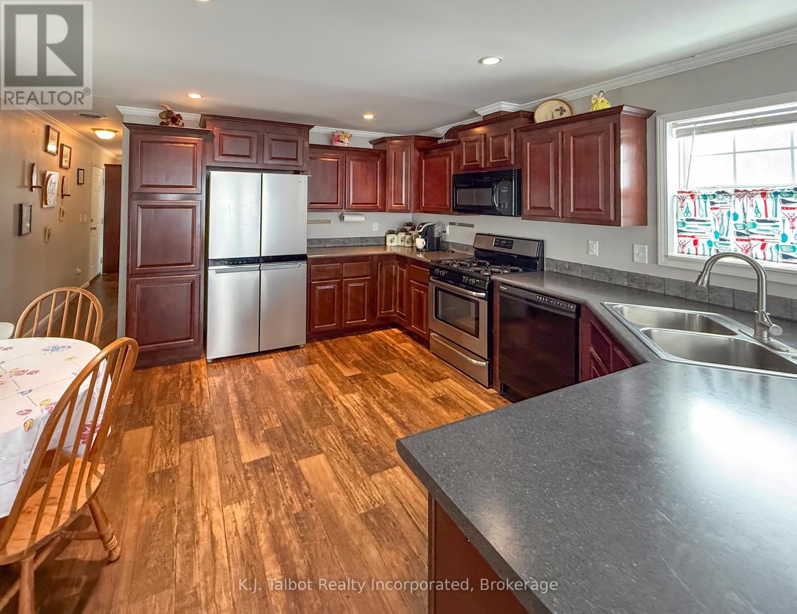 This modular home offers a comfortable and affordable lifestyle along the shores of Lake Huron. Situated on leased land within the established community of Huron Haven Village, it is conveniently located just minutes north of Goderich and close to amenities such as golfing, fishing, trails, shopping, and the local hospital and medical centre. The home features an updated eat-in kitchen with beautiful wood cabinetry, a bright and spacious living room, a three-piece bathroom with a seated shower, a laundry area, and two bedrooms. This is a well-maintained home on a concrete slab featuring propane forced-air heat and air conditioning. The Outside, you will find a large covered deck and a shed that can be utilized as a workshop. The property is also just a short walk from the community center and outdoor pool. The current monthly fee is $880.41 which covers the land lease, taxes, water, and sewer. If you are looking for a comfortable and enjoyable living experience, this could be the perfect home for you. (id:51300)