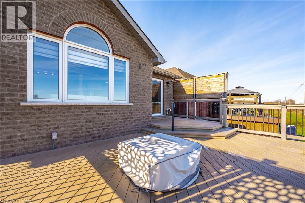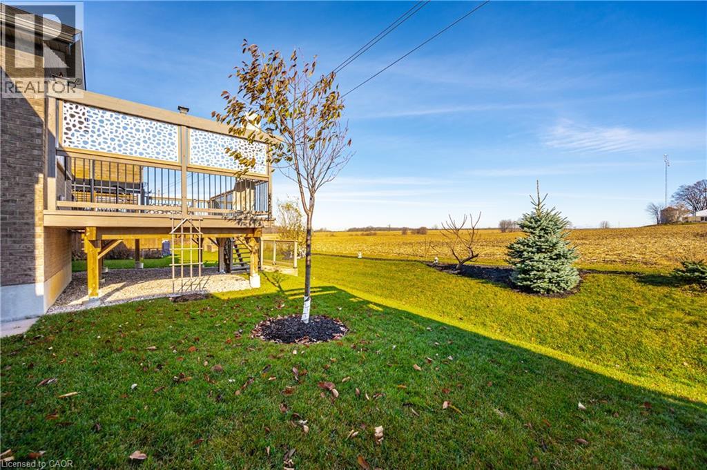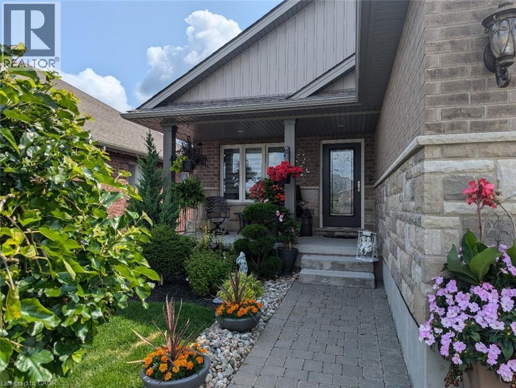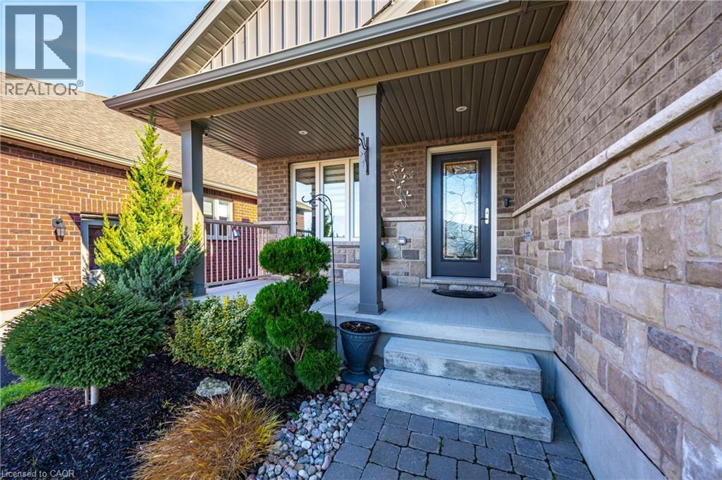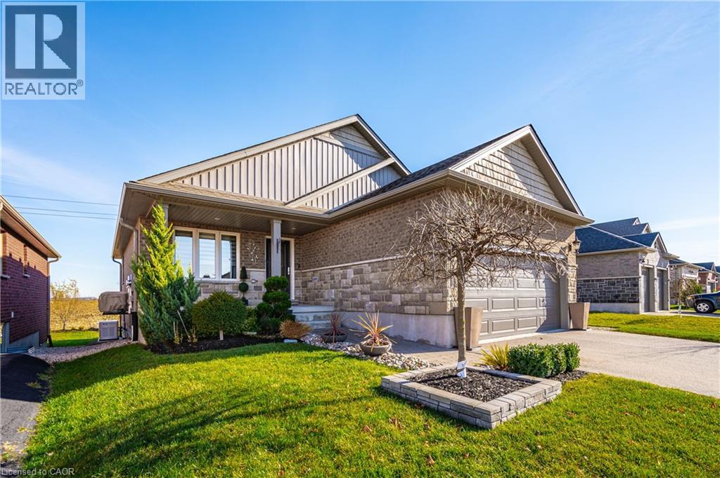 Welcome home to this stunning, energy-efficient 3-bedroom bungalow—ready for you to move in and start living your dream! Imagine stepping onto the inviting covered front porch, then entering through a custom full-length glass door into a bright, open-concept living area with vaulted ceilings, an electric fireplace, and rich hardwood floors. The kitchen is a chef’s delight, featuring granite countertops, a peninsula with a breakfast bar, a double stainless-steel sink, upgraded appliances, and soft-close cabinets. Thoughtful touches like lazy Susans and banquet drawers elevate functionality. The living space flows seamlessly to a large 2-tiered deck with breathtaking views of the countryside. It's perfect for entertaining, complete with a BBQ gas hookup and fire table—ideal for memorable evenings with loved ones. The primary suite offers luxury and comfort, with a walk-in closet featuring a custom organizer and a chic 3-piece ensuite with a walk-in glass shower, quartz vanity, and comfort-height toilet. Two additional bedrooms boast double closets with organizers, while the main 4-piece bathroom invites relaxation with its deep soaker tub. Practicality meets style in the well-equipped laundry room, offering high-efficiency appliances, a sink, countertop, storage cabinets, and garage access. Downstairs, the lookout basement expands your living space, with a generous rec room, office, 2-piece bath, and plenty of storage. This Energy Star Certified home is 20% more efficient, thanks to advanced insulation, a high-efficiency gas furnace, an HRV/ERV system, and UV-C air treatment. To top it off, a robust 22kW whole-home generator ensures you're never without power during outages. Conveniently found in a charming town with all amenities, and just 15 minutes from Listowel, this home is the perfect combination of comfort, style, and practicality. (id:51300)