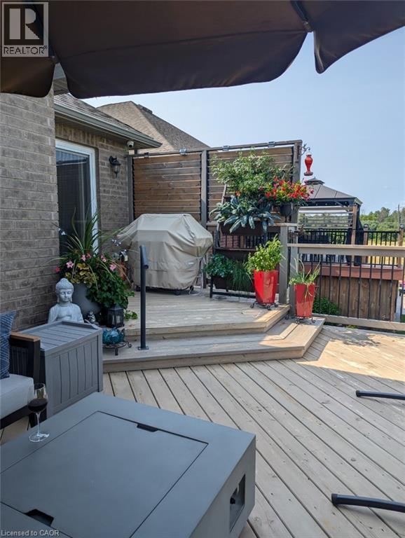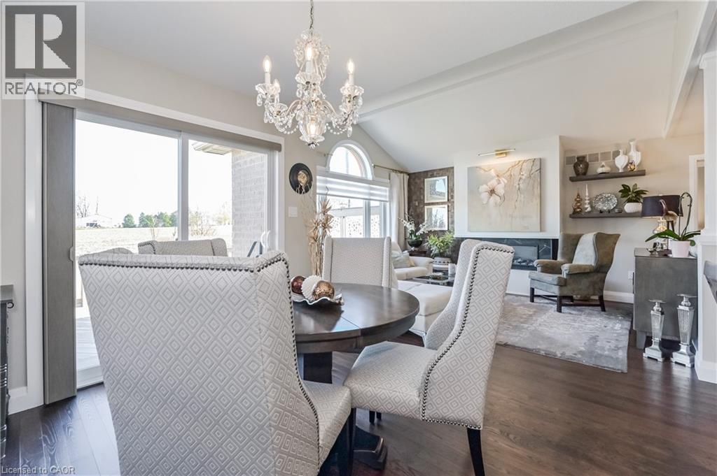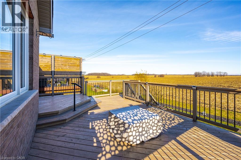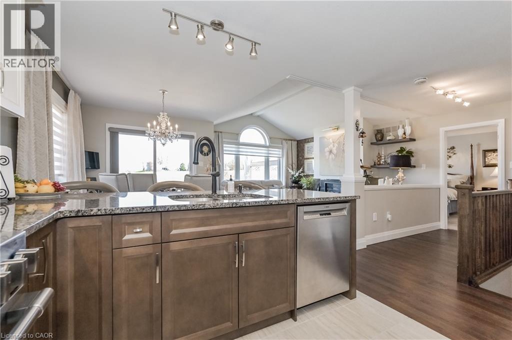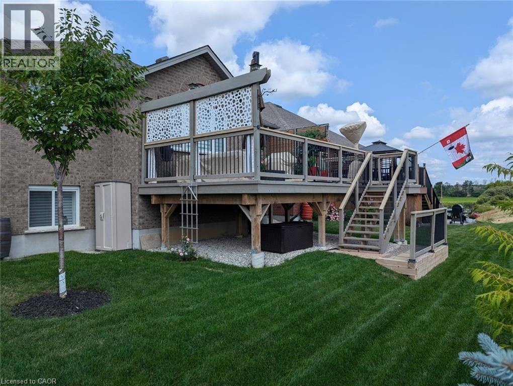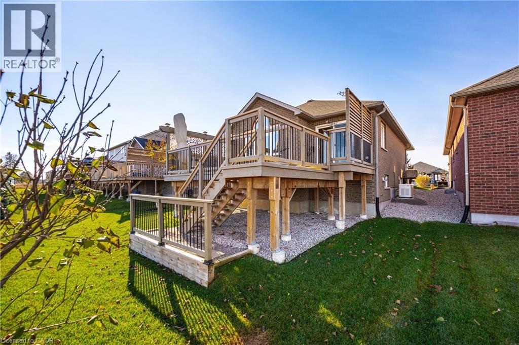 Welcome home to this stunning, energy-efficient 3-bedroom bungalow—ready for you to move in and start living your dream! Imagine stepping onto the inviting covered front porch, then entering through a custom full-length glass door into a bright, open-concept living area with vaulted ceilings, an electric fireplace, and rich hardwood floors. The kitchen is a chef’s delight, featuring granite countertops, a peninsula with a breakfast bar, a double stainless-steel sink, upgraded appliances, and soft-close cabinets. Thoughtful touches like lazy Susans and banquet drawers elevate functionality. The living space flows seamlessly to a large 2-tiered deck with breathtaking views of the countryside. It's perfect for entertaining, complete with a BBQ gas hookup and fire table—ideal for memorable evenings with loved ones. The primary suite offers luxury and comfort, with a walk-in closet featuring a custom organizer and a chic 3-piece ensuite with a walk-in glass shower, quartz vanity, and comfort-height toilet. Two additional bedrooms boast double closets with organizers, while the main 4-piece bathroom invites relaxation with its deep soaker tub. Practicality meets style in the well-equipped laundry room, offering high-efficiency appliances, a sink, countertop, storage cabinets, and garage access. Downstairs, the lookout basement expands your living space, with a generous rec room, office, 2-piece bath, and plenty of storage. This Energy Star Certified home is 20% more efficient, thanks to advanced insulation, a high-efficiency gas furnace, an HRV/ERV system, and UV-C air treatment. To top it off, a robust 22kW whole-home generator ensures you're never without power during outages. Conveniently found in a charming town with all amenities, and just 15 minutes from Listowel, this home is the perfect combination of comfort, style, and practicality. (id:51300)
