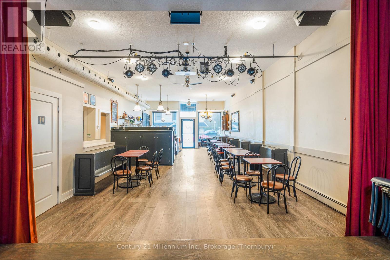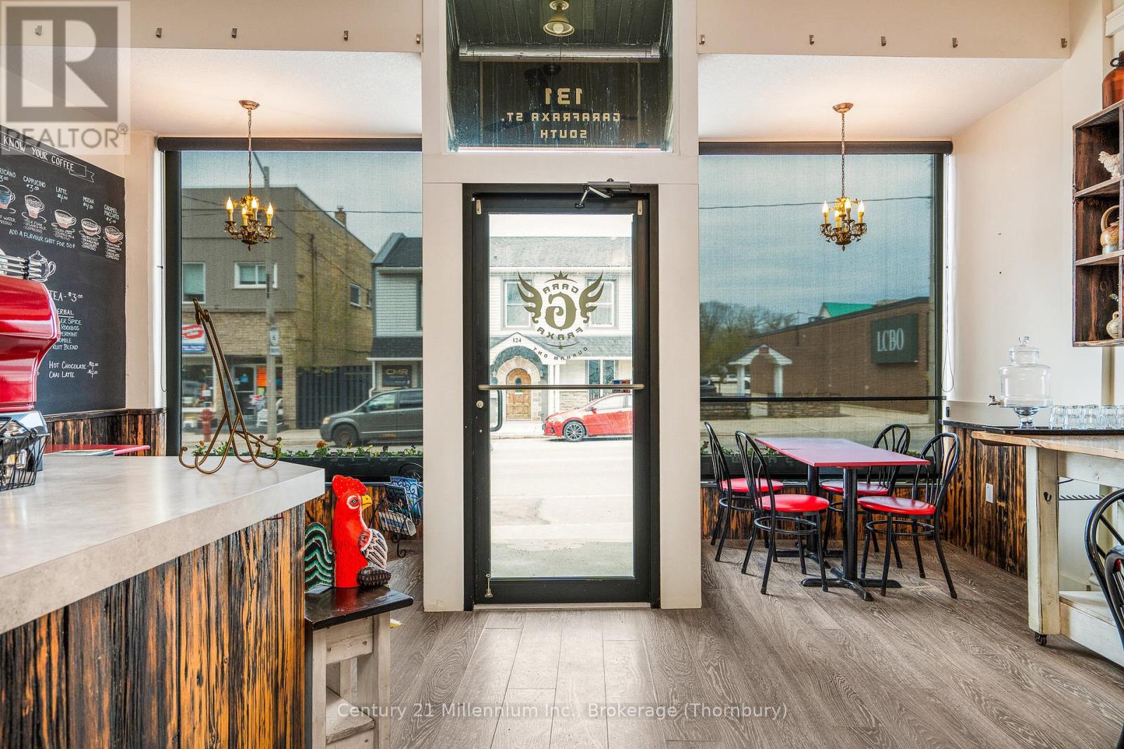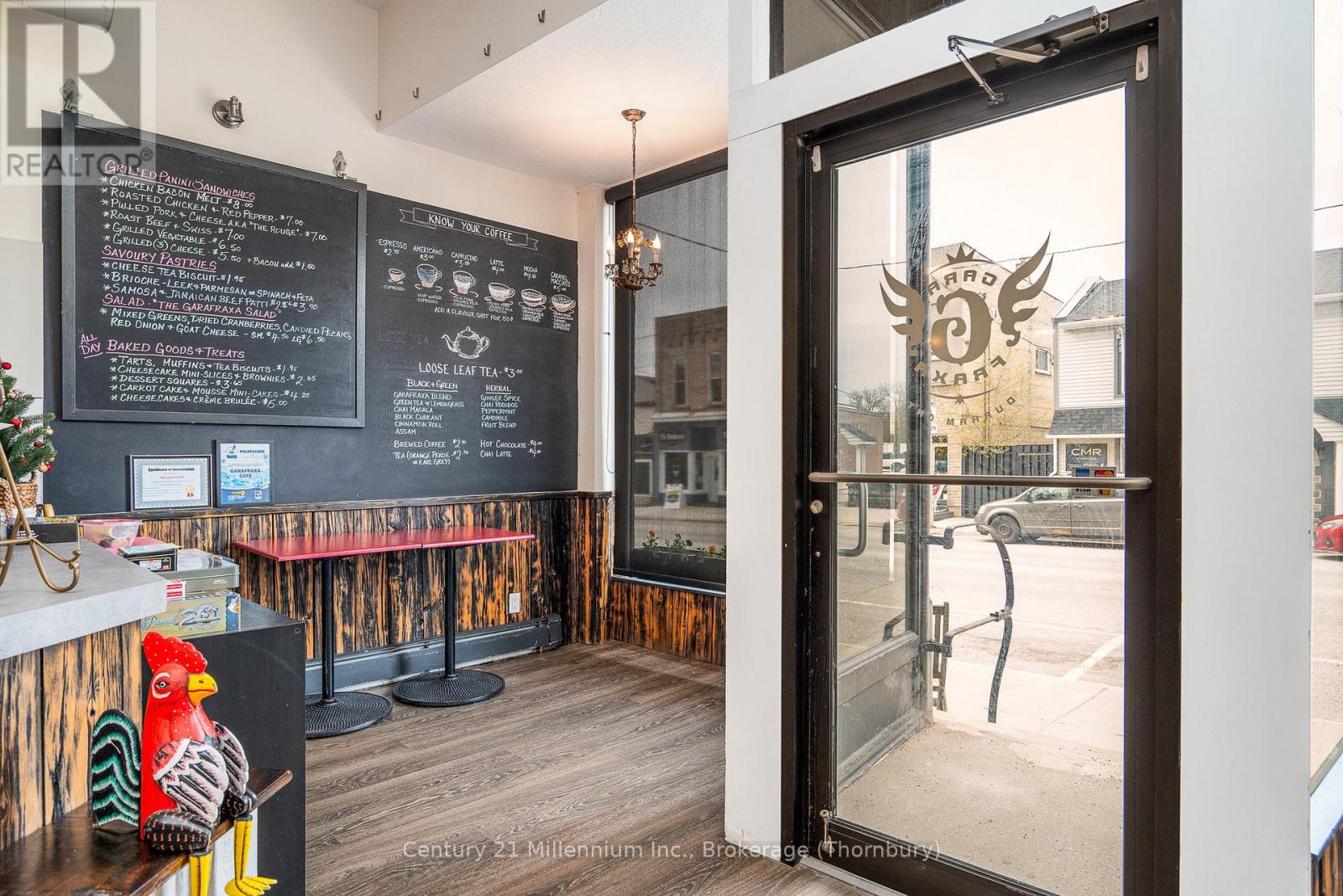 Welcome to 131-133 Garafraxa Street South, an exciting investment opportunity in downtown Durham, in the heart of Grey County. Most recently operated as a cafe, this impressive property, with its high ceilings, updated mechanicals and ideal central location with plenty of vehicle and pedestrian traffic, offers a host of other opportunities for either an investor/landlord, or an owner/operator. Zoned C1 - General Commercial, the property is eligible for a variety of permitted uses (see documents tab for details), from business/professional office space or a medical clinic, to a bakery, or a specialty food or other retail store. For several years prior to the pandemic, the property had been home to The Garafraxa Cafe, a coffee bar/pub providing a comfortable and popular gathering place for local residents and tourists alike. The Cafe served a variety of 'lite bites', and an assortment of specialty coffees and locally crafted beers, ciders and wines. It also included a full stage, complete with a professional lighting and sound system, which regularly played host to theatrical and musical performances. For an interested buyer, this could be a turnkey opportunity to re-open the Cafe, as all of the operating assets (see list in documents file) remain on the premises and, while excluded from the listing price, are negotiable. Complementing the street level, the second floor features a spacious 3 bedroom, 1-1/2 bath apartment, flooded with natural light from 3 sides, as the property to the north is only 1 storey. The apartment has a separate entrance from the street, and a private, fenced back yard. Currently owner-occupied, it will be vacant on closing, so you can live-in, or enjoy a secondary source of rental income at market rates. This property must be seen to be fully appreciated.. (id:51300)