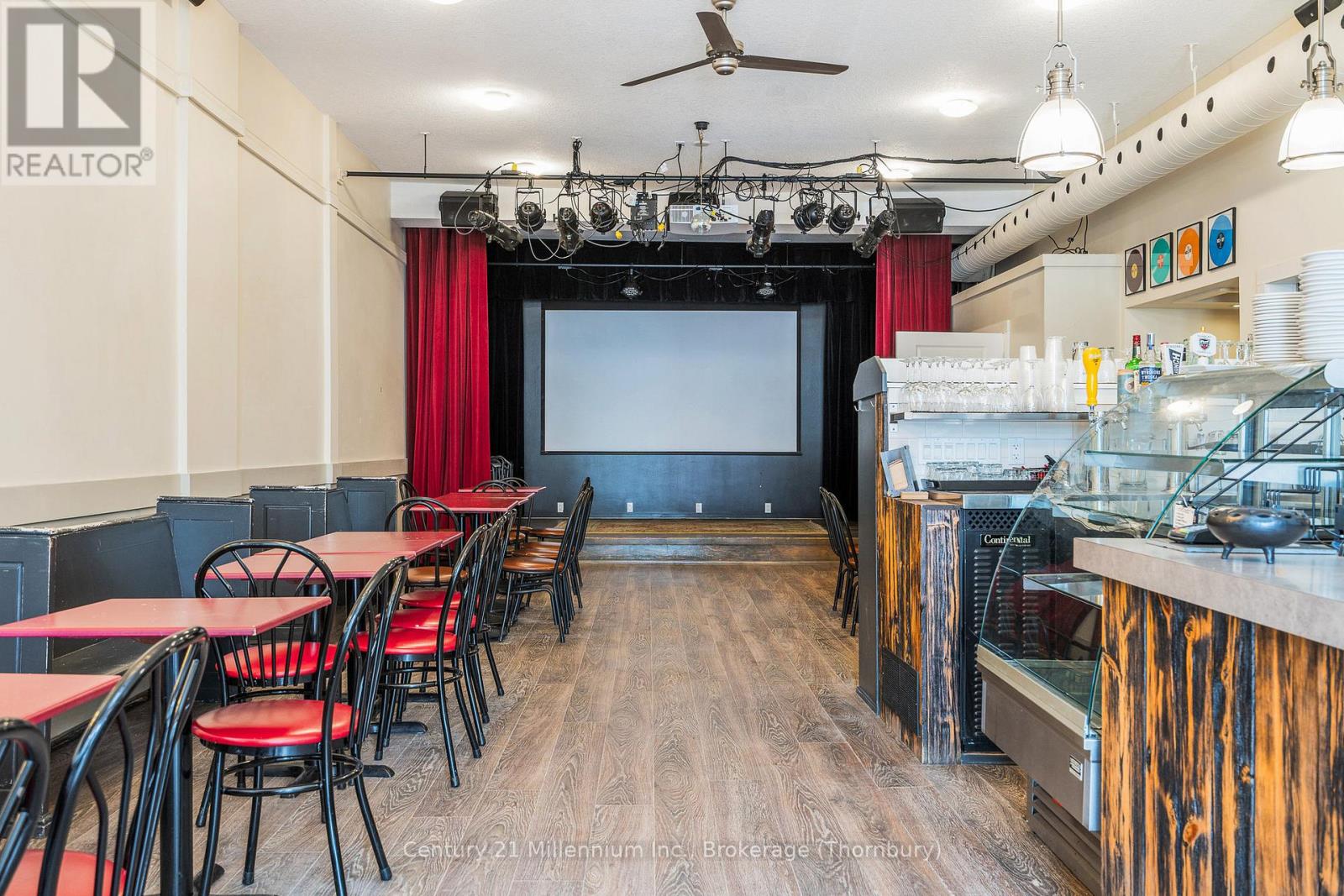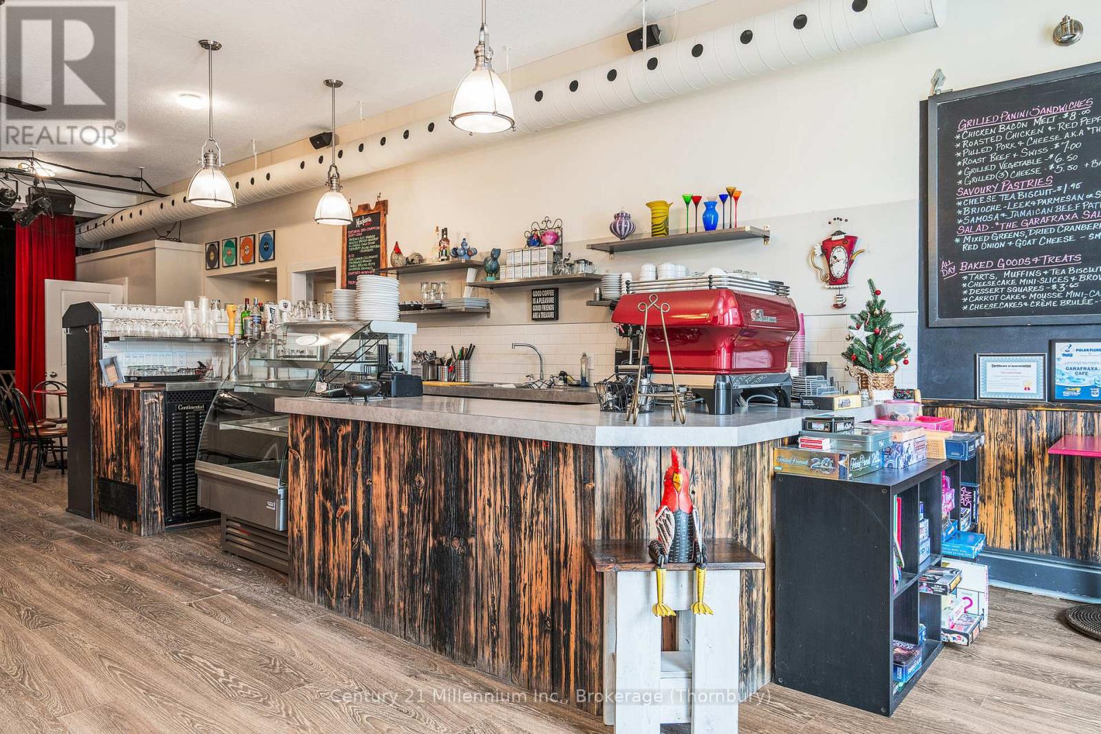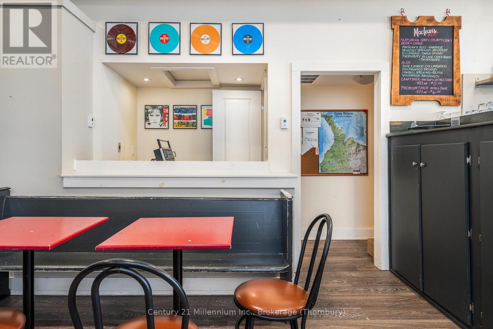 Welcome to 131-133 Garafraxa Street South, an exciting investment opportunity in downtown Durham, in the heart of Grey County. Most recently operated as a cafe, this impressive property, with its high ceilings, updated mechanicals and ideal central location with plenty of vehicle and pedestrian traffic, offers a host of other opportunities for either an investor/landlord, or an owner/operator. Zoned C1 - General Commercial, the property is eligible for a variety of permitted uses (see documents tab for details), from business/professional office space or a medical clinic, to a bakery, or a specialty food or other retail store. For several years prior to the pandemic, the property had been home to The Garafraxa Cafe, a coffee bar/pub providing a comfortable and popular gathering place for local residents and tourists alike. The Cafe served a variety of 'lite bites', and an assortment of specialty coffees and locally crafted beers, ciders and wines. It also included a full stage, complete with a professional lighting and sound system, which regularly played host to theatrical and musical performances. For an interested buyer, this could be a turnkey opportunity to re-open the Cafe, as all of the operating assets (see list in documents file) remain on the premises and, while excluded from the listing price, are negotiable. Complementing the street level, the second floor features a spacious 3 bedroom, 1-1/2 bath apartment, flooded with natural light from 3 sides, as the property to the north is only 1 storey. The apartment has a separate entrance from the street, and a private, fenced back yard. Currently owner-occupied, it will be vacant on closing, so you can live-in, or enjoy a secondary source of rental income at market rates. This property must be seen to be fully appreciated.. (id:51300)