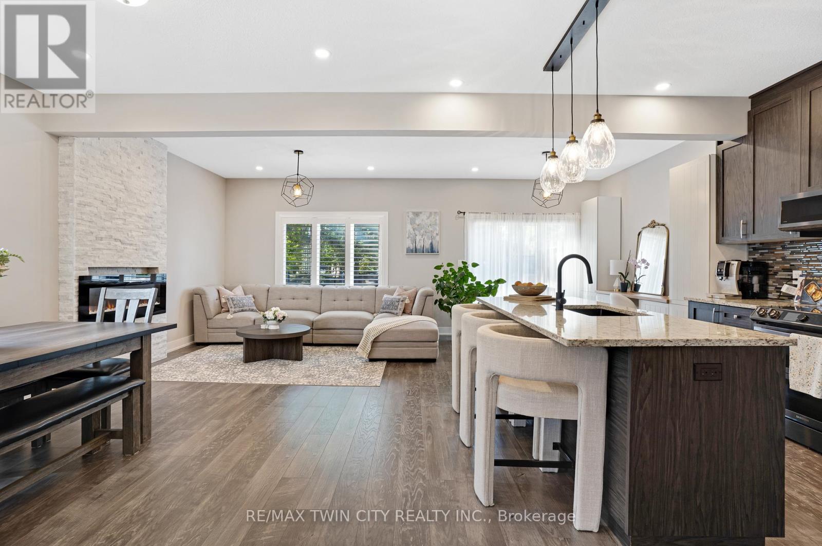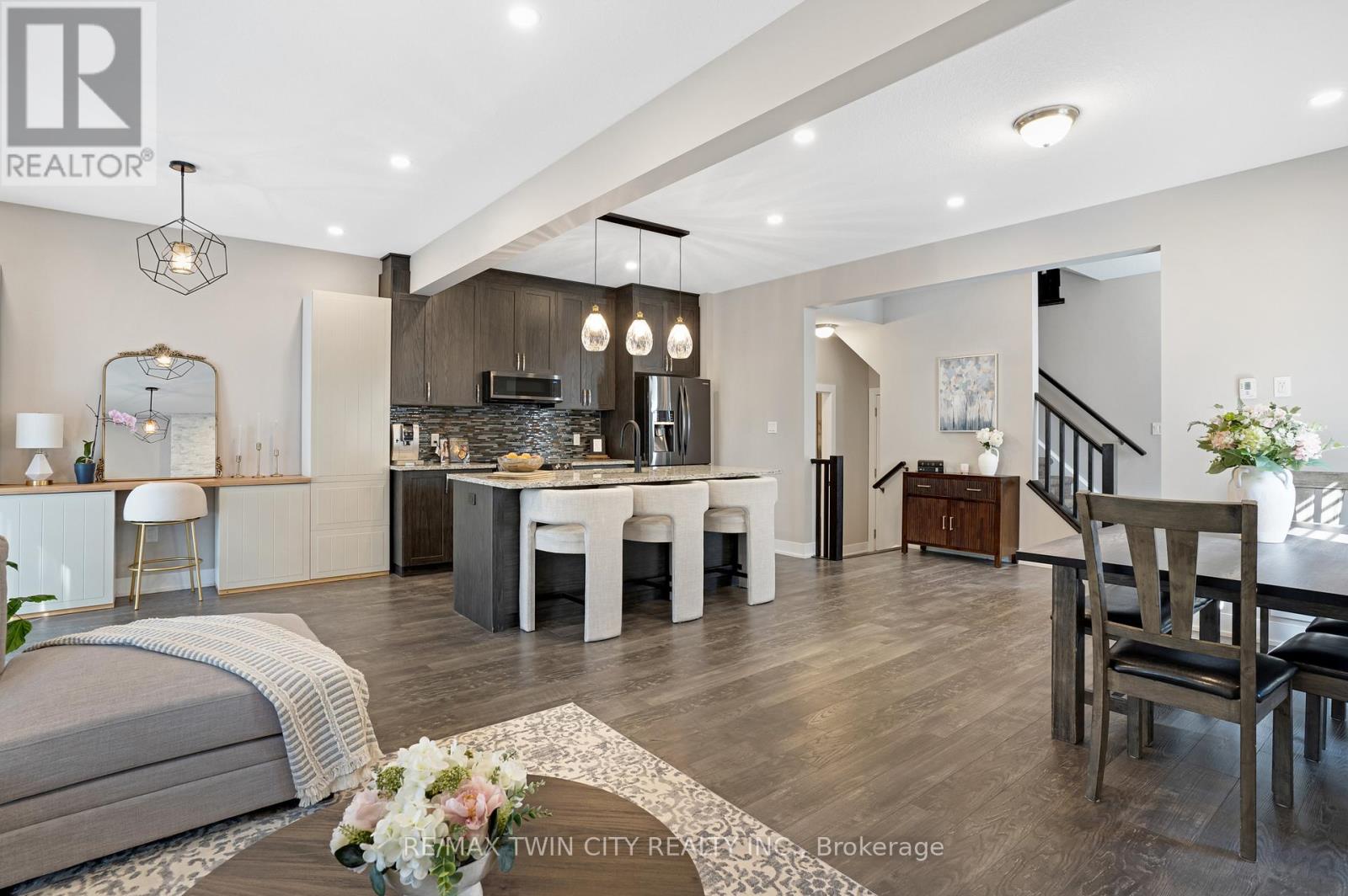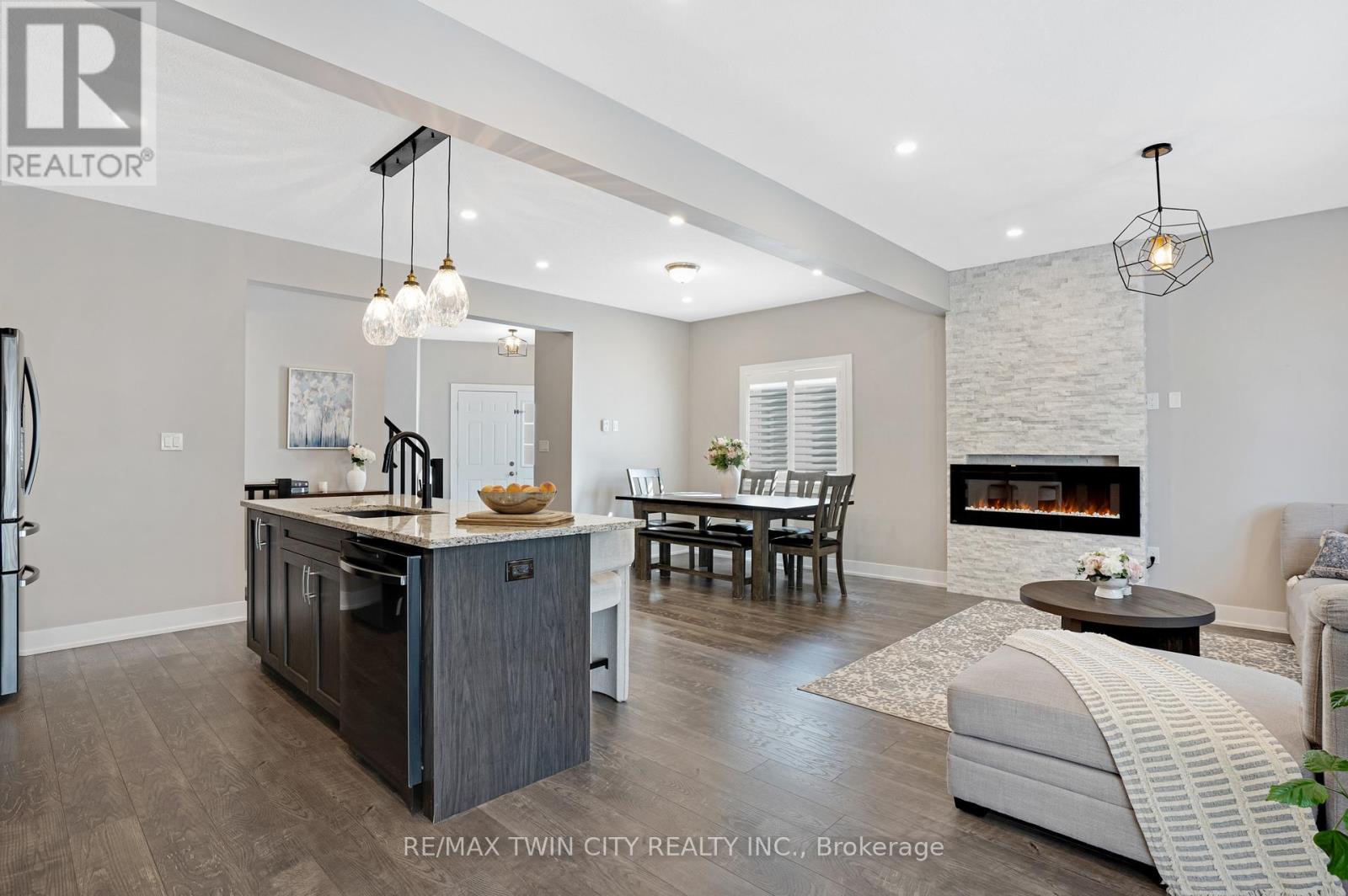 Stunning turnkey semi-detached home, perfect for first-time buyers, couples, or growing families. Offering 3 bedrooms, 2 bathrooms, and a 2-car garage, this home is filled with natural light and designed for modern living. The main floor features 9 ft ceilings, updated light fixtures, and an open layout. The eat-in kitchen includes a large island, custom built-in cabinetry for added storage, and a sliding door leading to the backyard deck. A dining room, cozy living room with an electric fireplace, and a powder room complete the space. Upstairs, a spacious family room with high ceilings provides the perfect gathering spot. Three bedrooms and a 4-piece bath are also found on this level, including a primary bedroom with engineered hardwood floors and a private 3-piece ensuite. The unfinished basement offers big windows, a bathroom rough-in, and plenty of open space to finish to your needs. The backyard is fully fenced and includes a deck-an inviting space to relax, entertain, or let kids and pets play. Located in the family friendly community of Tavistock, you'll enjoy the charm of small-town living with quick access to Stratford and Kitchener-Waterloo. Local shops, schools, and parks are close by, and the quiet streets and surrounding farmland make it a wonderful place to call home. (id:51300)
