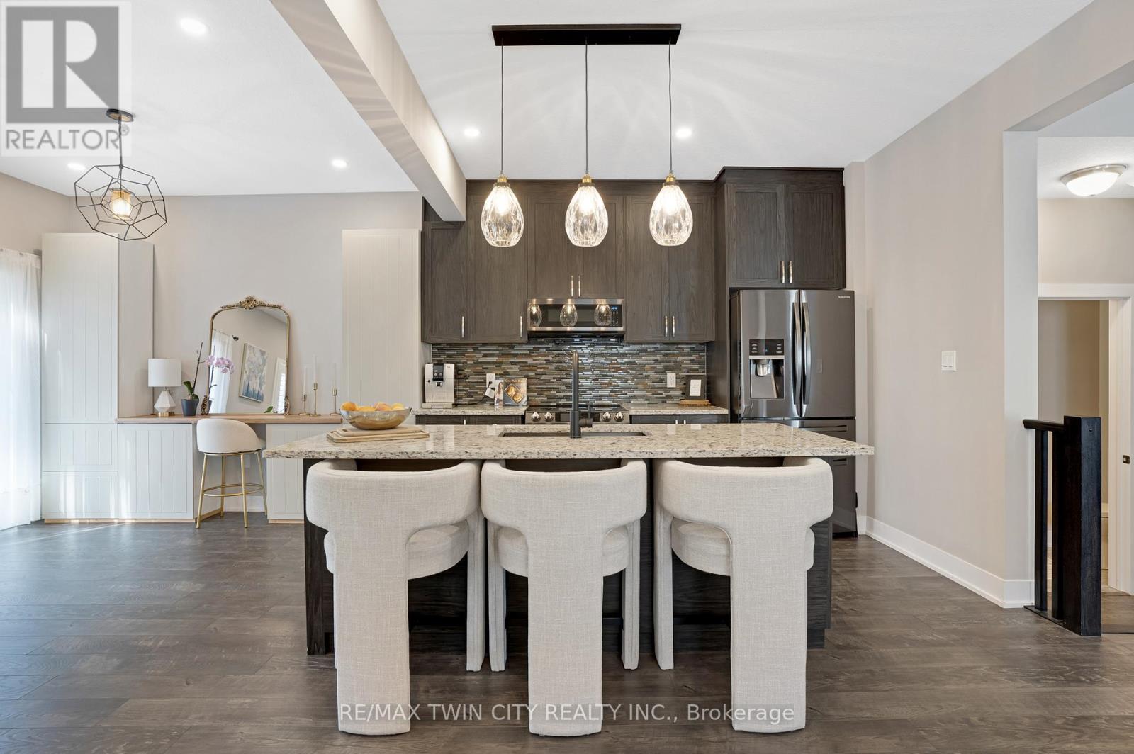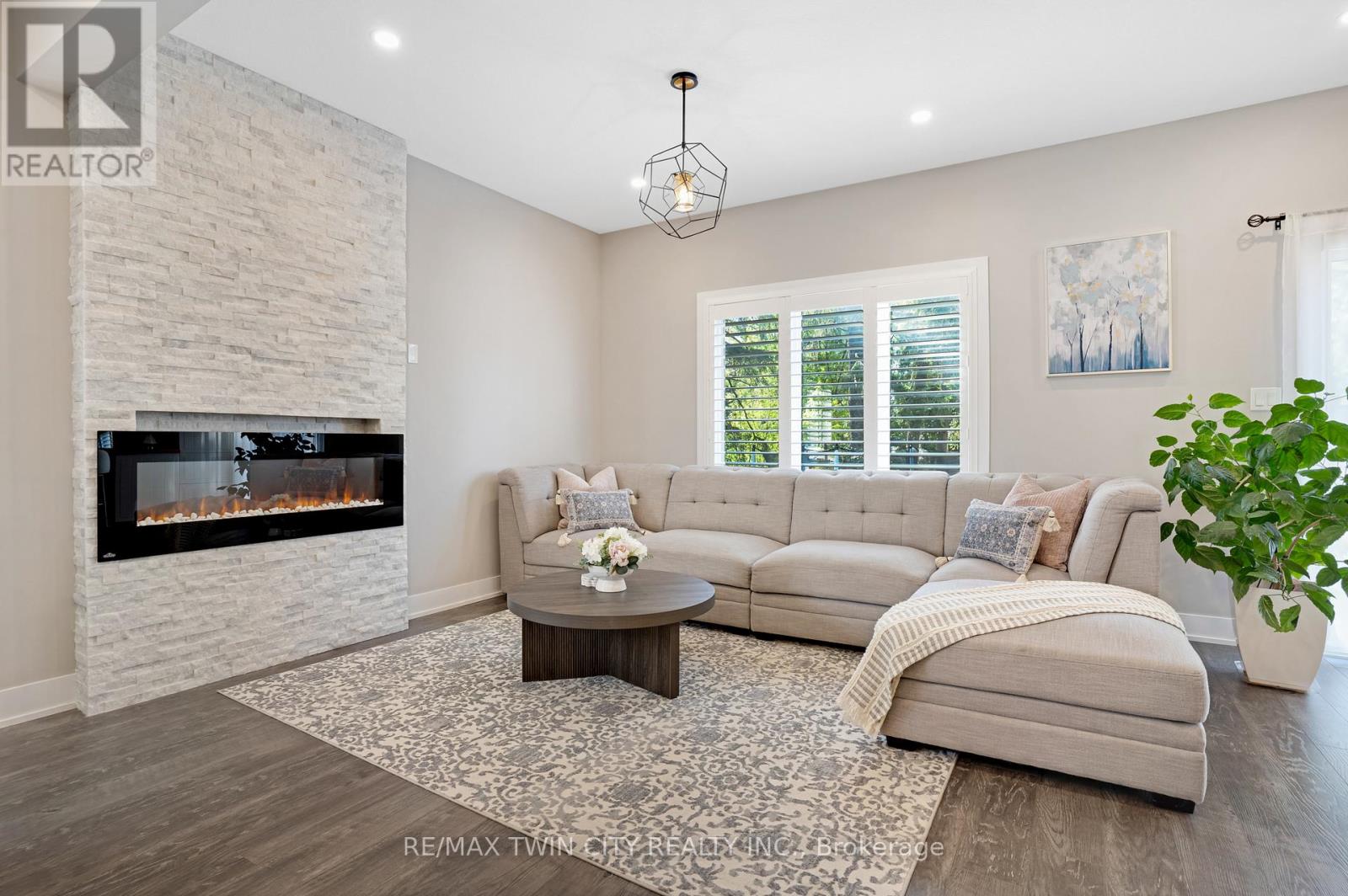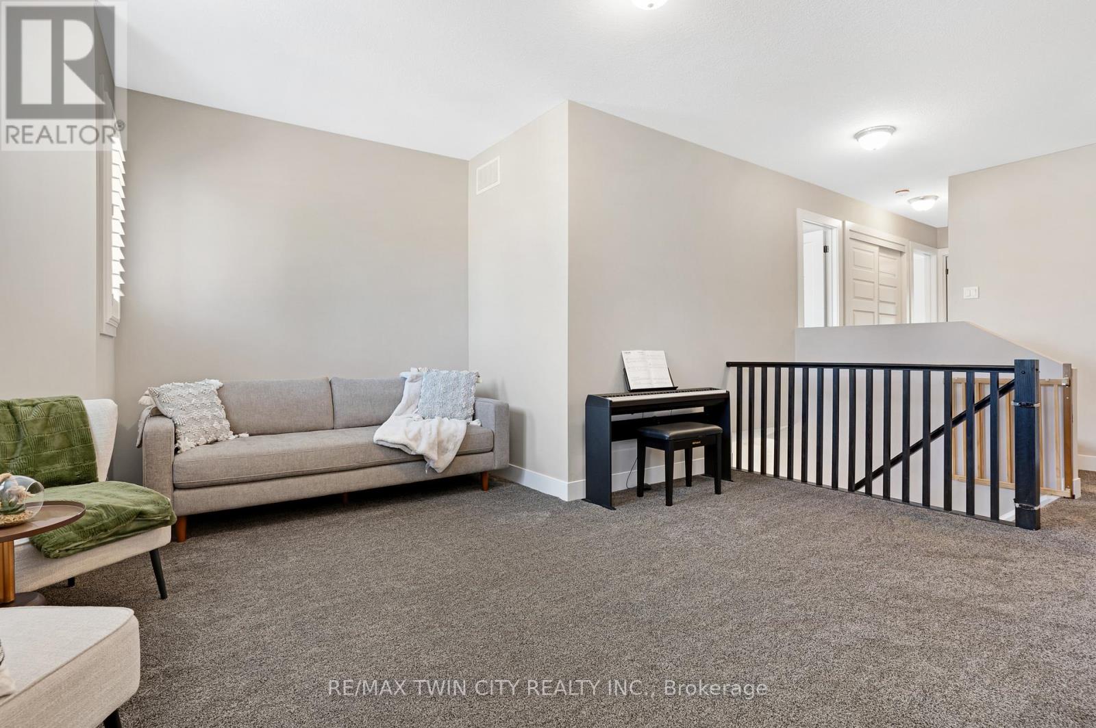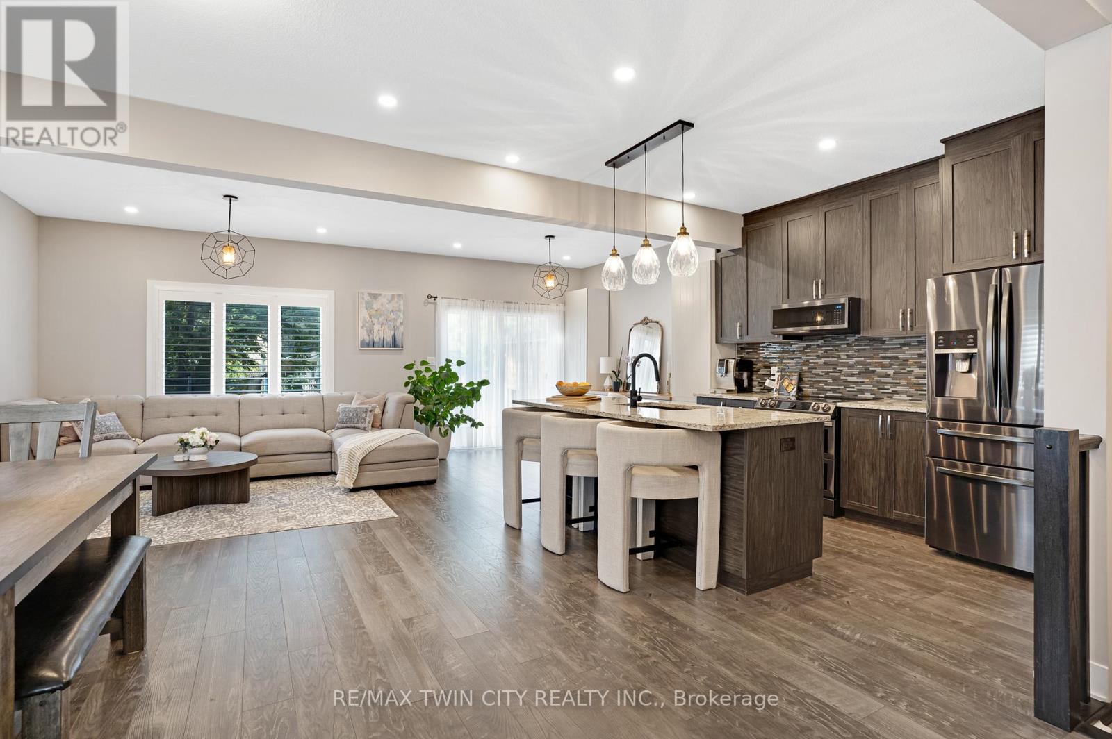 Stunning turnkey semi-detached home, perfect for first-time buyers, couples, or growing families. Offering 3 bedrooms, 2 bathrooms, and a 2-car garage, this home is filled with natural light and designed for modern living. The main floor features 9 ft ceilings, updated light fixtures, and an open layout. The eat-in kitchen includes a large island, custom built-in cabinetry for added storage, and a sliding door leading to the backyard deck. A dining room, cozy living room with an electric fireplace, and a powder room complete the space. Upstairs, a spacious family room with high ceilings provides the perfect gathering spot. Three bedrooms and a 4-piece bath are also found on this level, including a primary bedroom with engineered hardwood floors and a private 3-piece ensuite. The unfinished basement offers big windows, a bathroom rough-in, and plenty of open space to finish to your needs. The backyard is fully fenced and includes a deck-an inviting space to relax, entertain, or let kids and pets play. Located in the family friendly community of Tavistock, you'll enjoy the charm of small-town living with quick access to Stratford and Kitchener-Waterloo. Local shops, schools, and parks are close by, and the quiet streets and surrounding farmland make it a wonderful place to call home. (id:51300)