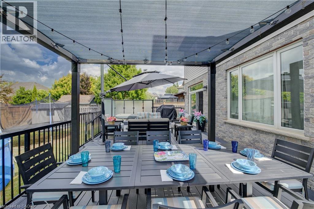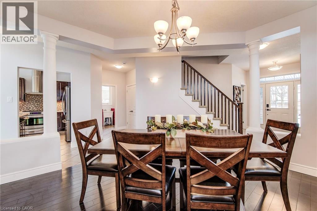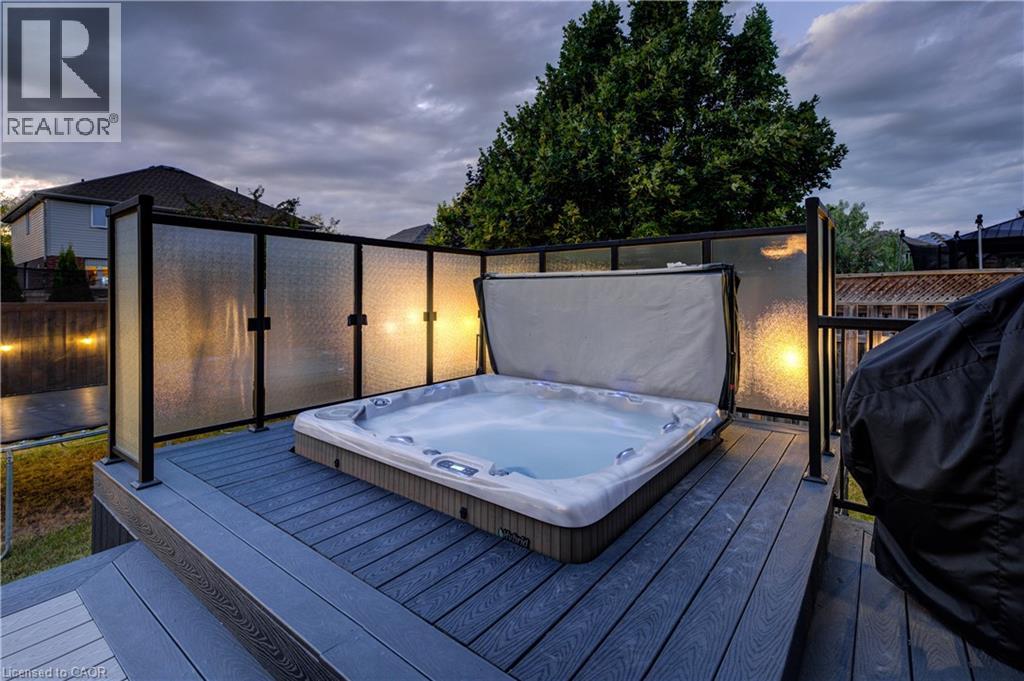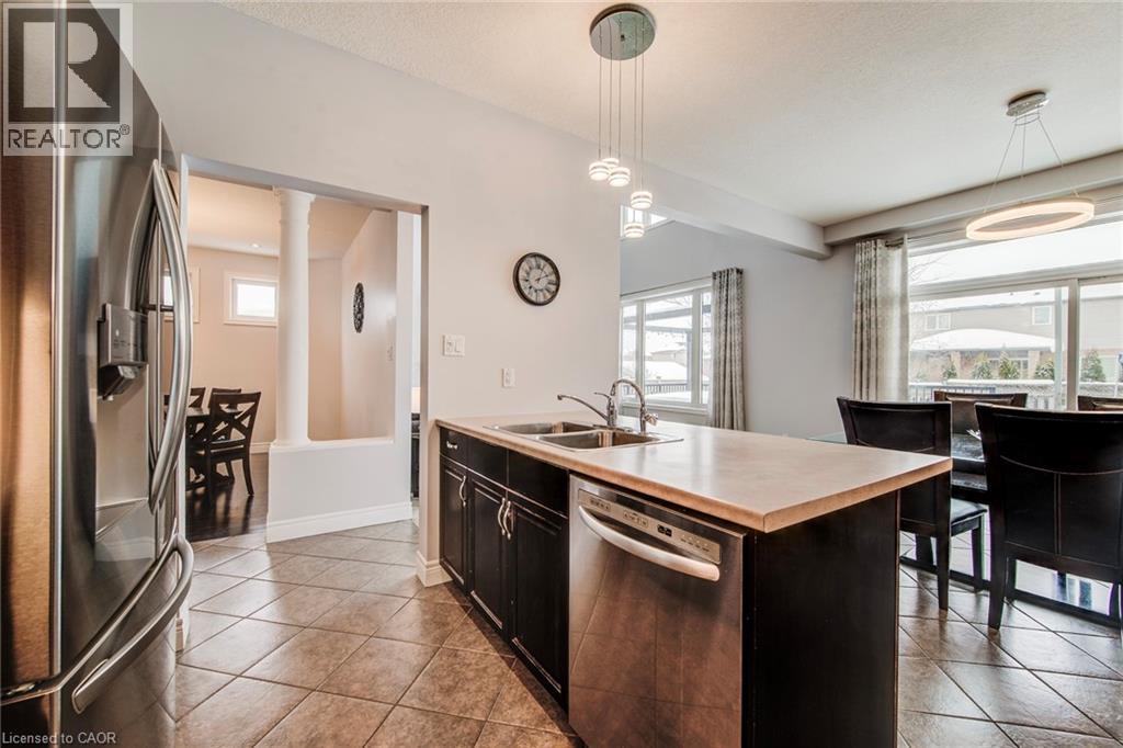 Welcome to 14 La Salle Street, a true show-stopper nestled on a quiet street in the charming community of Breslau. This beautifully maintained two-storey home offers 3+1 bedrooms and 3.5 bathrooms, blending style, comfort, and functionality throughout. The bright main floor is filled with natural light and features a 2-piece bathroom, a formal dining area, and an inviting open-concept living room and kitchen—perfect for both everyday living and entertaining. The living room impresses with vaulted ceilings and a cozy gas fireplace as its focal point. The stunning kitchen includes a dedicated dining area, breakfast bar, tiled backsplash, and beautiful stainless steel appliances. A main-floor laundry room with direct access to the garage adds everyday convenience. Upstairs, you’ll find three spacious bedrooms, including an oversized primary suite complete with a private den—ideal for a home office—his and hers walk-in closets, and a stylish 4-piece ensuite. The upper level also features a shared 4-piece bathroom and overlooks the living room below, enhancing the home’s open and airy feel. The fully finished basement offers an exceptional extension of living space with a large open-concept layout, bar, a 3-piece bathroom, ample storage, and a fourth bedroom currently used as a home gym. Step outside to your private backyard oasis, featuring a large deck perfect for entertaining, a built-in hot tub with privacy fencing, a gazebo, and a spacious fully fenced yard. Additional highlights include a double-car attached garage and a double-wide driveway accommodating parking for up to four vehicles. Ideally located just minutes from schools, shopping, restaurants, Highway 8, and the Region of Waterloo International Airport, with convenient access to Guelph, Kitchener-Waterloo, Cambridge, New Hamburg, and Fergus, this exceptional home offers the perfect balance of peaceful living and connectivity. (id:51300)
