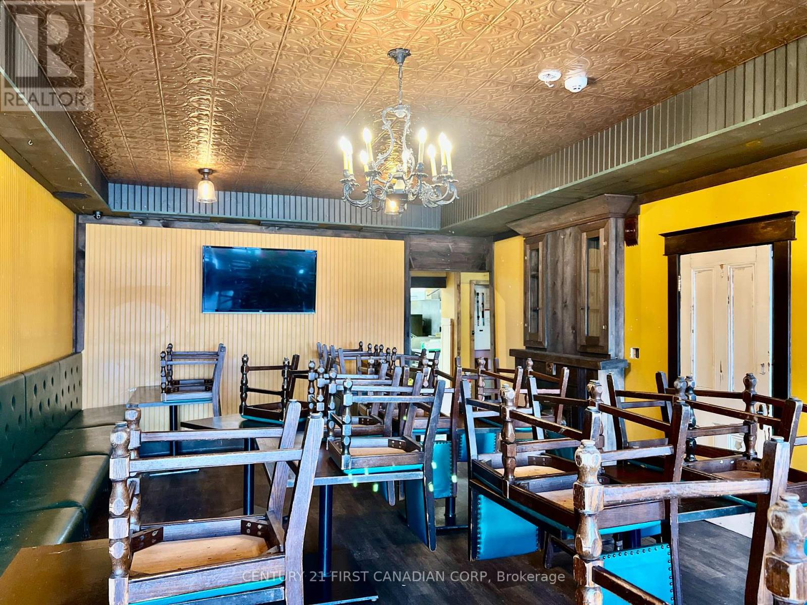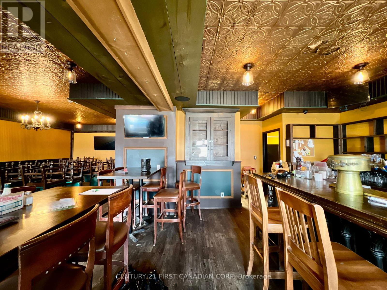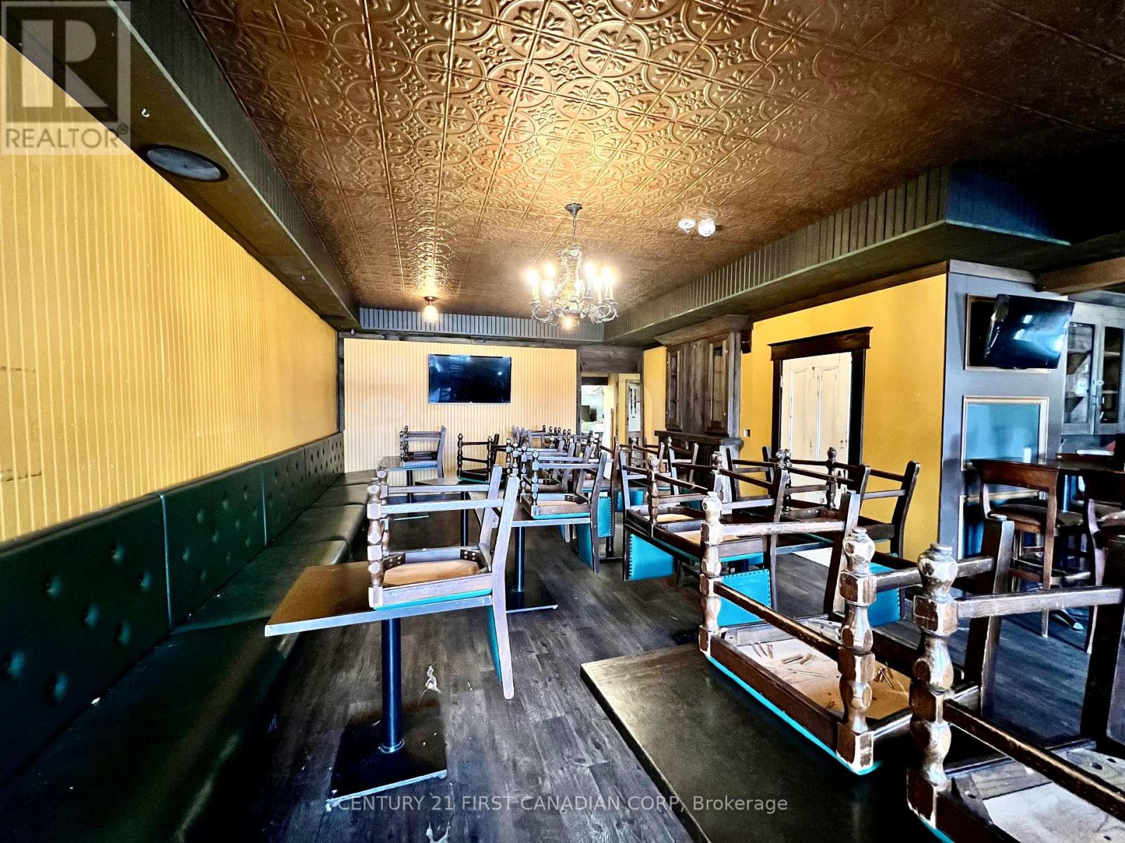 A RARE INVESTMENT - Exceptional Mixed-Use Opportunity in the Heart of Growing Ailsa Craig! This versatile commercial property offers the perfect blend of business potential and residential flexibility. The main level is a ready-to-revive restaurant or bar space, complete with tables, chairs, a fully equipped bar area, kitchen appliances, and separate his & hers restrooms, providing you with a fantastic head start in bringing your vision to life. Upstairs, you'll find a vacant 2-bedroom apartment, giving you the option to live on-site or generate additional rental income. The property's prime location in the thriving community of Ailsa Craig ensures excellent visibility, steady local traffic, and long-term growth potential. This property is being sold alongside 141 Main St., offering savvy investors or entrepreneurs an incredible opportunity to expand their footprint and increase earning potential. Whether you're looking to launch your dream restaurant, open a vibrant bar, or secure a valuable mixed-use investment, this property delivers the space, location, and potential to make it happen. Contact to arrange a private viewing and explore the possibilities! (id:51300)