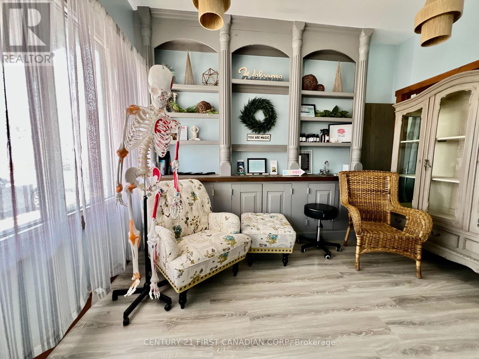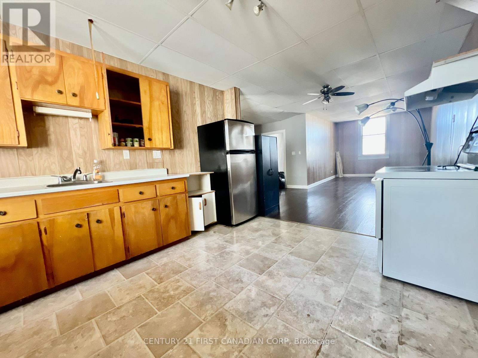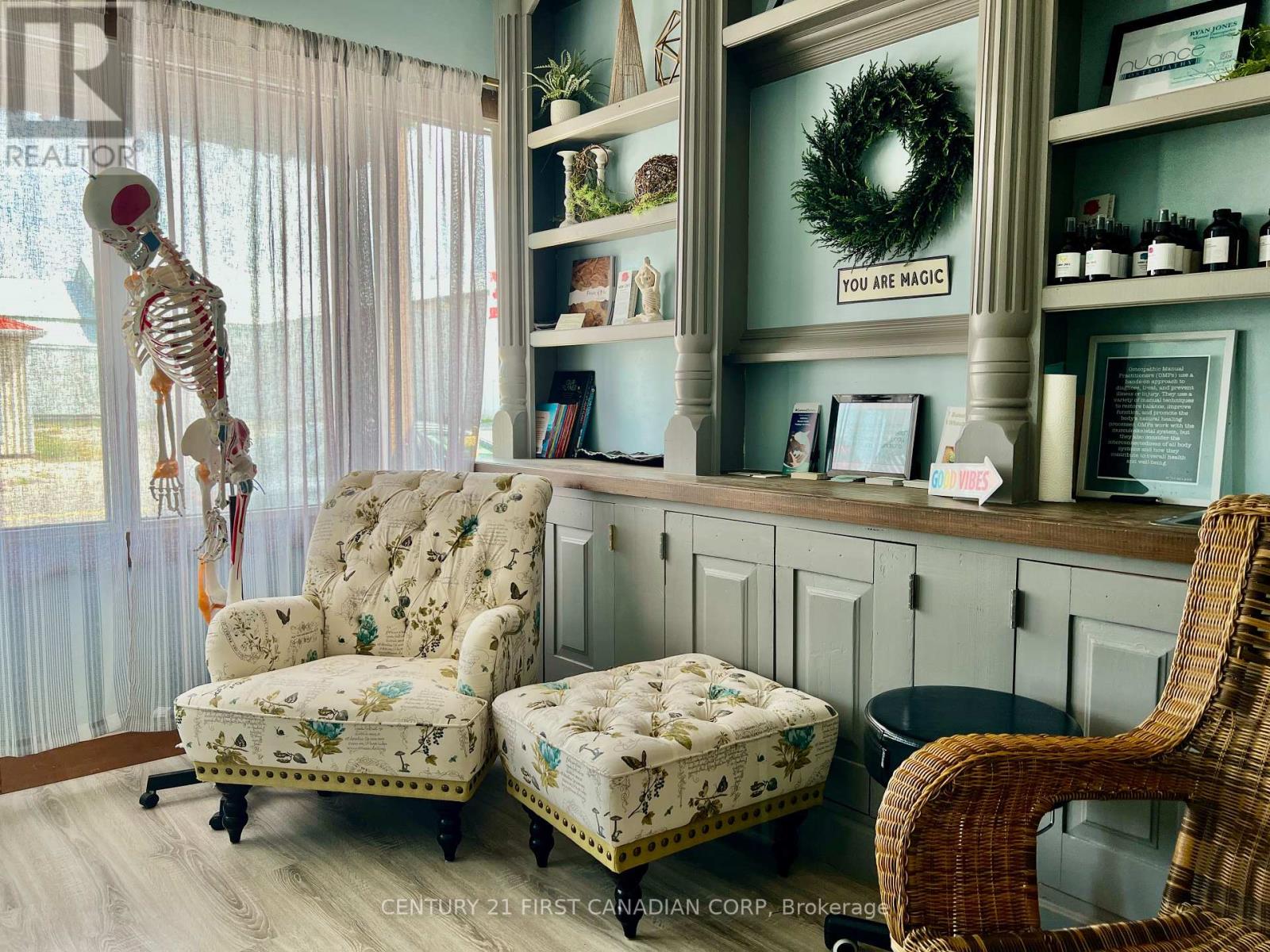 A RARE INVESTMENT - Exceptional Mixed-Use Opportunity in the Heart of Growing Ailsa Craig! This versatile commercial property offers the perfect blend of business potential and residential flexibility. The main level is a ready-to-revive restaurant or bar space, complete with tables, chairs, a fully equipped bar area, kitchen appliances, and separate his & hers restrooms, providing you with a fantastic head start in bringing your vision to life. Upstairs, you'll find a vacant 2-bedroom apartment, giving you the option to live on-site or generate additional rental income. The property's prime location in the thriving community of Ailsa Craig ensures excellent visibility, steady local traffic, and long-term growth potential. This property is being sold alongside 141 Main St., offering savvy investors or entrepreneurs an incredible opportunity to expand their footprint and increase earning potential. Whether you're looking to launch your dream restaurant, open a vibrant bar, or secure a valuable mixed-use investment, this property delivers the space, location, and potential to make it happen. Contact to arrange a private viewing and explore the possibilities! (id:51300)