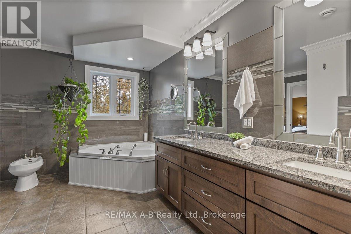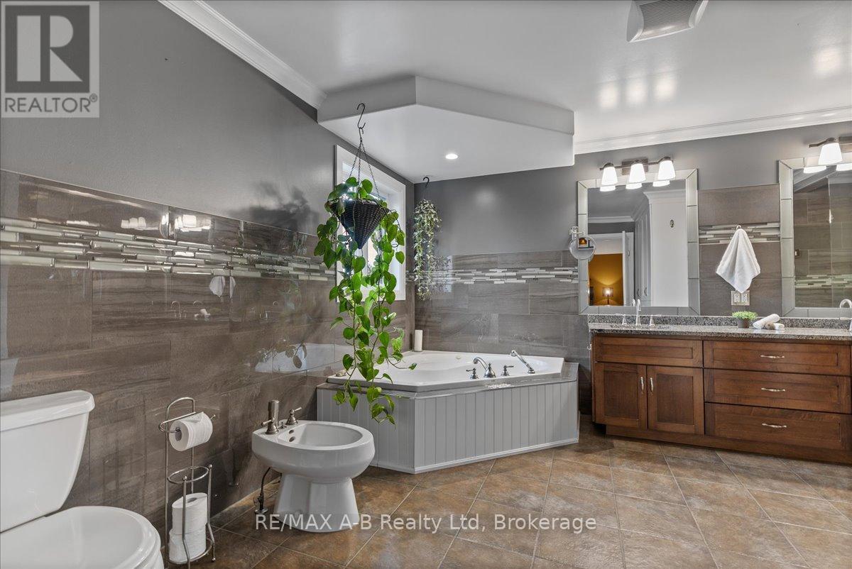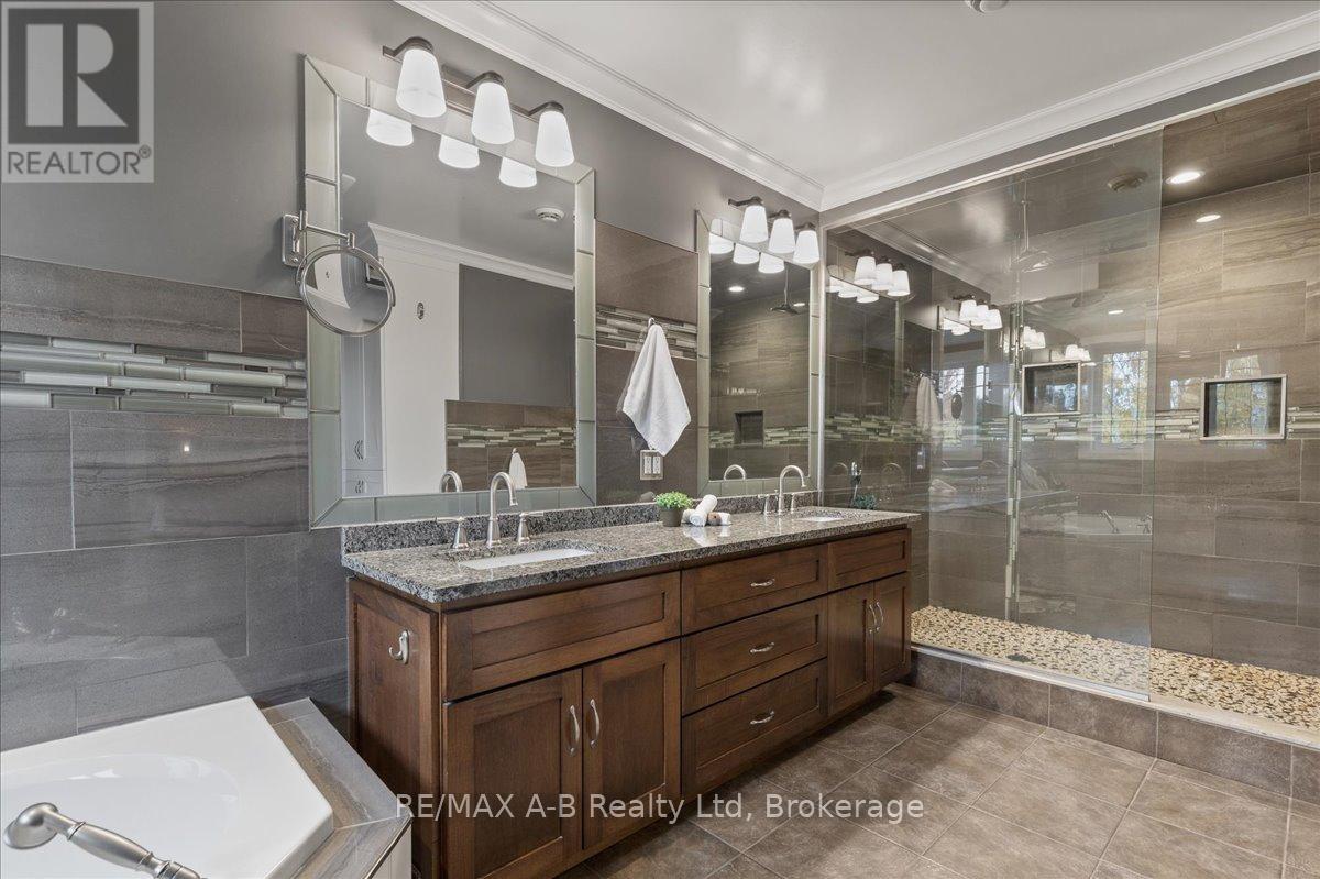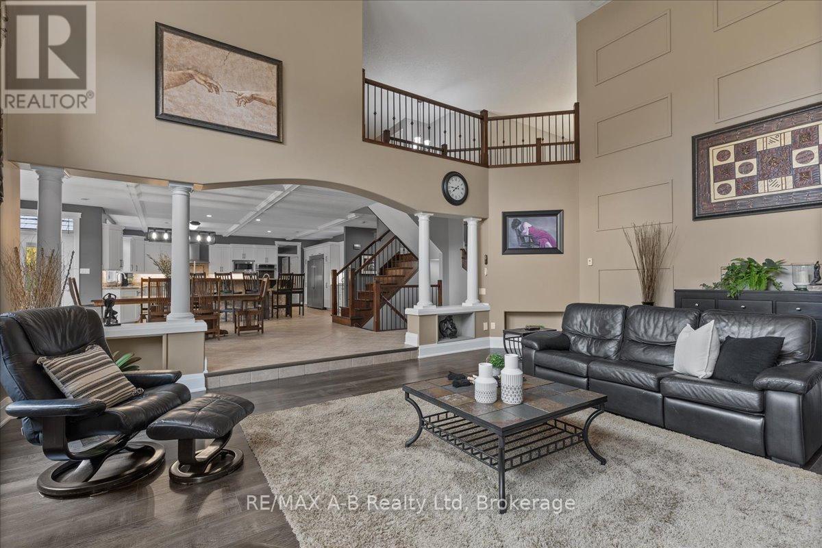 Experience luxury and comfort in this stunning custom built executive 2-storey detached home, offering 5 spacious bedrooms and 4.5 bathrooms across 5,200 square feet of beautifully remodeled living space. Just 5 minutes from Stratford, this property welcomes you with impressive 20 ft ceilings in the great room and gleaming hardwood flooring throughout.The recently updated kitchen is perfect for culinary enthusiasts, while the elegant fireplace invites cozy gatherings with family and friends. Retreat to the luxurious primary suite for ultimate relaxation after a long day.Enjoy the benefits of energy efficiency, a steel roof, and in-floor heating on both the basement and main levels for year-round comfort. The 3-car attached garage and an expansive 32 x 57 shop provide ample RV storage and workspace. All of this is set on a generous 1.88-acre lot, offering privacy and space to enjoy.This meticulously maintained home is the perfect blend of sophistication and practicality-schedule your private showing today! (id:51300)