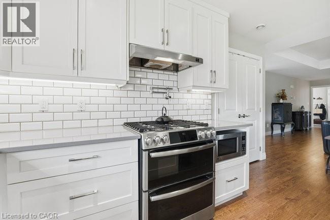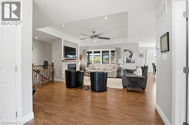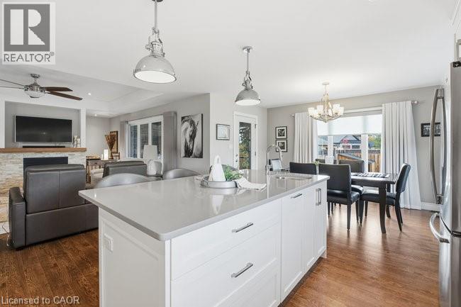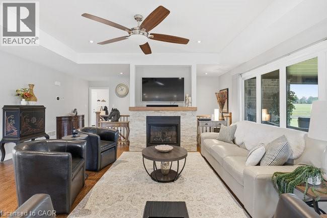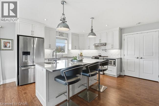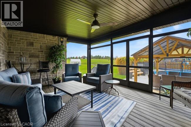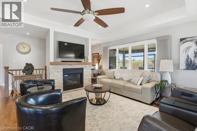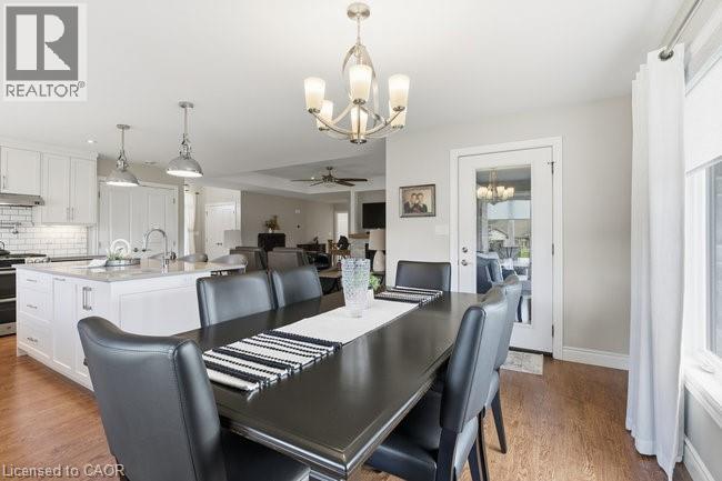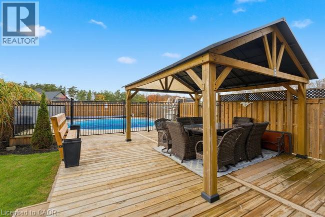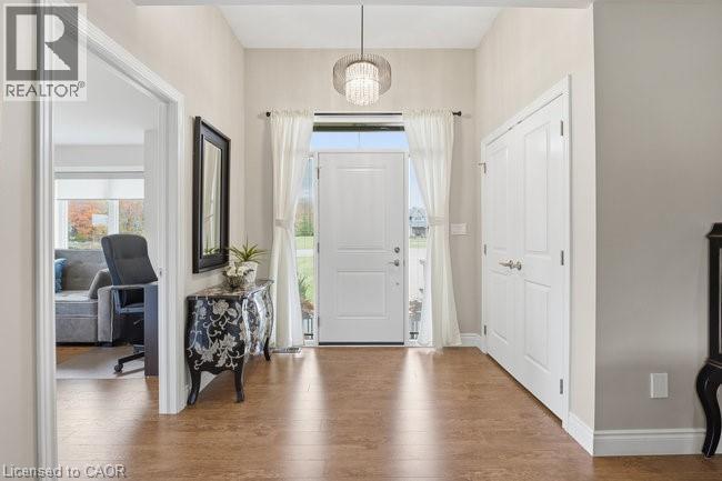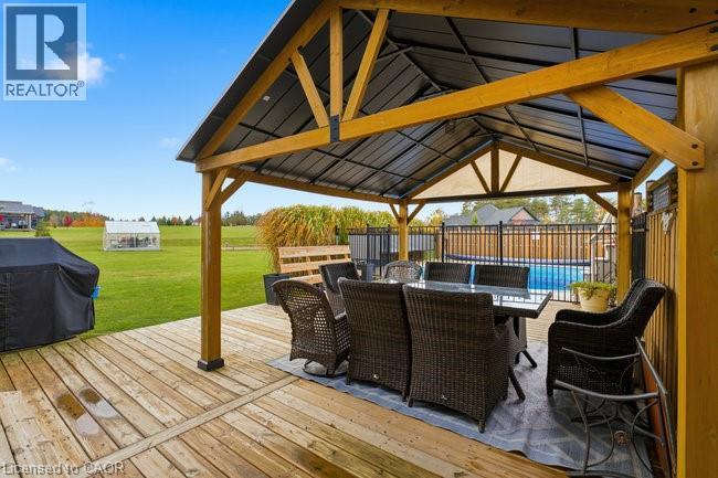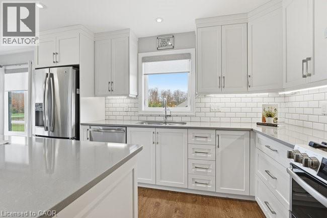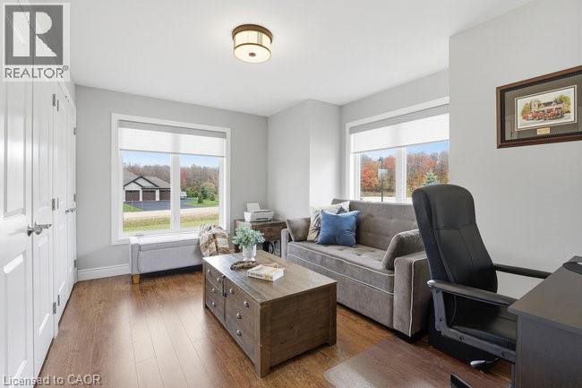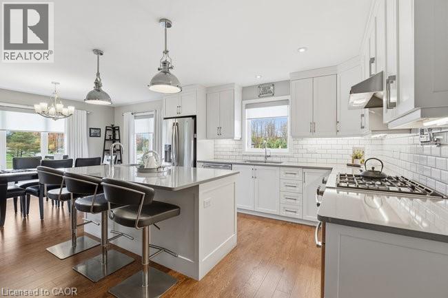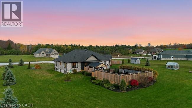 Welcome to this exceptional bungalow, perfectly situated on a spacious lot offering privacy, style, and room to entertain. The property features an impressive 4-car garage and a driveway that accommodates 12+ vehicles -perfect for gatherings or hobby enthusiasts. Step inside to an open-concept main floor filled with natural light and modern finishes. The bright, upgraded kitchen is a chef's dream, featuring a double-door pantry, Italian pot filler, and under-island garbage bins -beautifully blending function and design. The mudroom offers custom cabinetry and convenient direct garage access. The primary bedroom is a true retreat, showcasing a coffered ceiling, custom reading lights, and a luxurious 5-piece ensuite with a walk-in shower and free-standing tub. The second bedroom is currently used as a home office, offering flexibility for your lifestyle. A finished basement provides plenty of additional living space, including two additional spacious bedrooms, a home gym complete with sauna, and a 4-piece bathroom-ideal for guests or family. Step outside to your own private oasis: a covered lanai, on-ground pool, and hot tub create the perfect setting for relaxation and entertaining - all fenced and landscaped to provide the ultimate in privacy. This property truly offers the best of country living with refined style and comfort -an exceptional opportunity in beautiful West Grey. (id:51300)