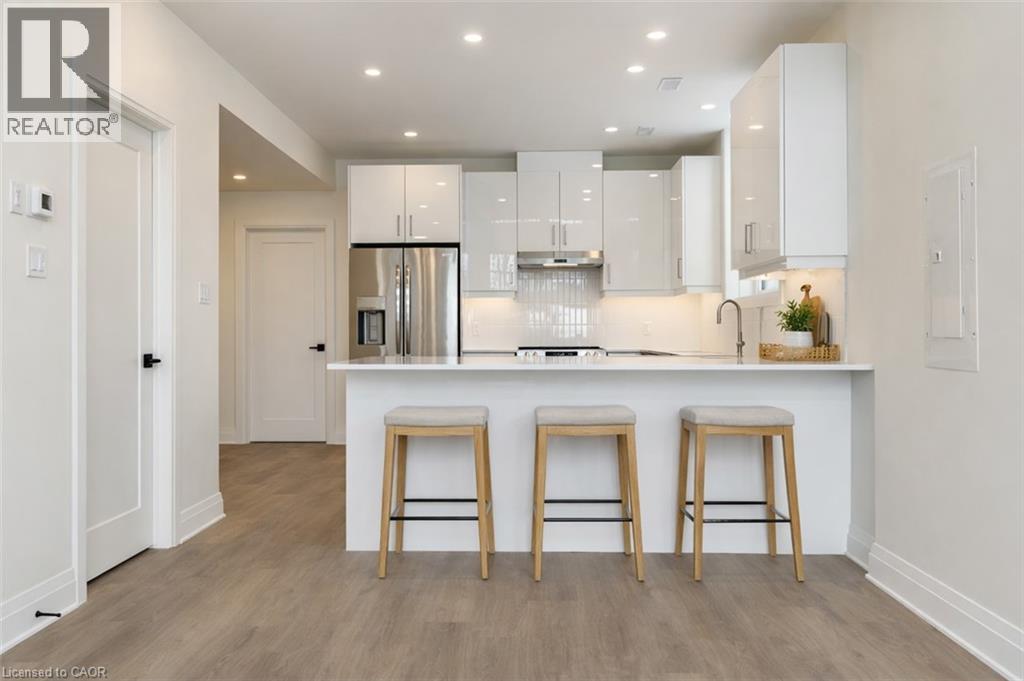 Welcome to this bright and modern lower-level apartment offering approximately 950 square feet of thoughtfully designed living space in a quiet, sought-after setting. The standout feature is the dramatic living room with soaring 20-foot ceilings and expansive windows that fill the home with natural light - a unique feature not found in homes like this. The contemporary kitchen includes under-cabinet lighting, clean finishes, and a functional layout perfect for everyday living. This unit features two bedrooms, a four-piece main bathroom, plus an additional two-piece powder room for added convenience. Step outside to your private covered patio, ideal for relaxing or enjoying fresh air year-round. Even better, the unit includes two tandem driveway parking spaces - something most rentals of this size simply don't offer. Tucked away at the end of a quiet street and overlooking forest and parkland, this is the perfect place to call home. Please note: Photos have been virtually staged for your viewing pleasure. (id:51300)