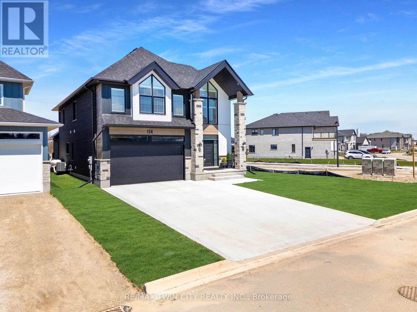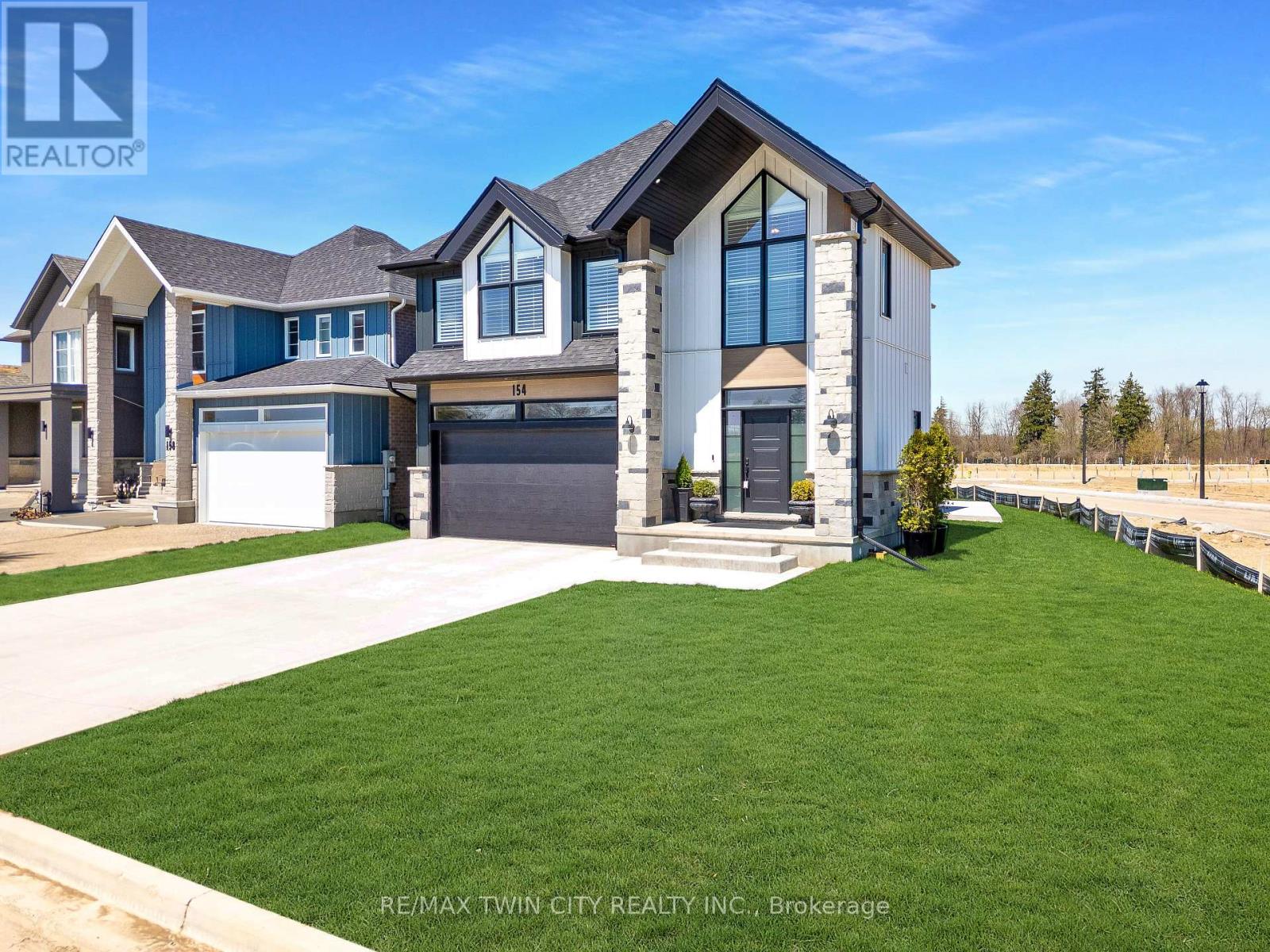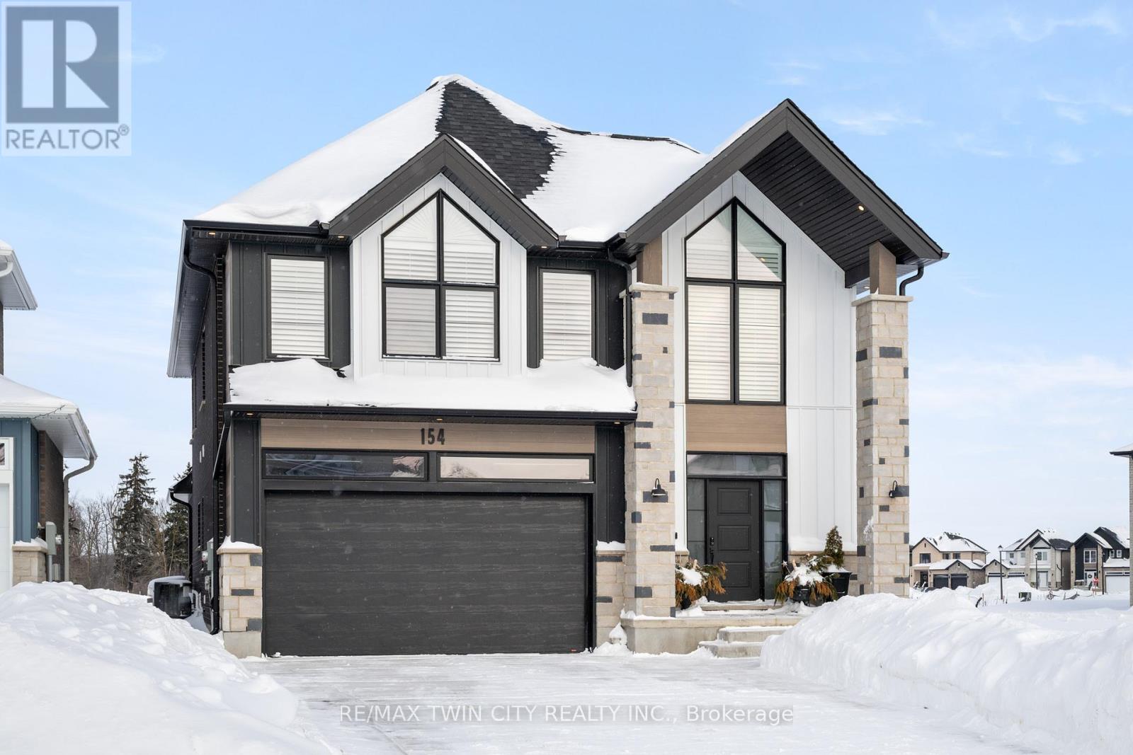 Welcome to 154 Dempsey Drive! At over 2,500 square feet, this 4-bed, 3.5-bath home is packed with standout features from its striking curb appeal to the custom interior details that set it apart. Check out our TOP 7 reasons why you'll want to make this house your home! #7: PRIME STRATFORD LOCATION - Tucked away in Knightsbridge - a quiet, family-friendly community in one of Stratford's most desirable pockets, you're just minutes from schools, parks, downtown shopping, and the world-renowned Stratford Festival Theatre. #6: STUNNING CURB APPEAL - With a rich blend of brick, stone, and board-and-batten siding, The Lionel stands out for all the right reasons. #5: SMART MAIN FLOOR LAYOUT - The carpet-free main level features engineered hardwood and tile flooring, with thoughtful details like a powder room, main floor laundry with built-in shelving, 9-foot ceilings and two walkouts to the backyard. #4: STANDOUT KITCHEN - The kitchen brings it all together form, function, and a serious dose of flair. You'll love the statement island, shaker cabinetry, ceramic subway tile backsplash, quartz countertops, and sleek stainless steel appliances. There's even a dedicated coffee station or bar with quartz countertops and open shelving. #3: THE BACKYARD - Both patio doors lead out to the sun-soaked backyard. Whether you're grilling on the concrete patio or sipping your morning coffee, you've got room to breathe, relax, and entertain. #2: BEDROOM SUITES - Upstairs features four large bedrooms, including a show-stopping primary suite with dual vaulted ceilings, oversized windows, a walk-in closet, and a 5-piece spa-inspired ensuite. One additional bedroom features its own 4-piece en-suite, while the other two share a beautiful 5-piece main bath. #1: ROOM TO GROW - The unspoiled basement offers over 1,200 square feet of potential, with a 3-piece rough-in already in place. Build out a rec room, gym, home theatre, or in-law suite the possibilities are wide open. (id:51300)