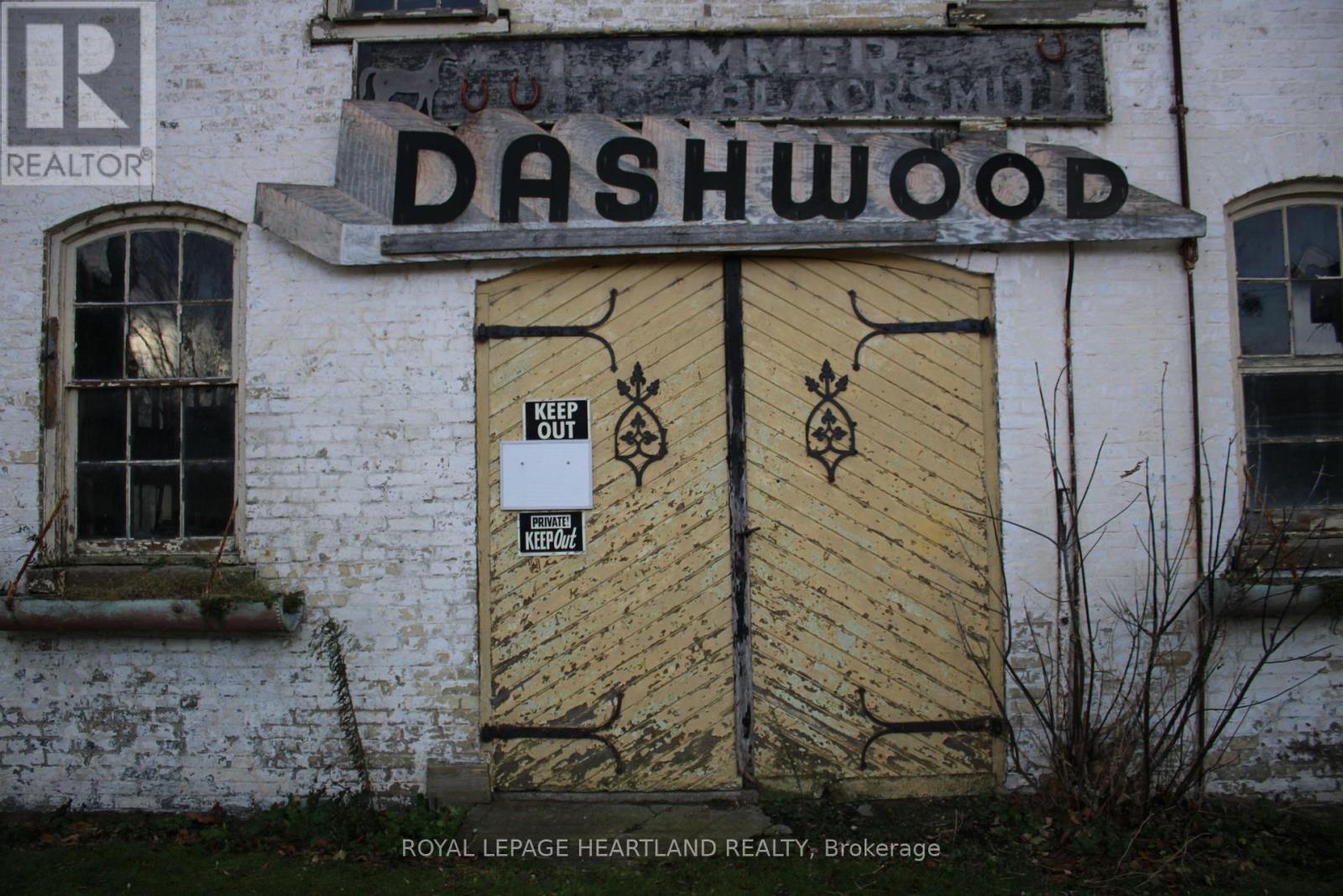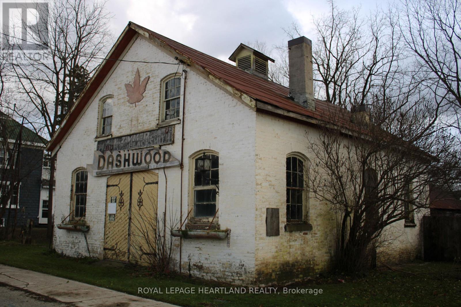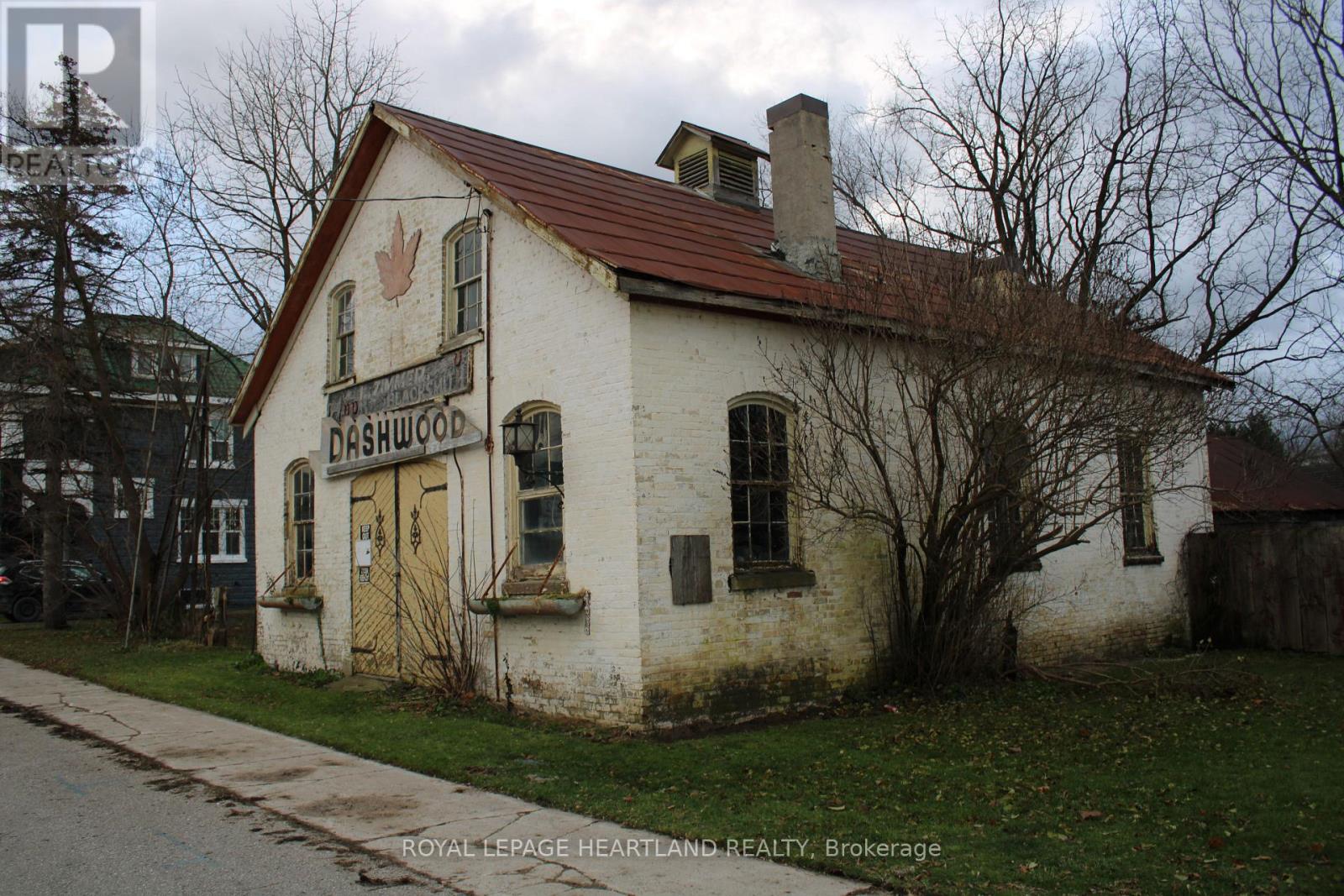 Historic Blacksmith Shop property in Dashwood, Ont. Situated on Main St., spanning 3 centuries (built in 1890). This landmark has been admired by myriads of Lake Huron tourists over the years. Main brick building is approximately 36' x 28' or 1000 sq. ft. more or less, with a full loft. Zoned C8 allows for several uses. Set on a busy tourist throughway. A great lot to establish your shop or business. Municipal water and natural gas are available. The Structures, both frame and brick, have been compromised over time and any potential buyer will need to determine their worth. (id:51300)